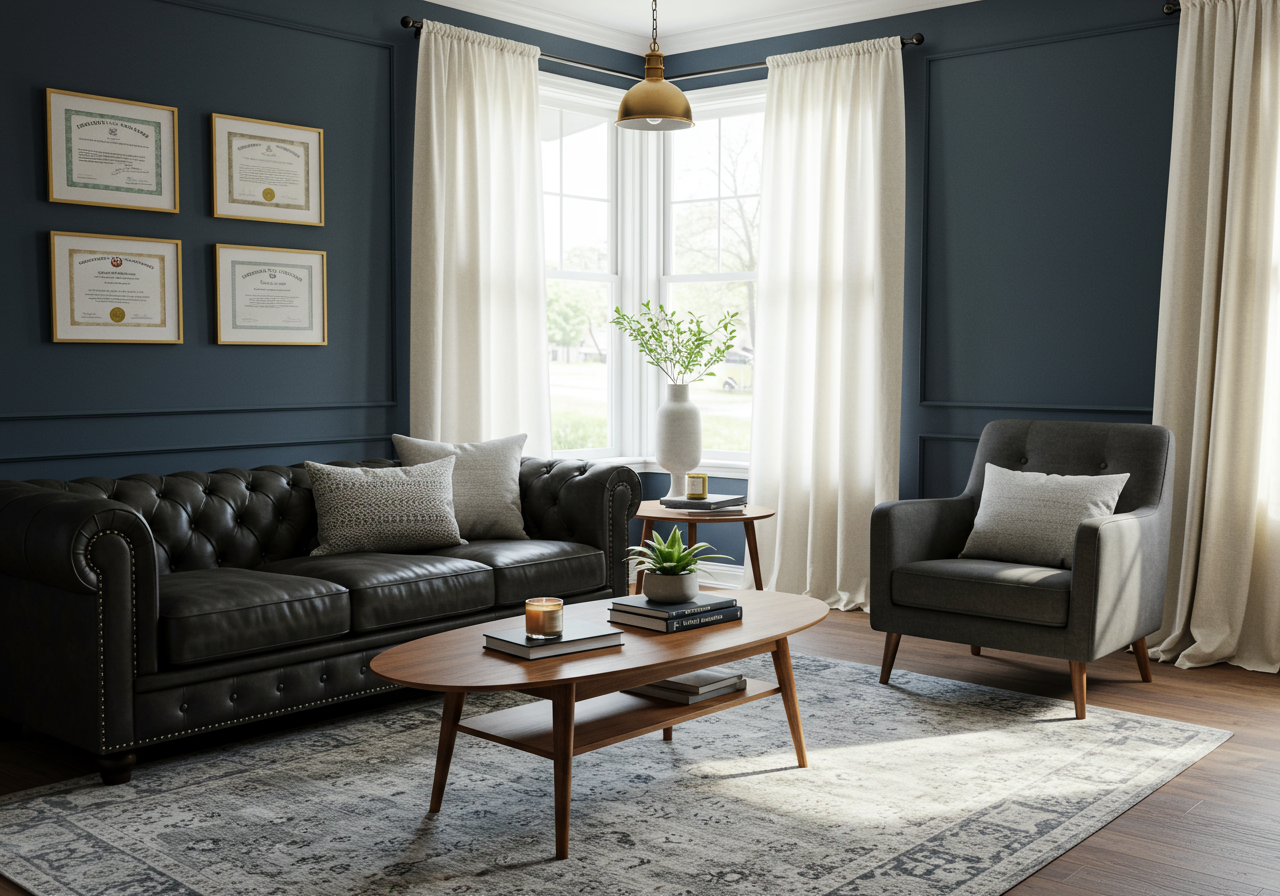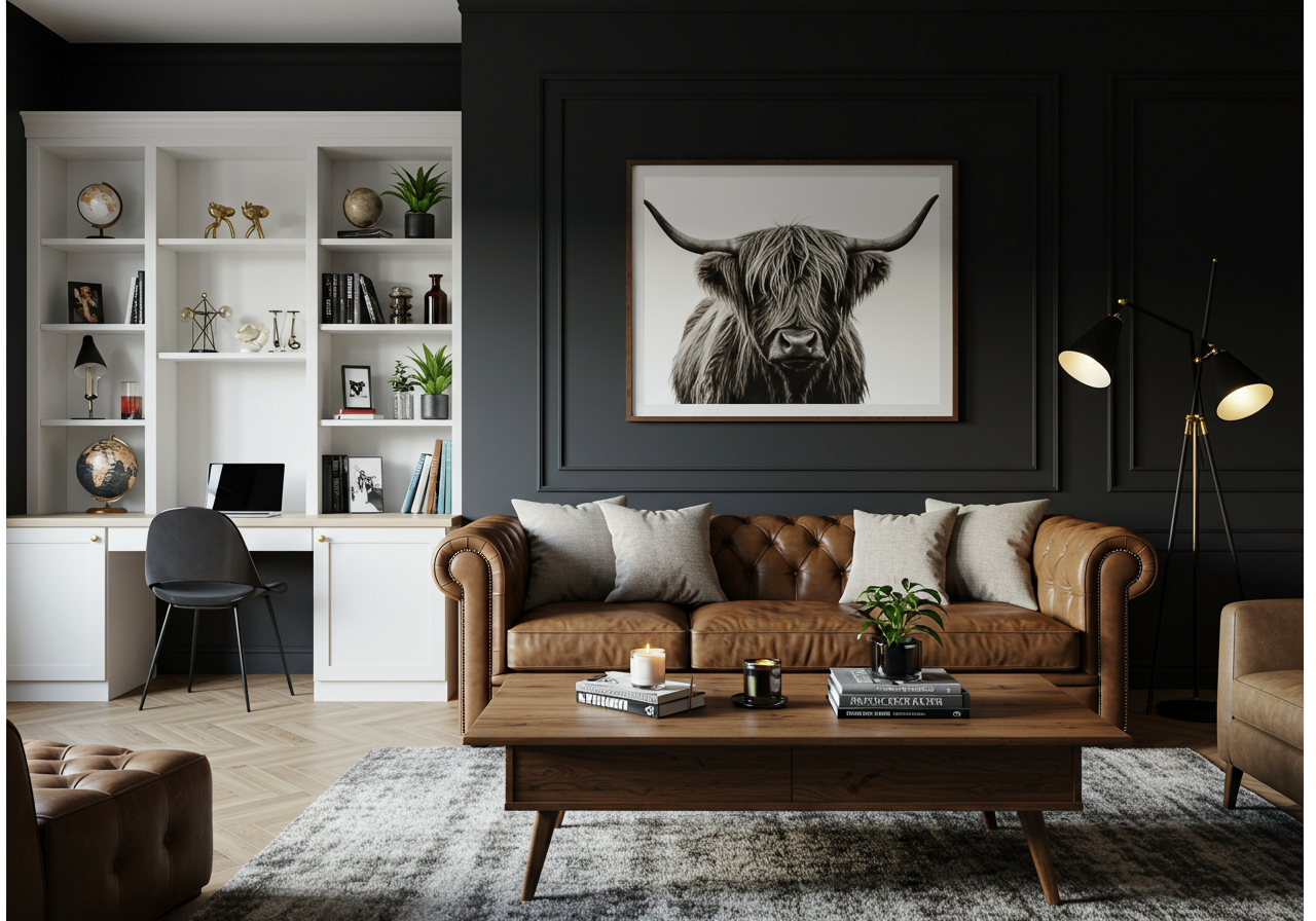 Keri’s design tip? Splurge on your staple pieces like the leather chesterfield couch from Pottery Barn, and the cabinet hardware from Schoolhouse Electric, and pair it with affordable items from places like Target, TJ Maxx, Amazon, and Wayfair. The coffee table was a Facebook Marketplace find, and the accent chair was handed down from her mother. “At just $60, the print from Target was a fun choice, and if it goes out of style, I can easily swap it out.”