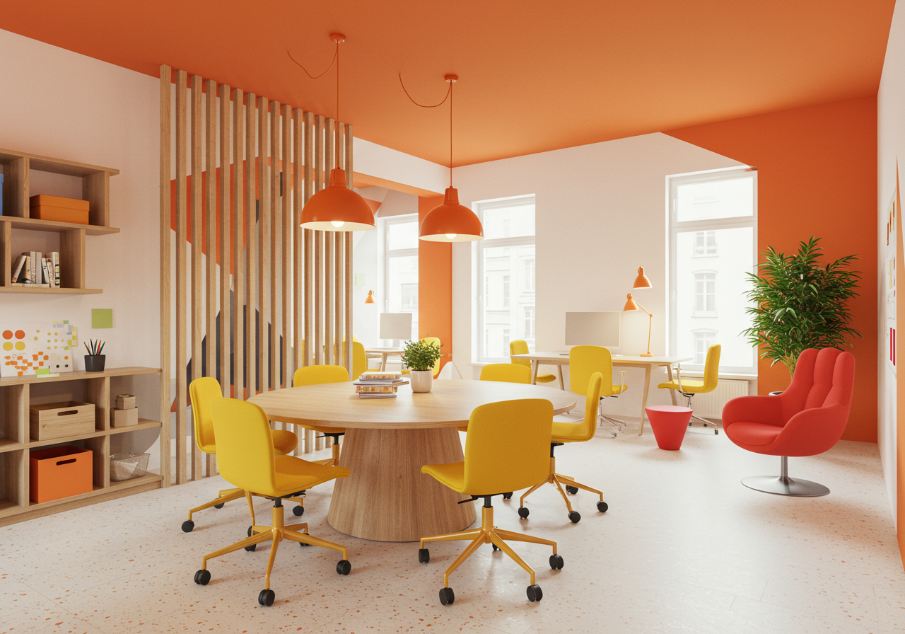 An absolute necessity for any co-working space? Coffee! Thanks to a fun color block arch, the coffee bar feels like its own special moment, worthy of a coffee break…or two…or three.