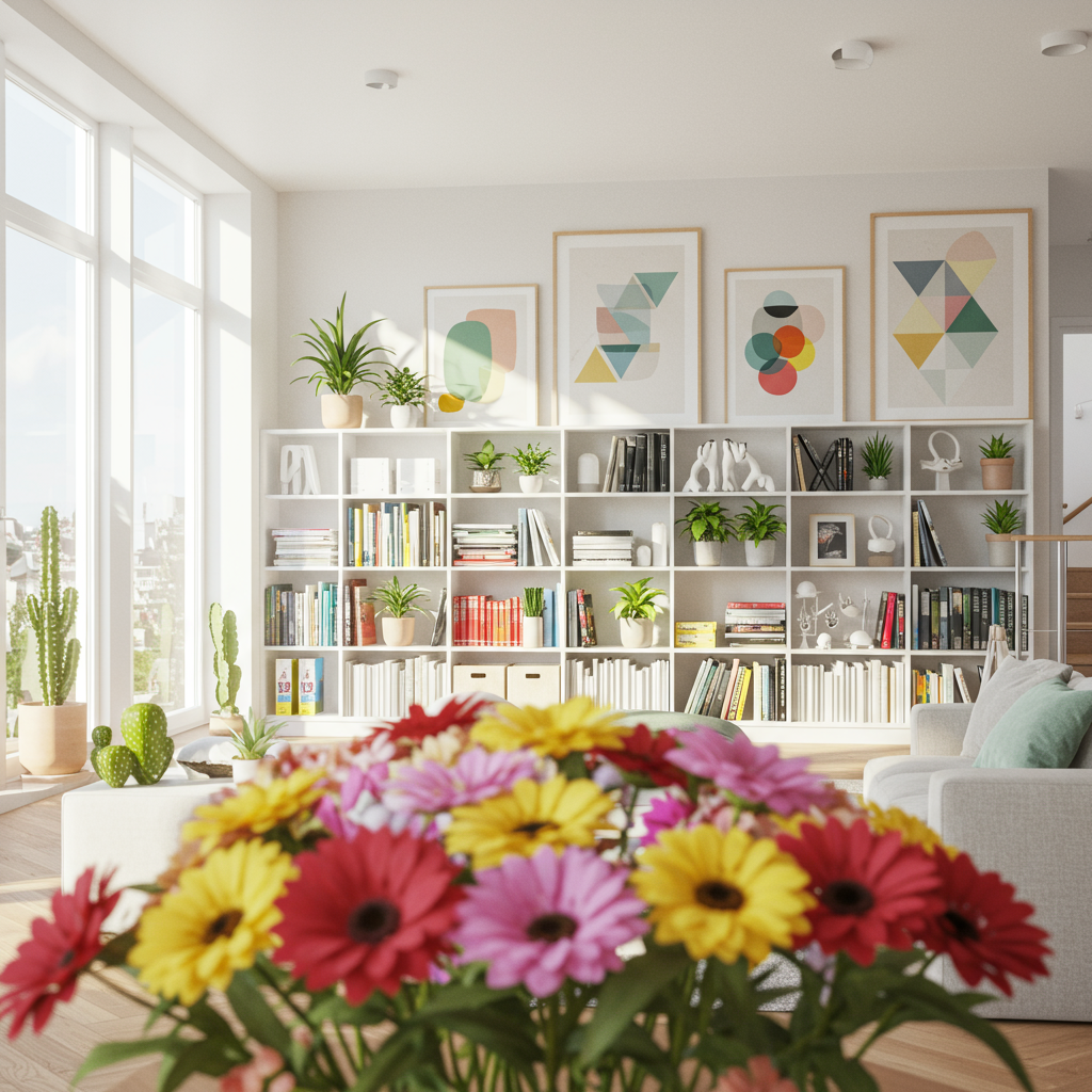 The addition of plants keep this bookshelf by Fabriksen feeling light and bright.