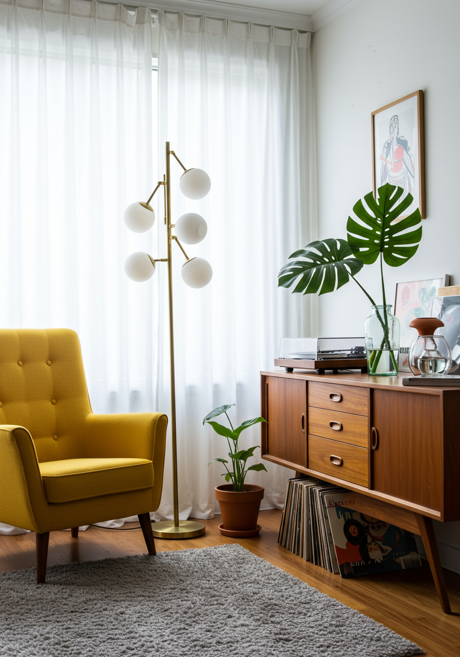 FLOOR LAMP No, you’re not having a flashback. This six-foot tall groovy floor lamp with a sculptural wood base and frosted glass shades is sure to make a statement. The scale of this piece would work best in a large area like the living room or family room. Yoji Floor Lamp, $449, urbanoutfitters.com
