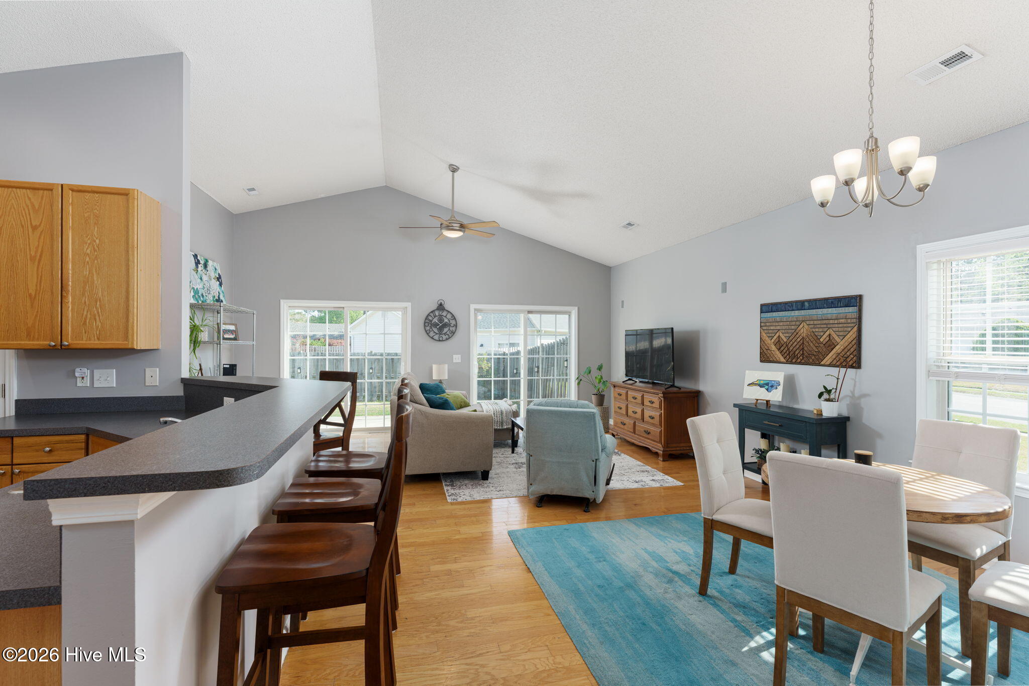 Inside, a bright and comfortable living area flows seamlessly into the dining space and kitchen, all enhanced by abundant natural light pouring through the expansive sliders--bringing the outdoors in and making the home feel even larger.