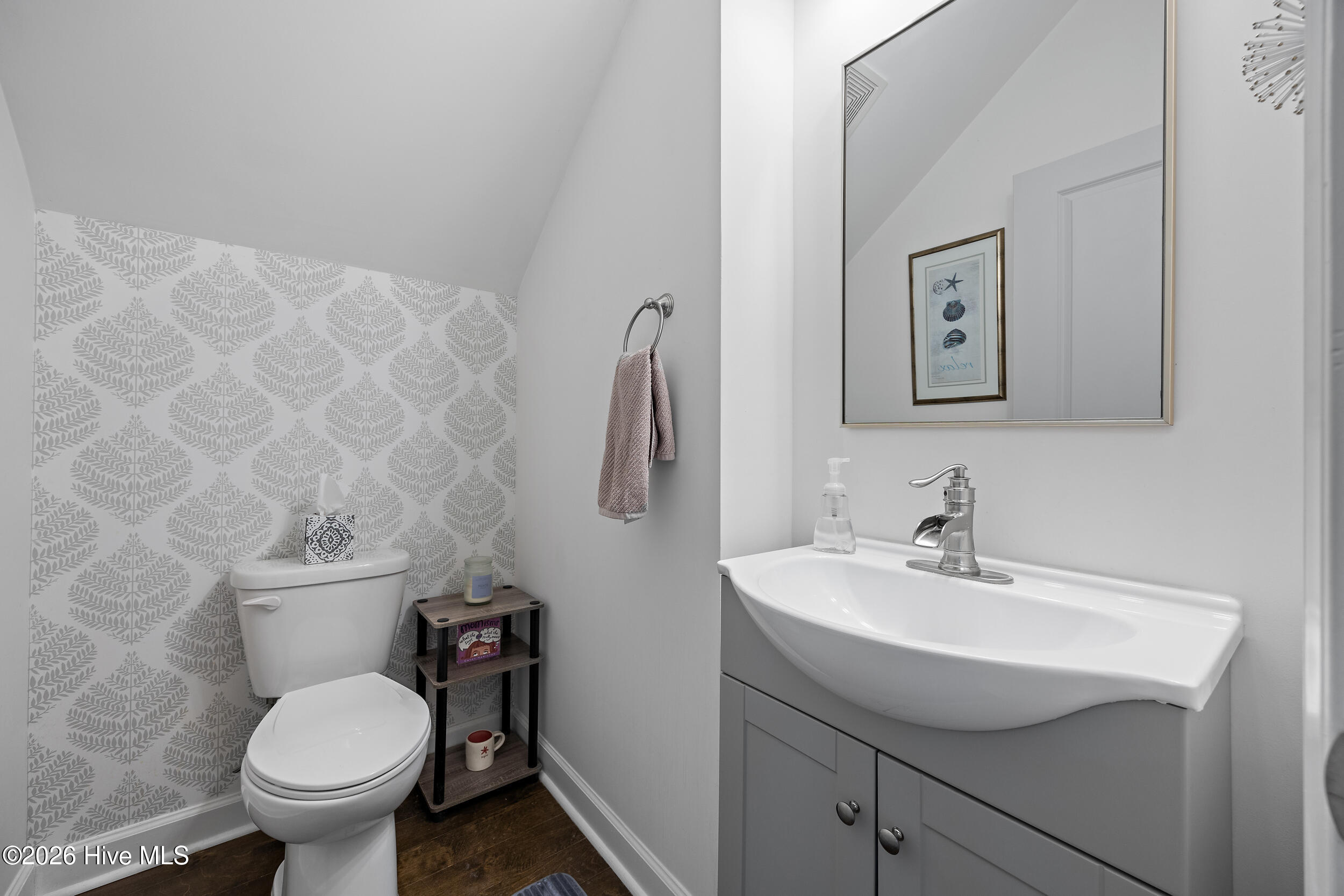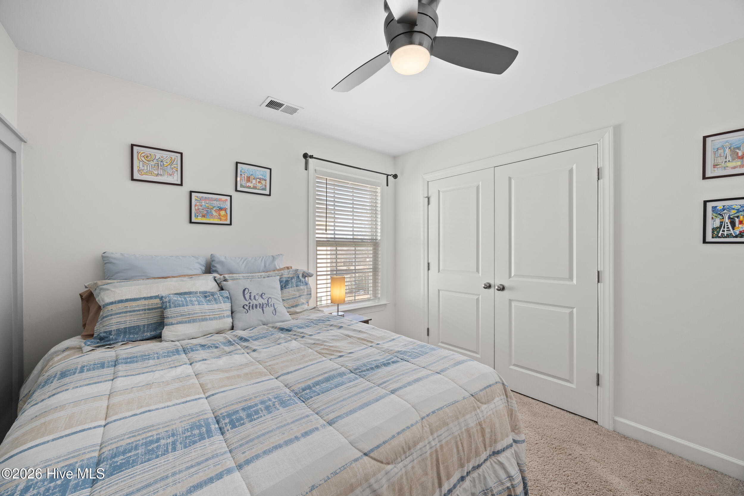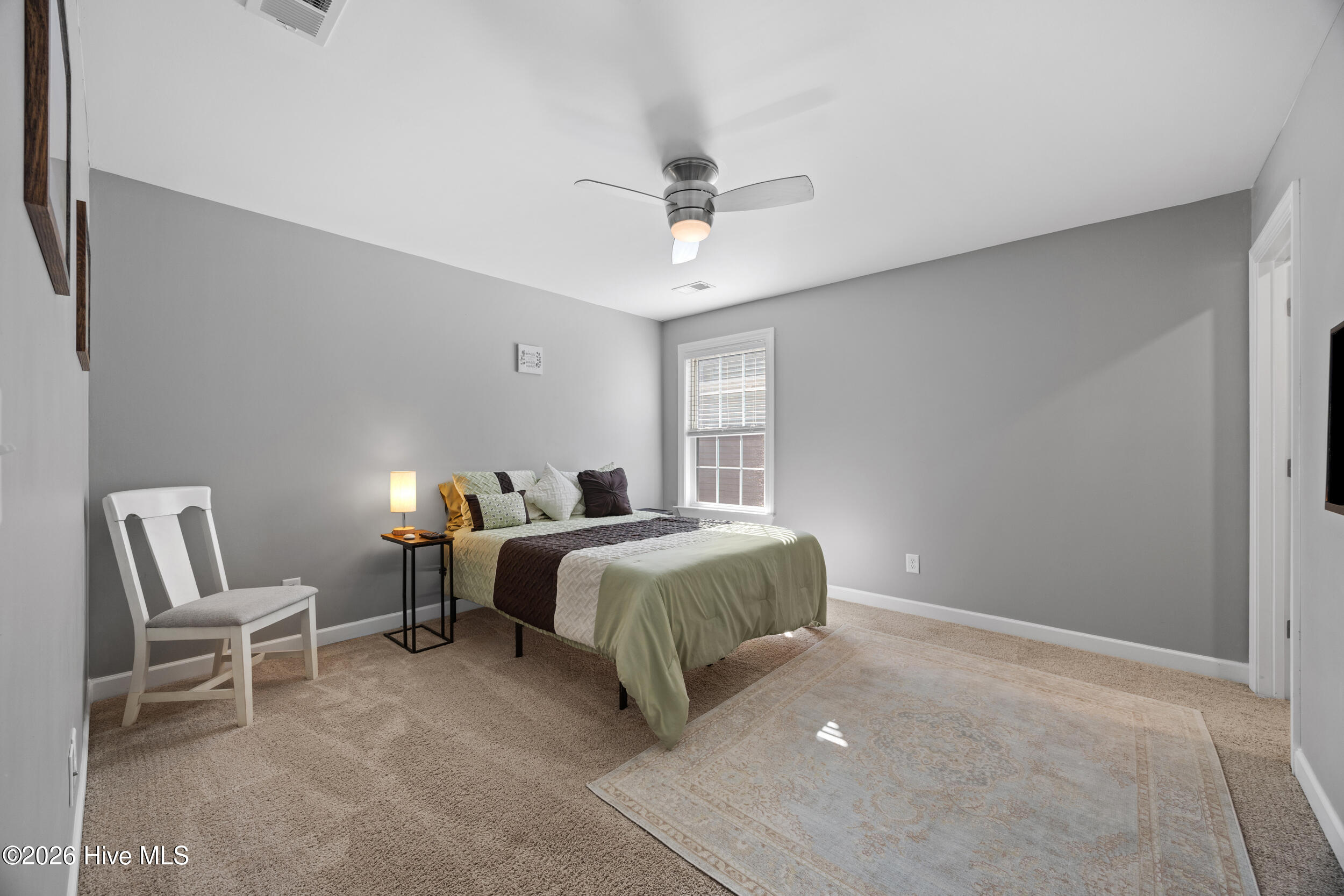 Welcome to easy living in the Villages of Olde Point, perfectly positioned in Hampstead's sought-after Topsail School District. With 2,451 square feet of space, this home offers 4 bedrooms, 2.5 bathrooms plus a bonus room. The main level features engineered hardwood floors, tons of natural light and a spacious primary suite with a large walk-in closet and ensuite bathroom with a walk-in shower and dual vanities. The open-concept design connects the living room, dining area, and sunroom. The living room is anchored by a gas log fireplace and has built-in surround sound. The kitchen showcases crisp white cabinetry, granite countertops, a white brick-style backsplash, under-cabinet lighting, upgraded stainless appliances including a gas range, and an oversized pantry. A large eat-in bar provides the perfect spot for casual meals or morning coffee. Upstairs, you'll find three additional bedrooms plus a versatile office/bonus room that can easily adapt to your needs, whether that's a home office, playroom, or media space. A dedicated tech closet keeps everything organized and out of sight. Step outside to enjoy a beautifully maintained, fenced backyard with mature landscaping, flowering shrubs, and a private patio. Additional peace of mind comes with a transferable Choice Home Warranty in place through 2030. Conveniently located near golf, shopping, dining, boat ramps, the Intracoastal Waterway, and area beaches, this home is sure to impress.
