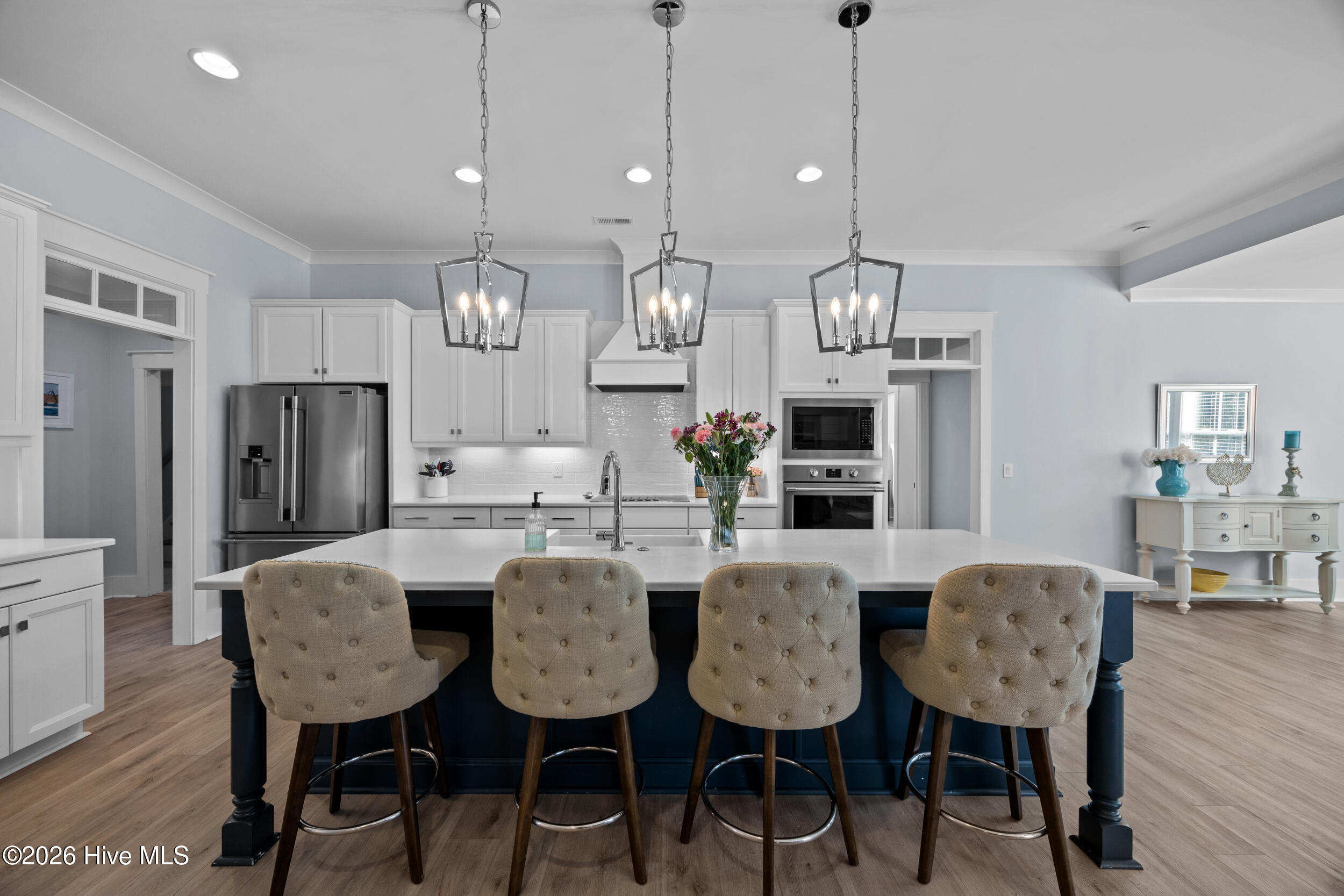 Welcome to one of Hampstead's most sought-after waterfront communities. Tucked away on a homesite that backs up to mature trees for extra privacy, this 5 bedroom, 4.5 bathroom home offers approximately 3,540 square feet of beautifully curated space with a layout designed for first-floor living.