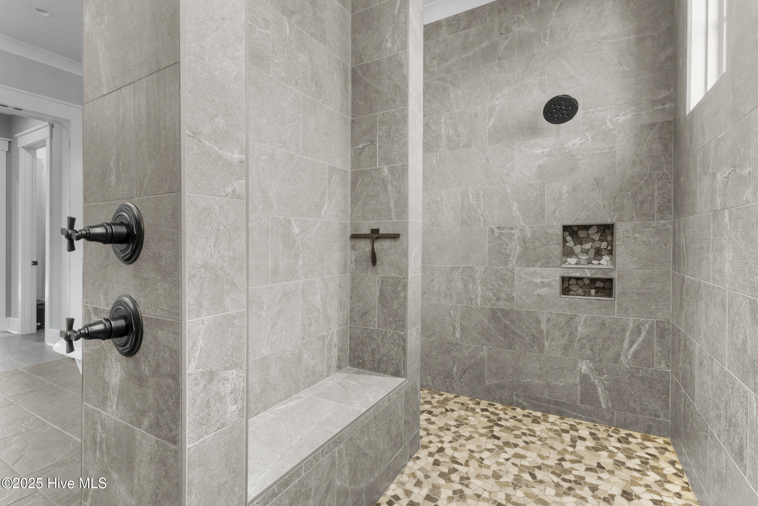 The outdoor space is just as impressive with a salt-rock finished patio, grill station, pergolas, and fireplace overlooking the serene wooded backyard with plenty of room for a pool. Additional features include an oversized garage with golf cart access & epoxy floors, smart home water security system, and Rinnai natural gas tankless water heater.