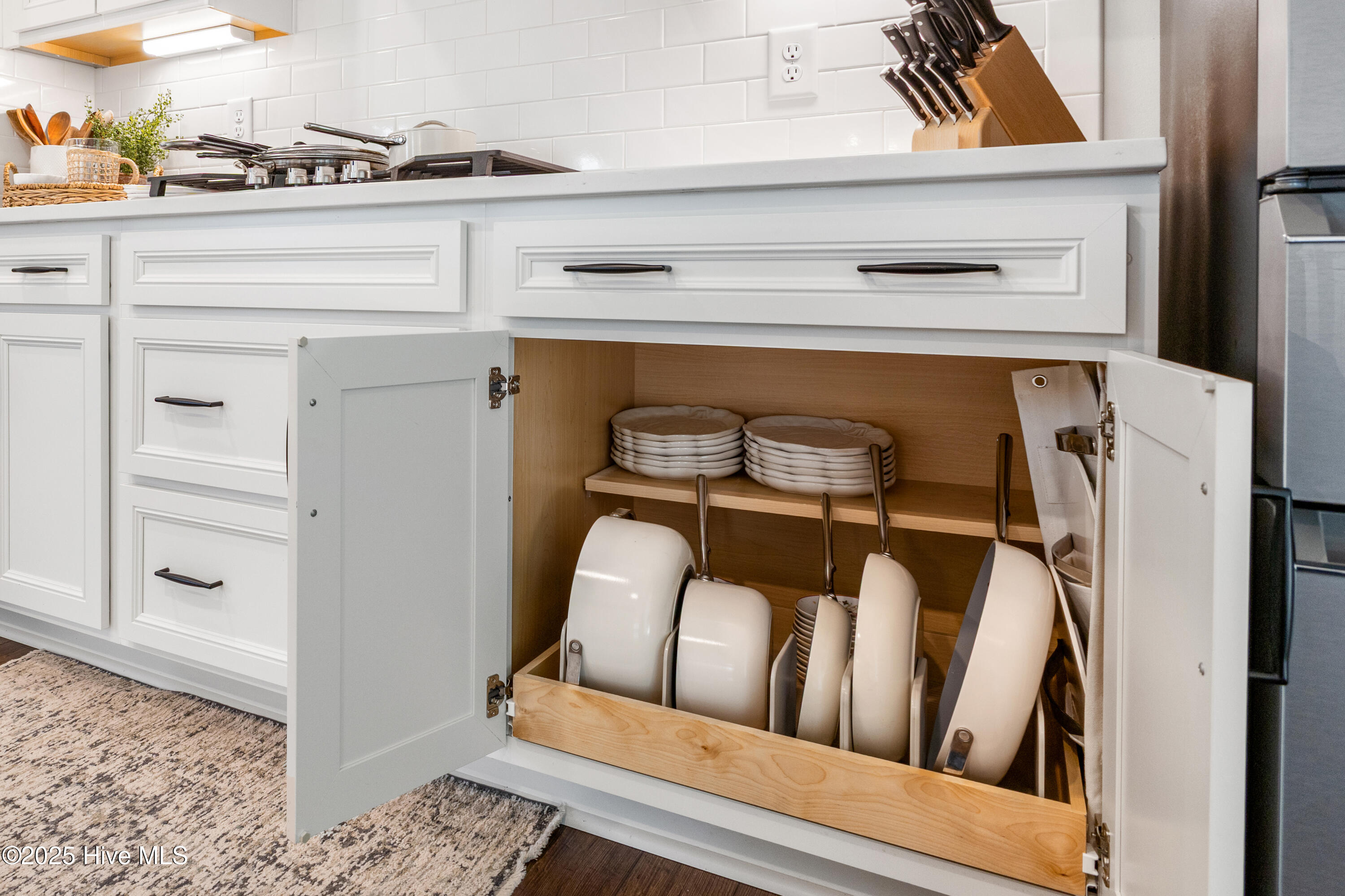 glass-front fridge, and updated blinds.