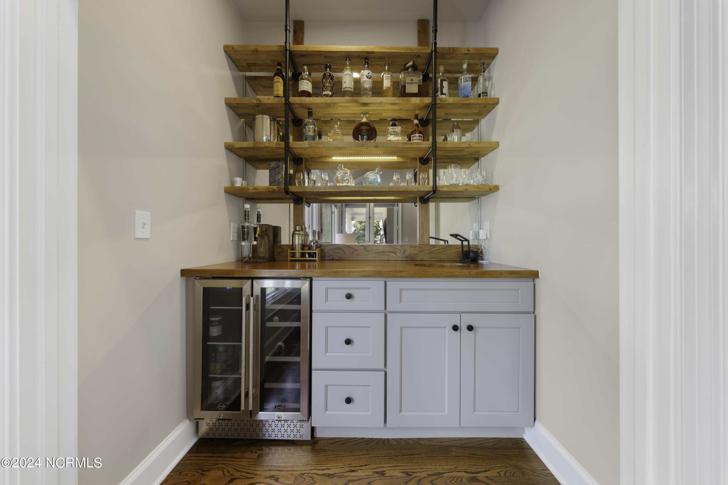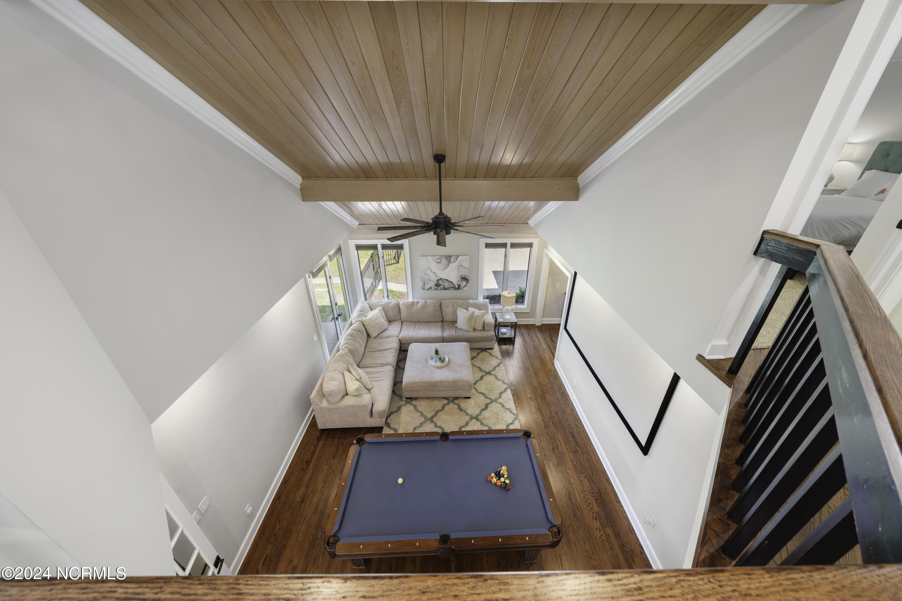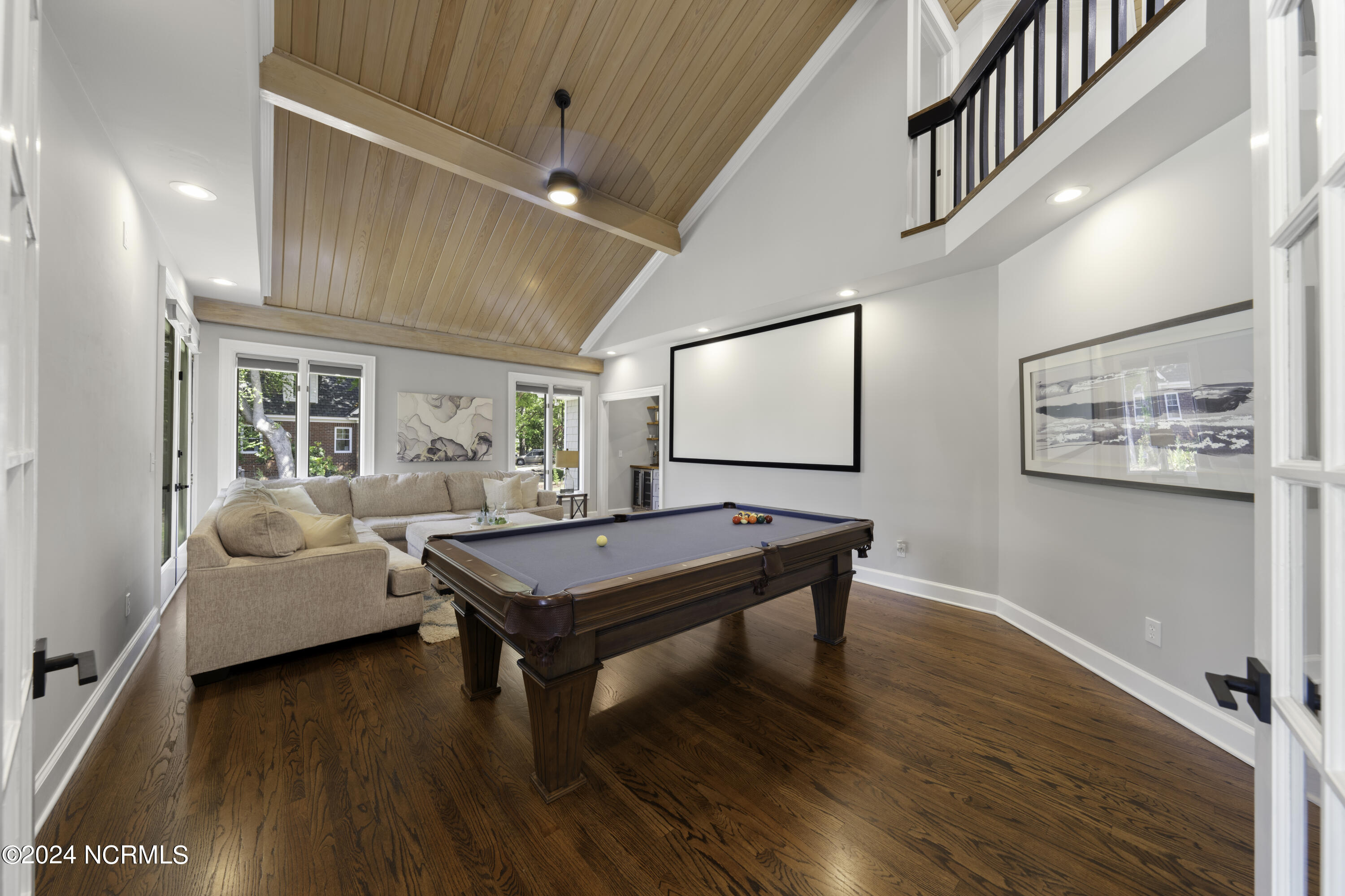 A game room on the main floor with access to the back porch, a renovated wet bar with high-end finishes, all makes for perfect entertainment space.