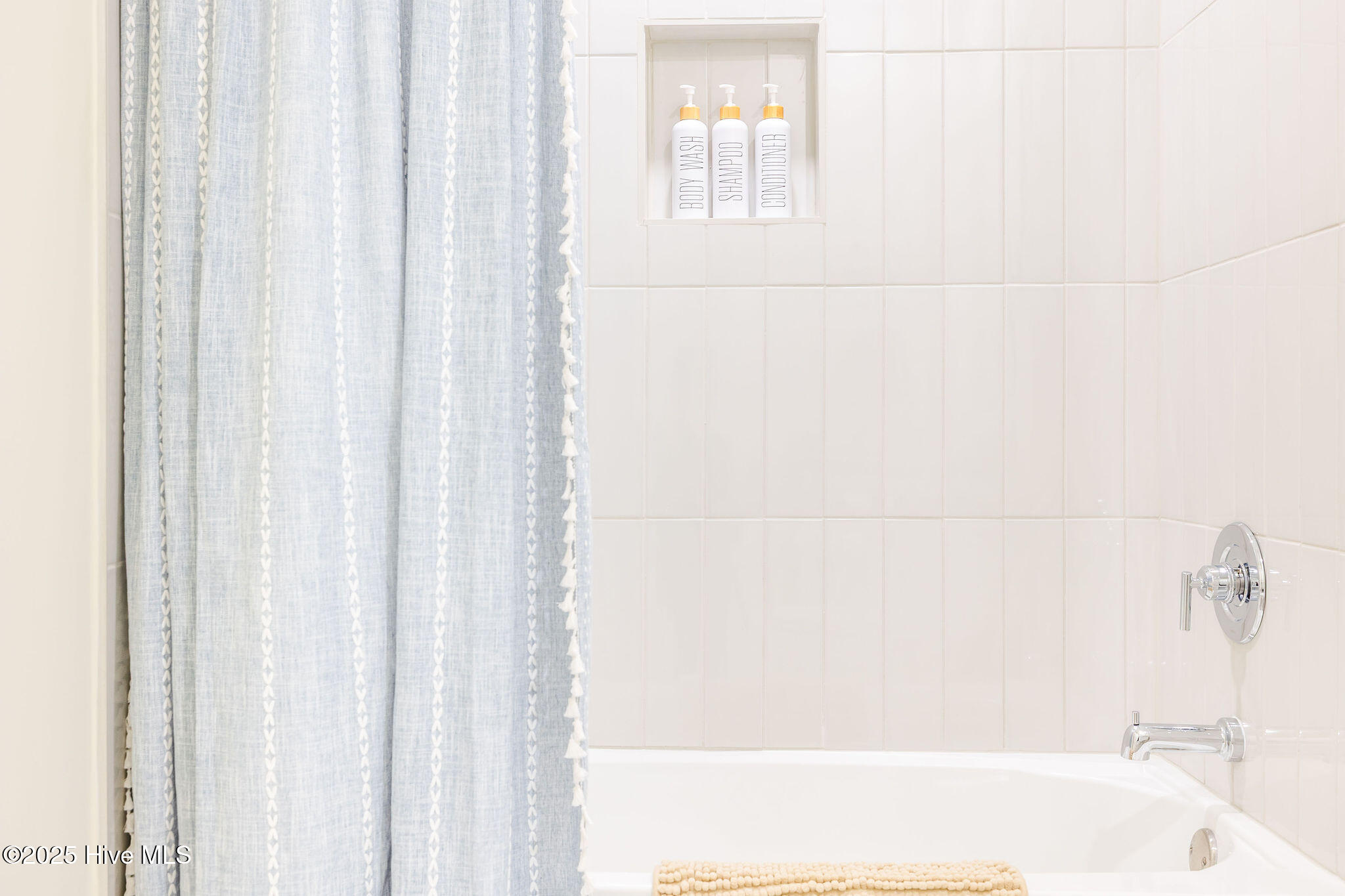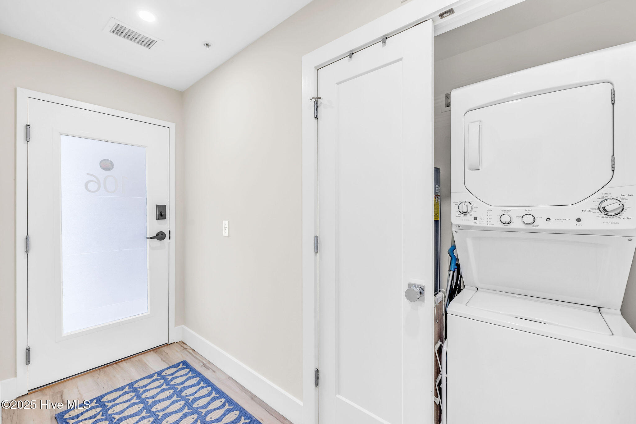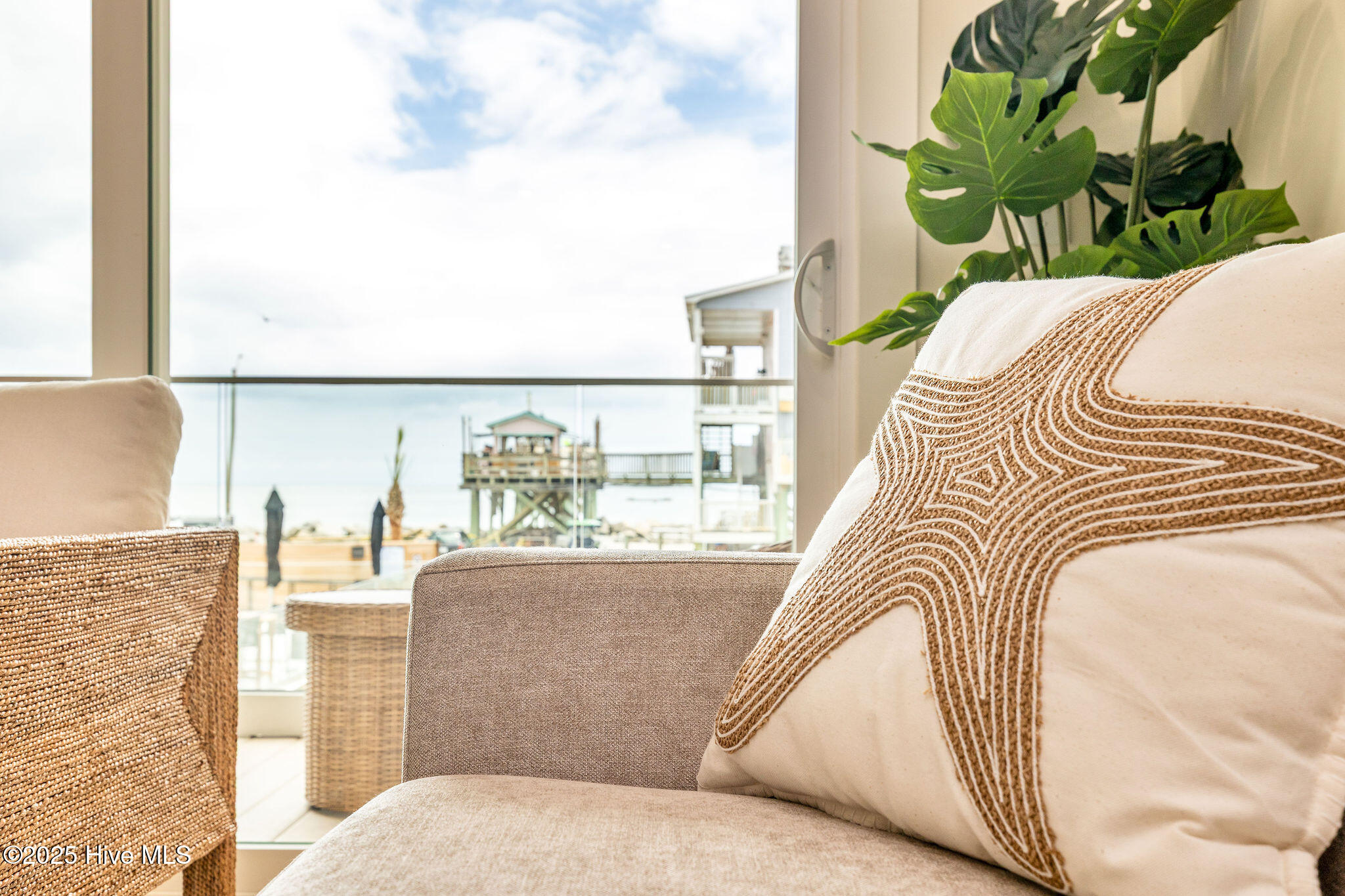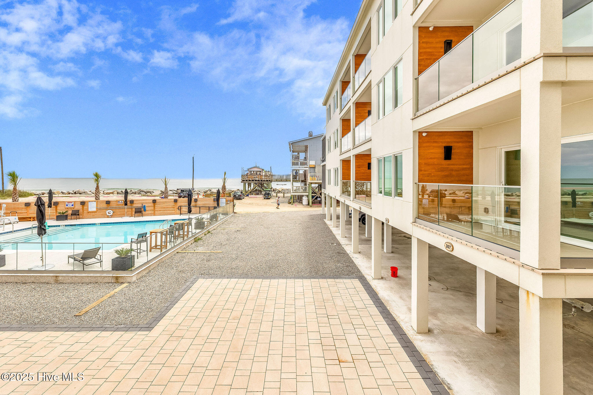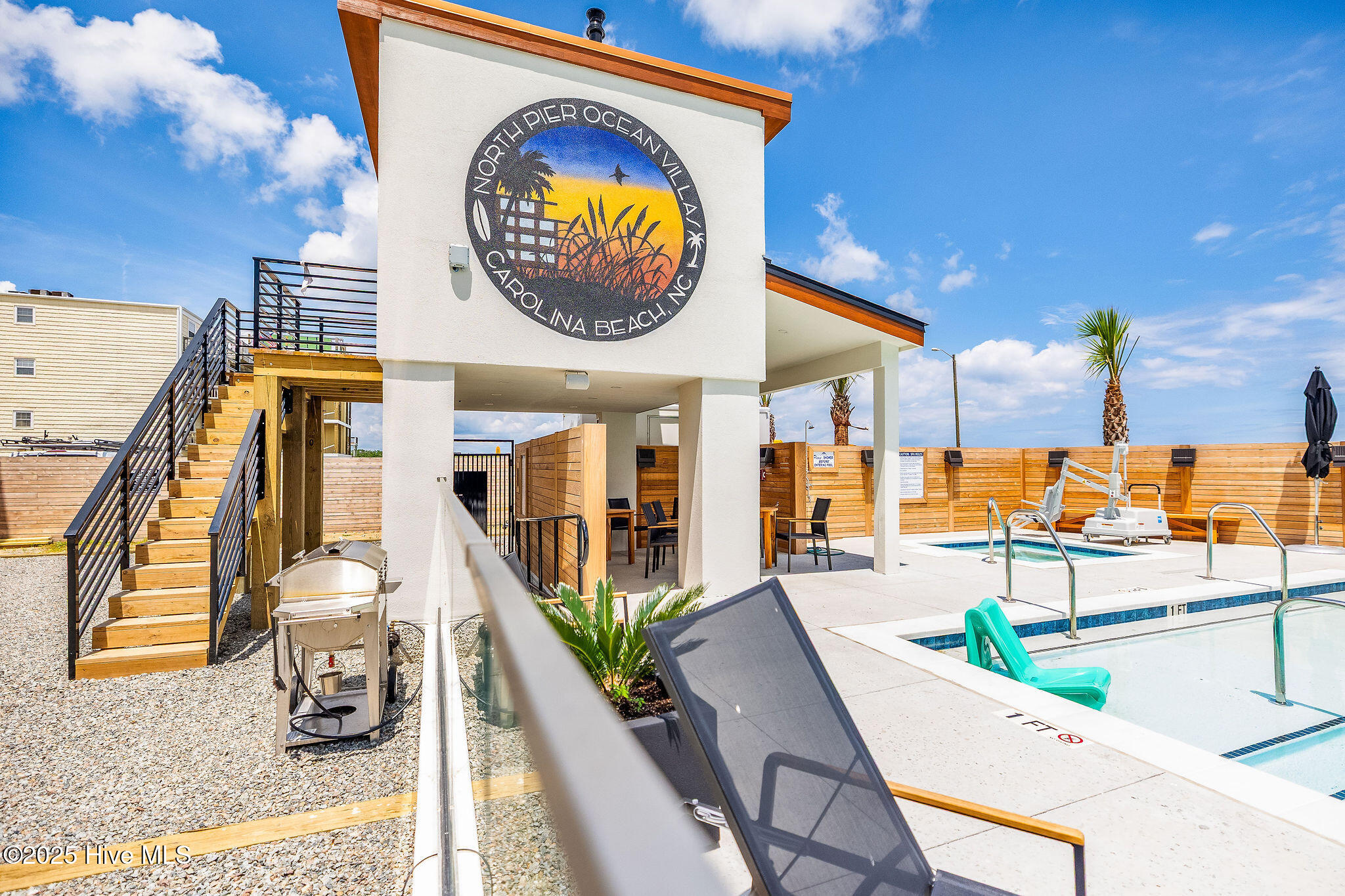 Step into upscale seaside living with this fully updated 2 bedroom, 2 bathroom oceanfront condo in the North Pier condominium. Completely furnished and already generating strong late-season rental income, it presents an outstanding opportunity for investors or second-home buyers. Designed for low-maintenance luxury, the open-concept layout welcomes you with a showstopping kitchen featuring custom tile backsplash, sleek quartz countertops, premium appliances, high-end fixtures, and beautiful teak wood shelving. The kitchen flows seamlessly into the bright and airy living room, where sliding glass doors lead to a private covered balcony overlooking the ocean. The primary suite, located at the front of the condo, showcases expansive windows framing sweeping ocean and pool views. Its spa-inspired ensuite bath includes a stunning tiled zero-entry shower. A second bedroom sits at the back of the condo with a full bath just outside the door, complete with a tiled tub/shower combo. A dedicated laundry closet with stacked units adds everyday convenience. Residents of North Pier enjoy two assigned ground-level parking spaces, an EV charging station, and access to a brand-new elevator along with dual staircases. Ideally located on the North End of Carolina Beach, just behind the iconic Carolina Beach Pier and steps from Freeman Park, High Tide Lounge & Tiki Bar, and two public beach access points, this condo offers the ultimate setting for sun-soaked days and effortless seaside living.