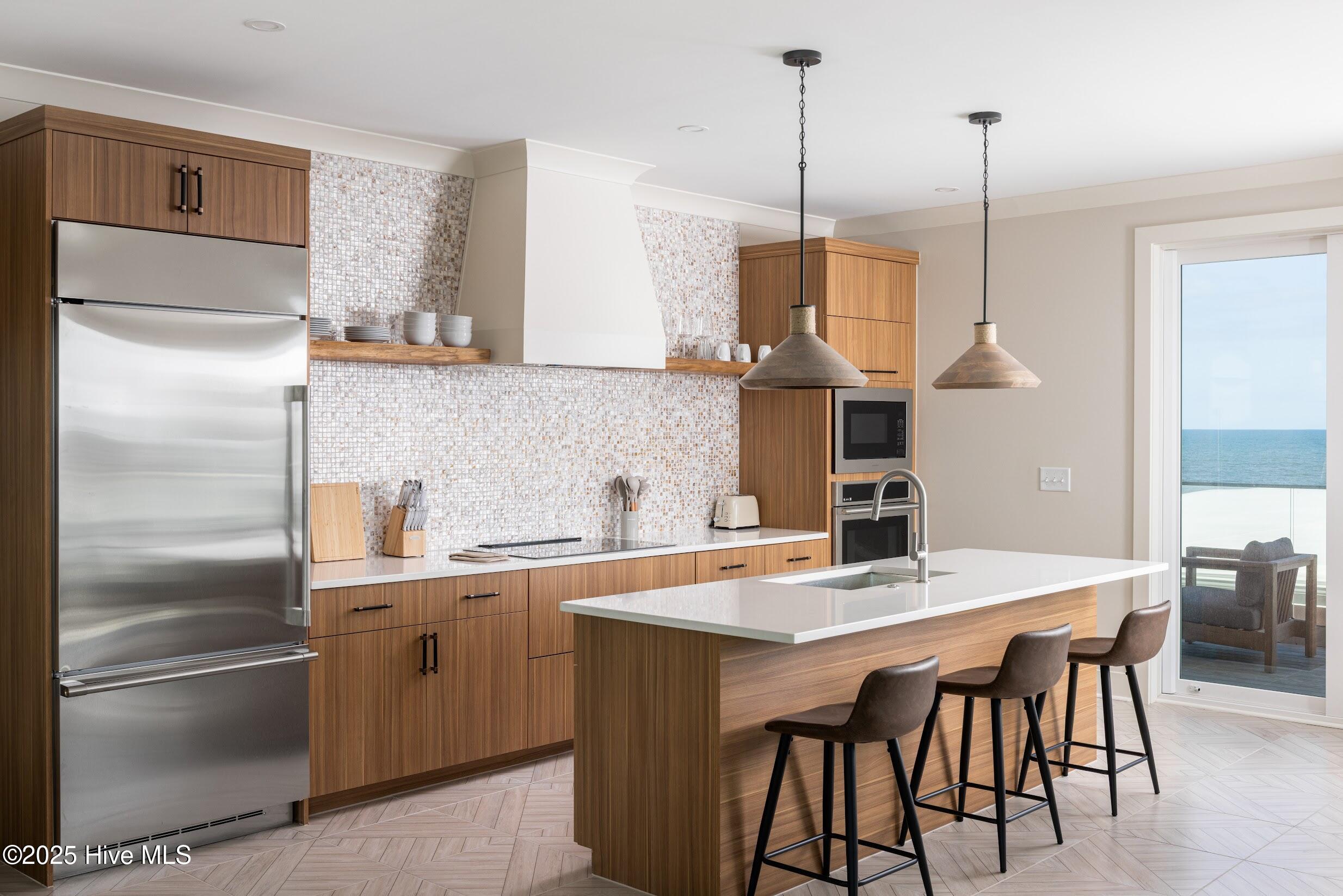 LIMITED TIME: $25K Buyer Credit for the Next 5 Contracts - Act Now!! Perched high above the waves on the top floor of the exclusive North Pier Condominium, Unit 401 is a rare gem; one of only four penthouse residences in the entire building. This 4th-floor retreat offers sweeping 360-degree views of the Atlantic Ocean and Intracoastal Waterway from a private wrap-around balcony with sleek impact glass railings that maximize the views and ocean breeze. Located at the North End of Carolina Beach behind the iconic Carolina Beach Pier, this oceanfront sanctuary is perfect for those seeking a resort-style lifestyle. Enjoy full access to a stunning community pool and hot tub, surrounded by a spacious sun deck with unobstructed ocean views. Inside, this 2 bedroom, 2 bathroom penthouse spans 1,413 square feet of coastal elegance. The open-concept floor plan is framed by four-panel sliding glass doors on every wall, seamlessly connecting the interior with the remarkable views outside. The designer kitchen features all-wood micro-shaker cabinetry, Brazilian quartzite countertops, floating teak shelves, luxury mosaic tile backsplash, stainless steel GE(r) appliances, a white designer range hood, and a deep single-basin sink. A large island with bar seating opens to the dining and living areas, which also feature a full wet bar with beverage fridge, ice maker, and sink. The ocean-view primary suite includes private balcony access, double closets, and a luxurious ensuite with a zero-entry walk-in shower. The second bedroom is spacious and offers a full bathroom just around the corner. Each residence includes two ground-level assigned parking spaces and an EV charging station. A brand-new elevator and dual staircases ensure easy accessibility for all. Perfectly located next to Freeman Park, High Tide Lounge, and the Carolina Beach Pier, with two public beach access points just steps away, this property offers the ultimate setting for swimming, surfing, fishing, and relaxation.