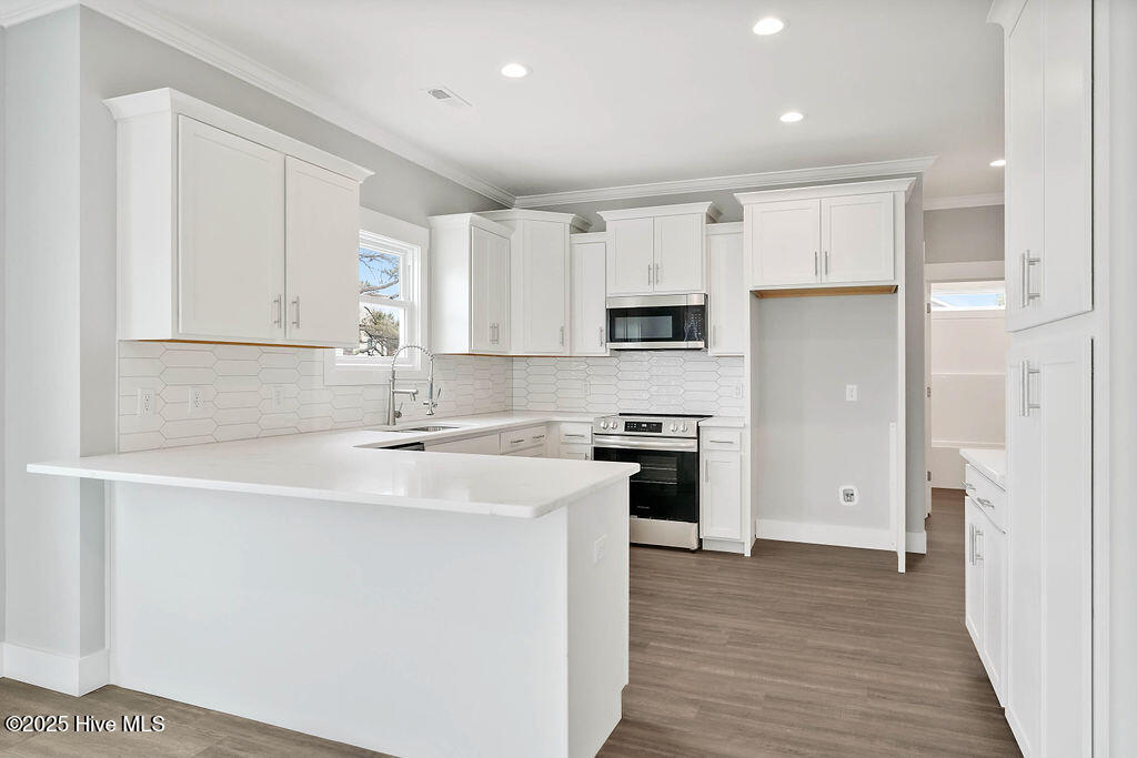 Welcome to this stunning new construction townhome located in the heart of Carolina Beach, just three blocks from the ocean with a convenient public beach access at the end of the street. This beautifully designed three-story home offers four bedrooms, three bathrooms, and over 1,800 square feet of living space, with an estimated completion date of March 31, 2025.On the bottom floor, you'll find a spacious 48x13 garage that provides plenty of room to park your cars or golf carts while also offering storage space for all your beach essentials. The second floor serves as the main living area, featuring an open-concept design where the kitchen overlooks the dining and living spaces. The kitchen will be a true showstopper with its stainless steel appliances, white cabinetry, quartz countertops, and tile backsplash. Natural light floods the main living area through an abundance of windows, while sliding glass doors lead out to a covered balcony where you can enjoy the salty air and refreshing ocean breezes. This floor also includes one bedroom and a full bathroom, making it perfect for guests or flexible living options. The remaining bedrooms are located on the third floor, including the dreamy primary suite. This retreat features an ensuite bathroom with dual vanities, a walk-in shower, a water closet, and a spacious walk-in closet. The primary suite also boasts sliding glass doors that open to a private third-floor balcony. Two additional generously sized bedrooms share a full bathroom, completing the upper level. All bathrooms in the home are finished with quartz countertops. This townhome is situated on Spartanburg Avenue, just minutes from the Carolina Beach Lake, Mike Chappell Park, and a variety of local shops and restaurants. With its modern finishes and an unbeatable location, this home has it all!