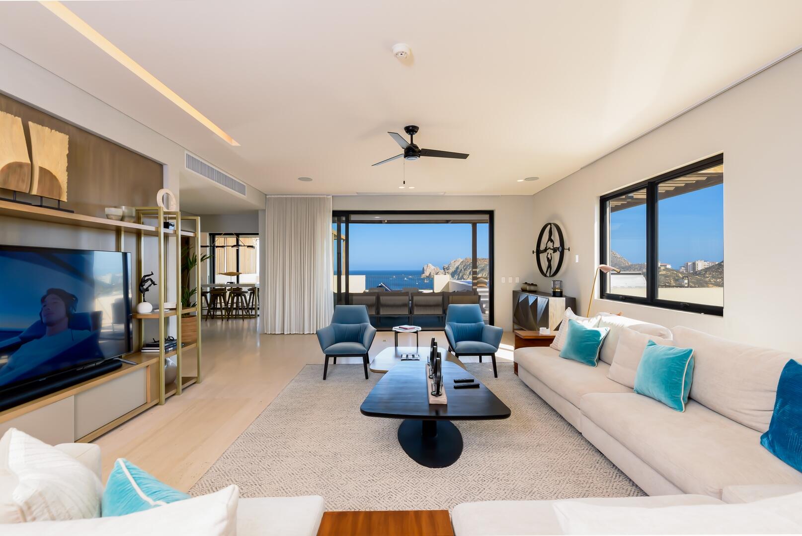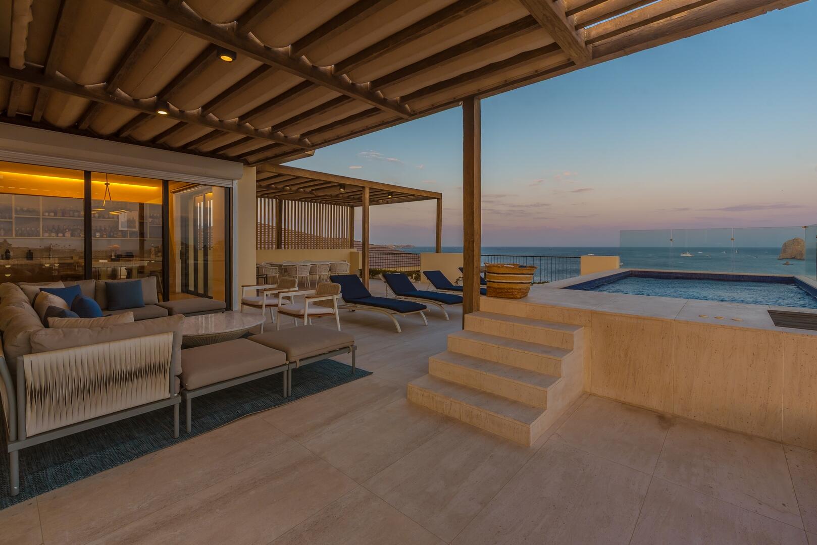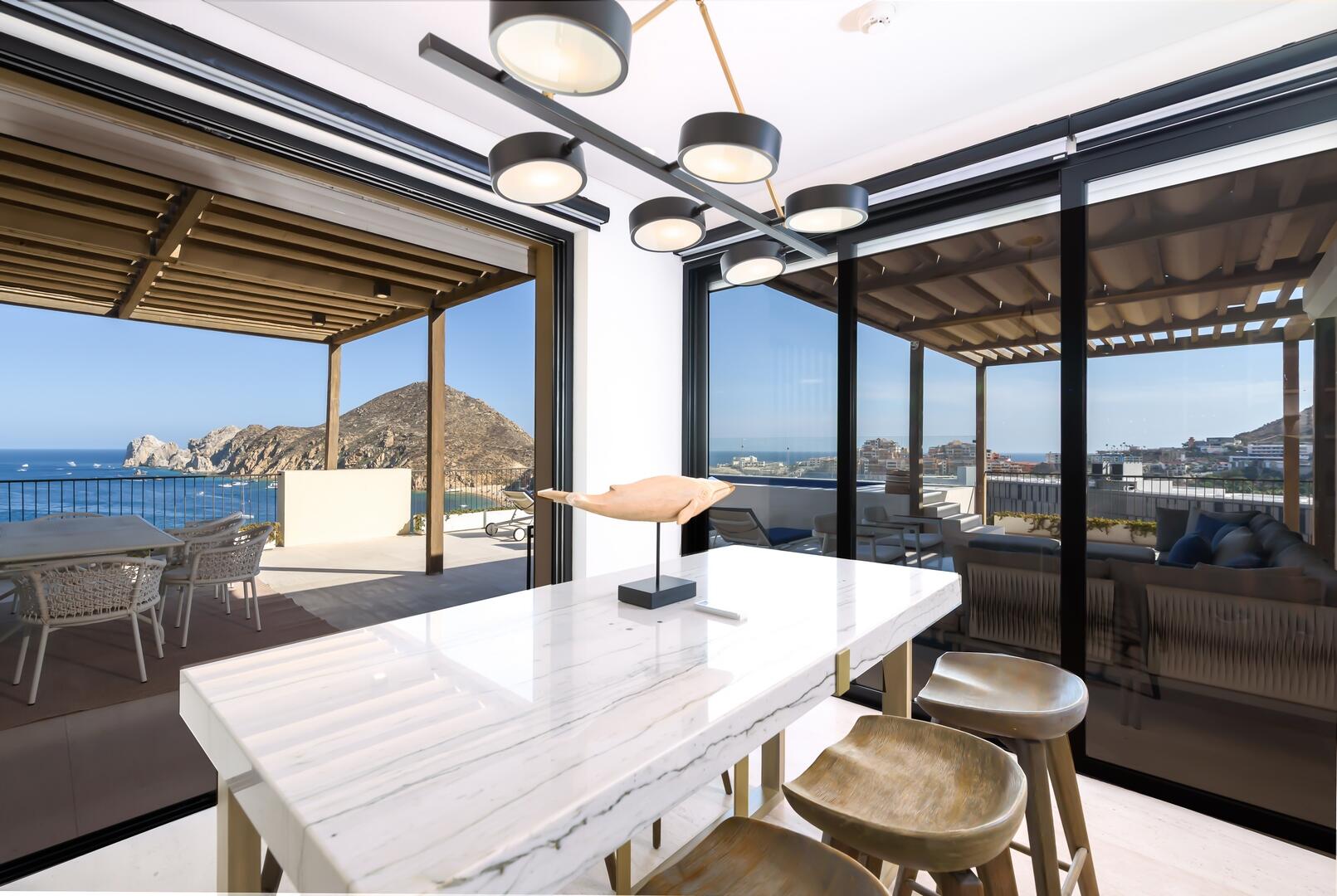 Set above the marina on Medano Beach, this 5-bedroom, 5.5-bath penthouse at 1Homes & Hotels encapsulates Cabo luxury. With sweeping views across the Sea of Cortez & over Land's End to the Pacific, the residence blends coastal chic with modern Mexican architecture--warm textures, artisanal details, and seamless indoor-outdoor living. Expansive terraces, curated interiors, and refined finishes create an elevated, effortless lifestyle. Steps from the vibrant heart of Cabo, enjoy walkable access to world-class dining, nightlife, and yachting. Enjoy the full suite of 1Homes amenities, including concierge, wellness, and hotel services. Ideal as a legacy investment, income-producing asset, or private sanctuary, this penthouse offers rare scale & style, in Cabo's most coveted beachfront locations