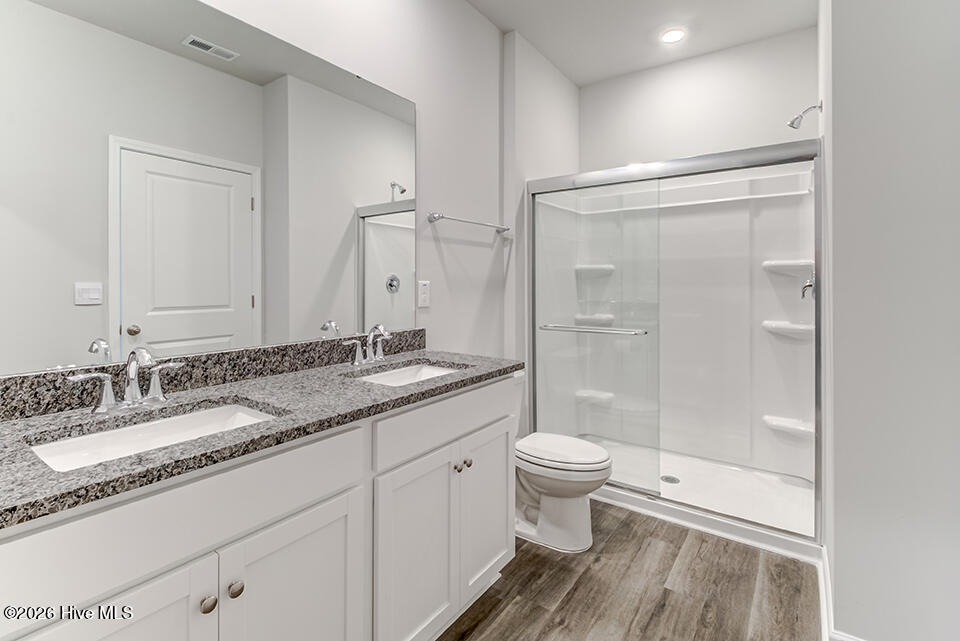 This three-bedroom, two-bathroom home offers a thoughtfully designed floor plan. The open-concept layout features a sleek kitchen that overlooks the spacious living room--ideal for entertaining or relaxing. Just off the front entry, you'll find two bedrooms, a shared full bathroom, and a convenient walk-in laundry room. Tucked away at the back of the home, the owner's suite includes a walk-in closet, dual vanity, and a large walk-in shower. The home features LVP flooring throughout the main living areas with carpet in the bedrooms. This home has low maintenance.