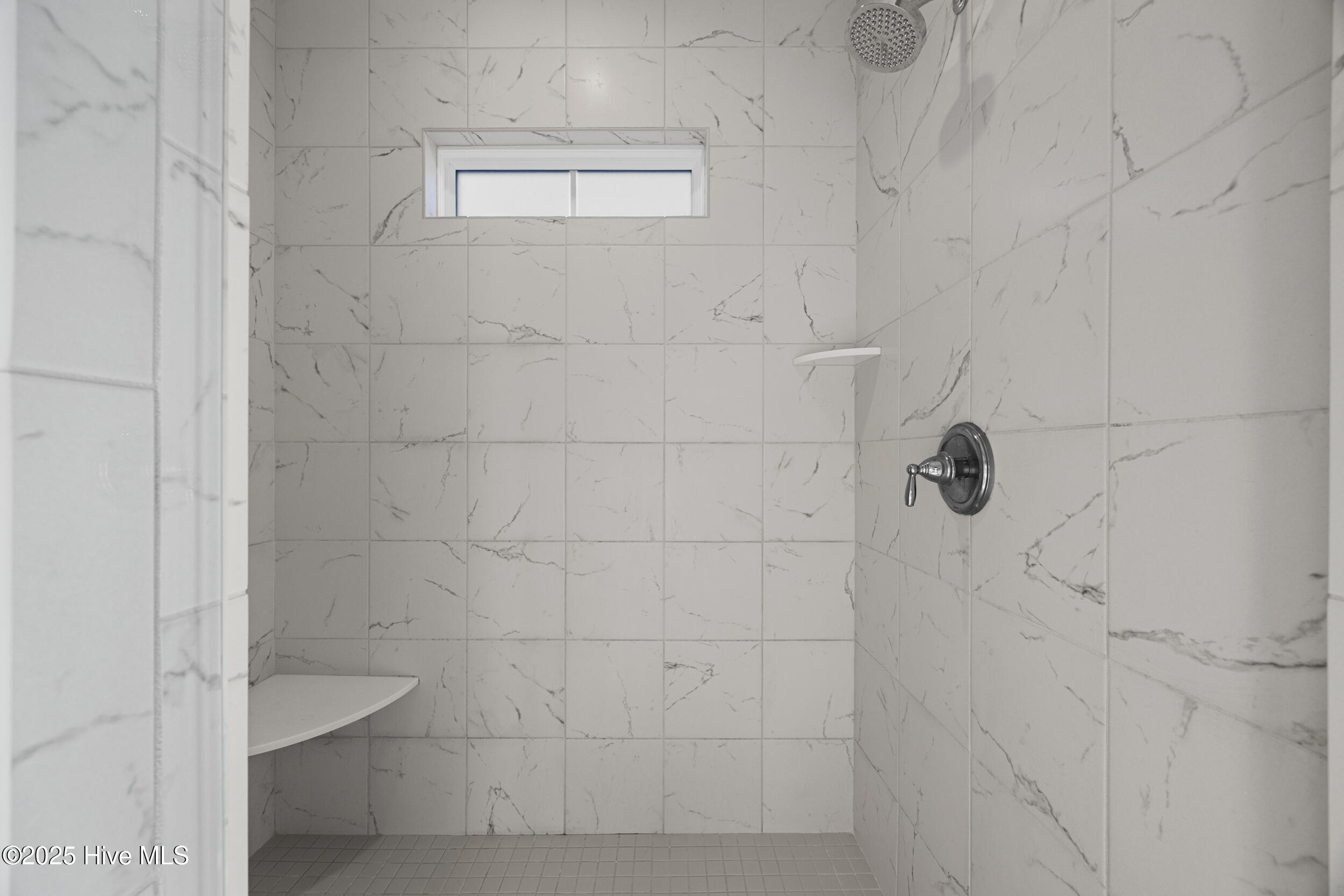 The primary suite is a peaceful escape with dual vanities and a large tiled walk-in shower adjoining master closet offers wood shelving and ample space. Two additional main-level bedrooms, a full bath, and a convenient laundry room complete the first floor. Just off the laundry room, the two-car garage offers an additional storage room for exceptional organization.