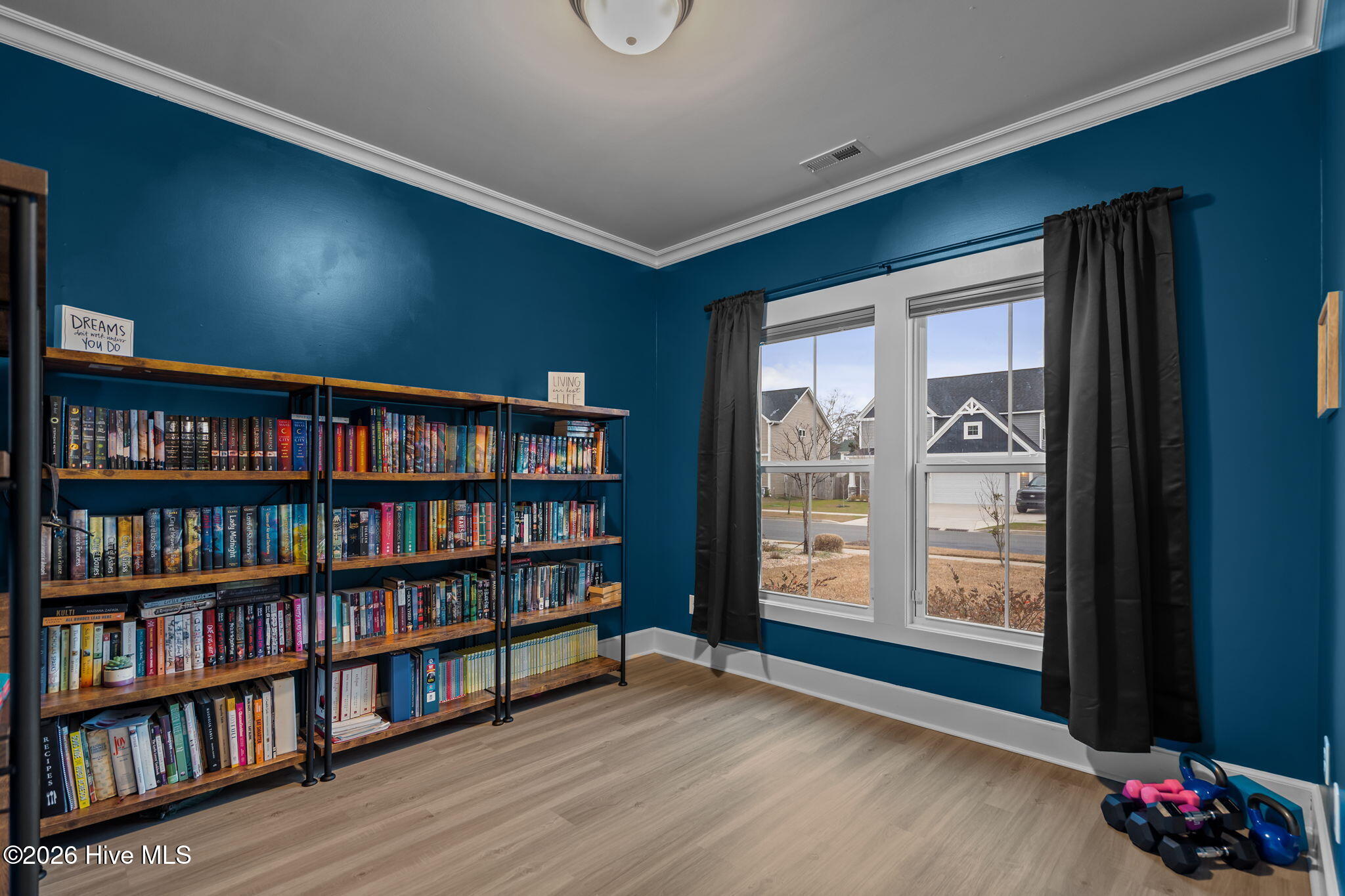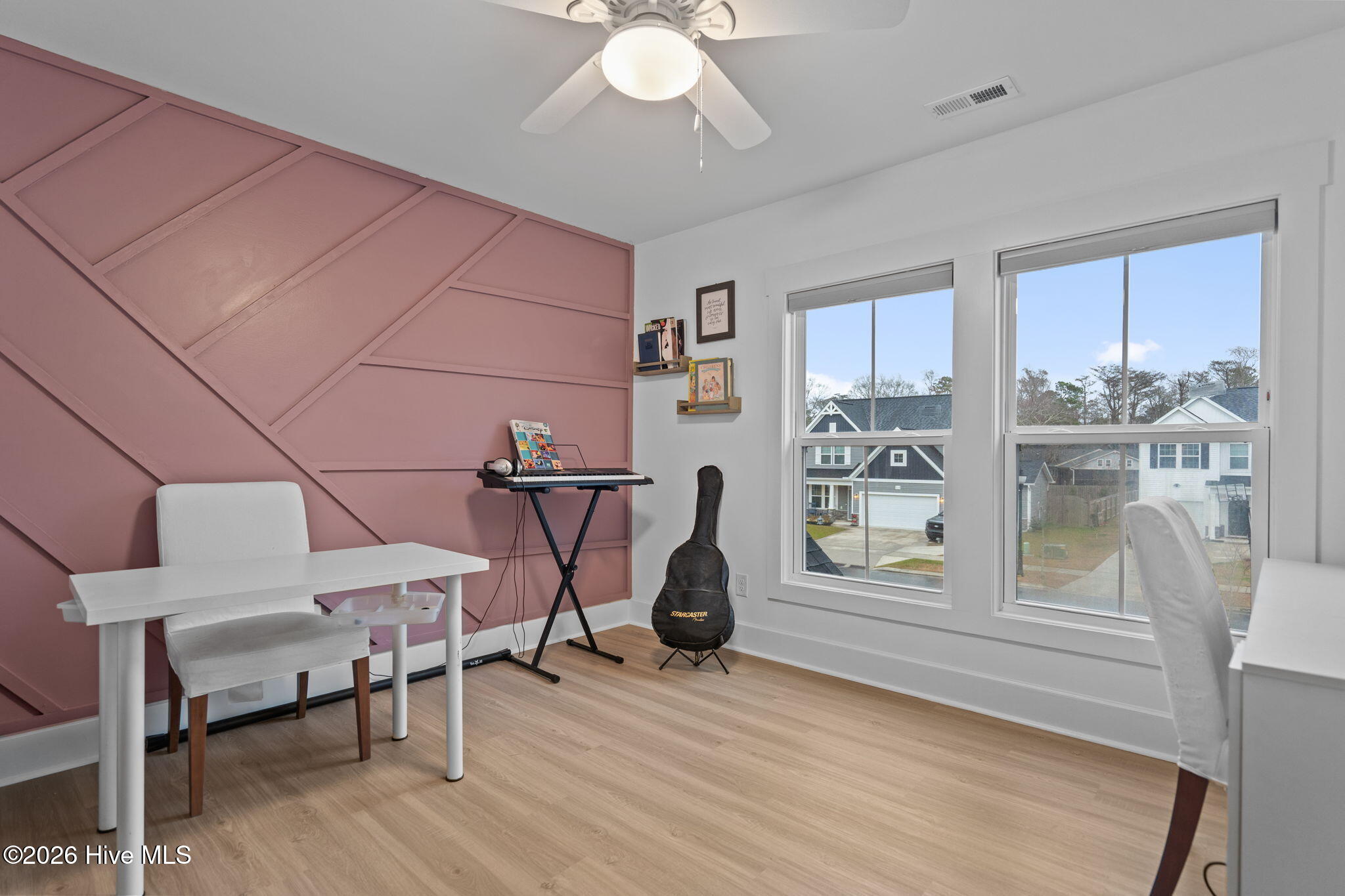Built by Logan Homes, this home features LVP flooring, granite countertops, stainless steel appliances, reverse osmosis in sink and refrigerator and an open floor plan with a fenced backyard ideal for entertaining. The main level offers a guest bedroom with full bath, spacious kitchen with island, formal and casual dining areas, a large family room with optional gas-log fireplace, home office, and sliding doors to a covered, screened porch. Upstairs includes a generous primary suite with soaking tub and separate shower, three additional bedrooms, a bonus family room, two full baths, and a large laundry room. A third-floor unfinished storage area provides ample additional space.