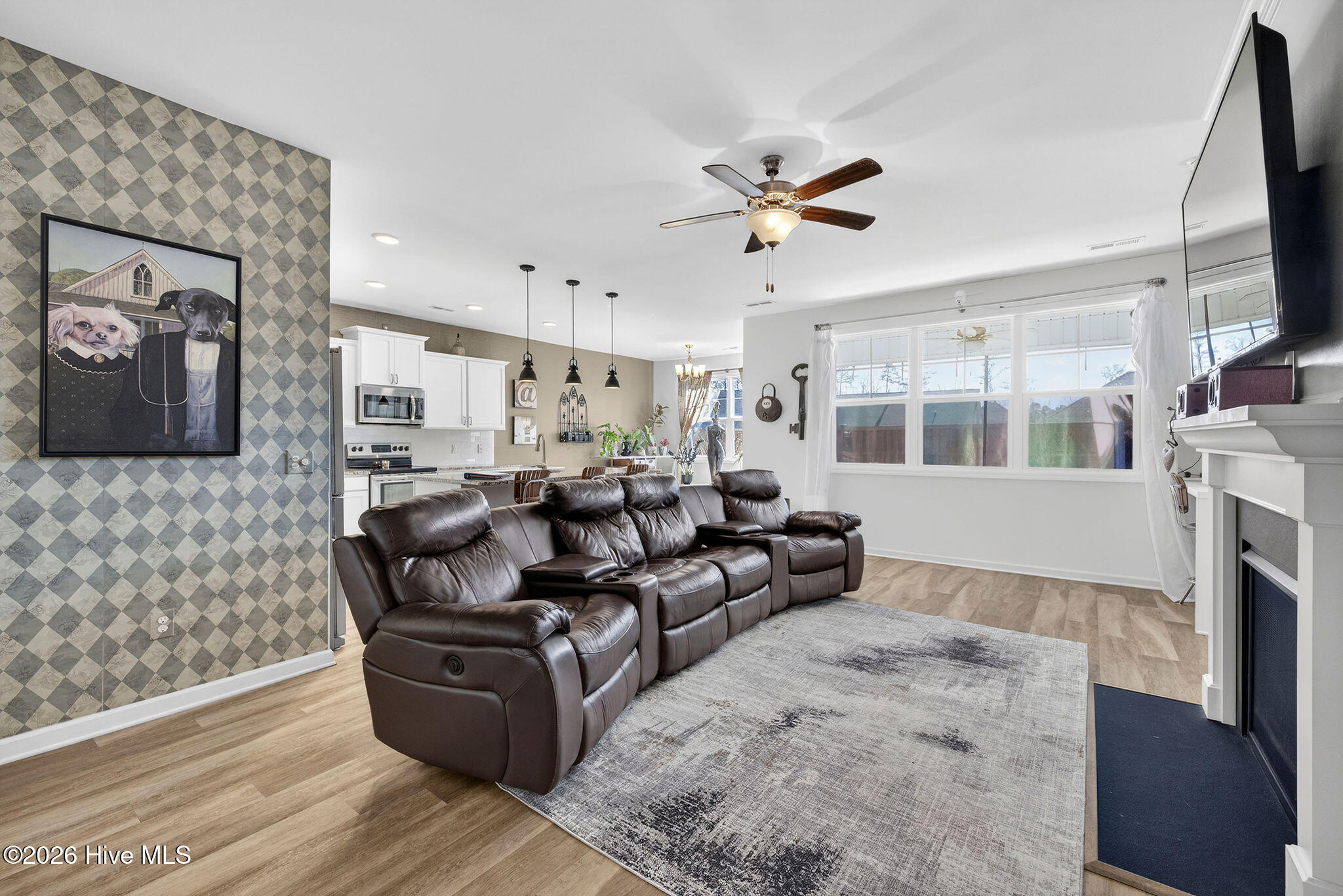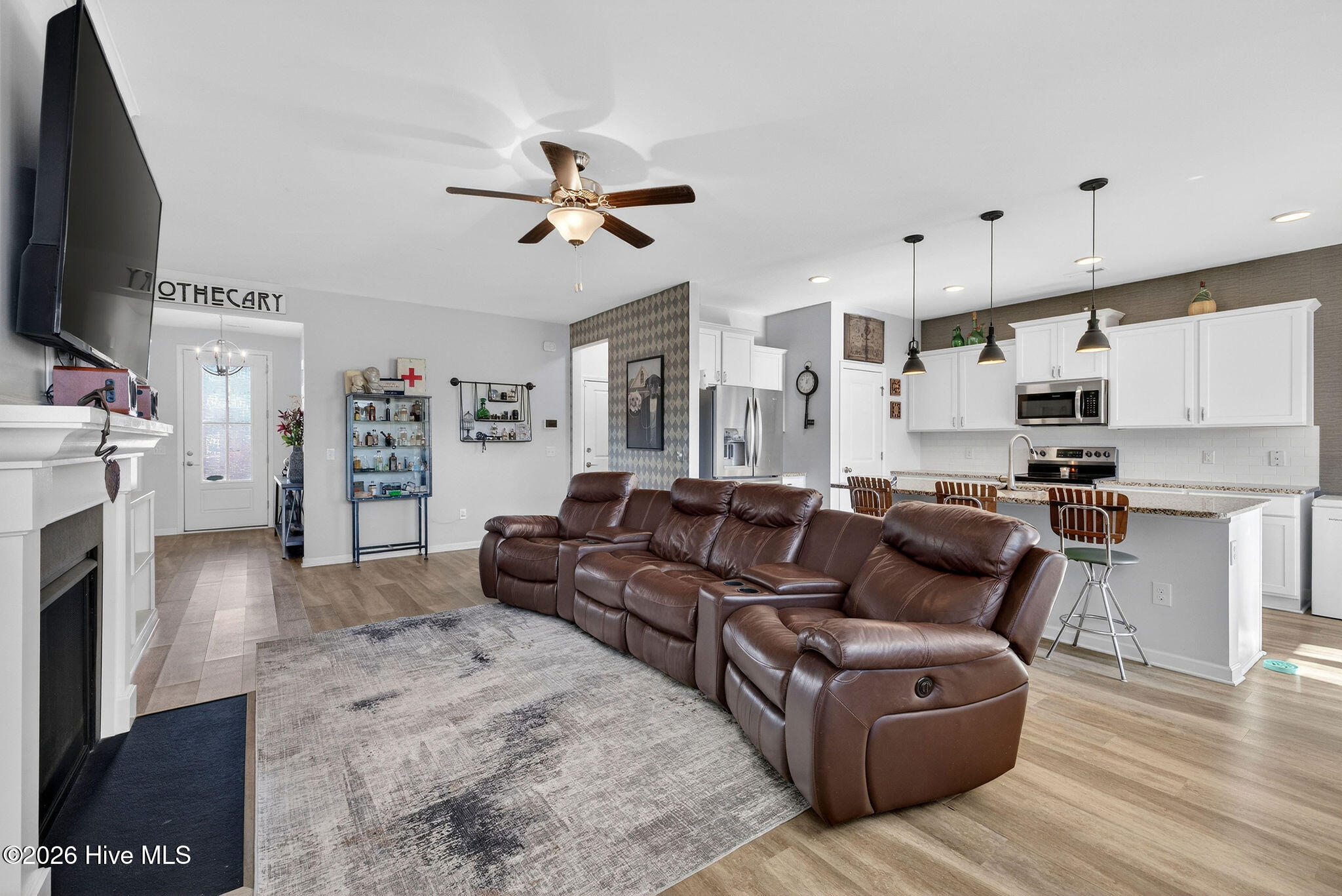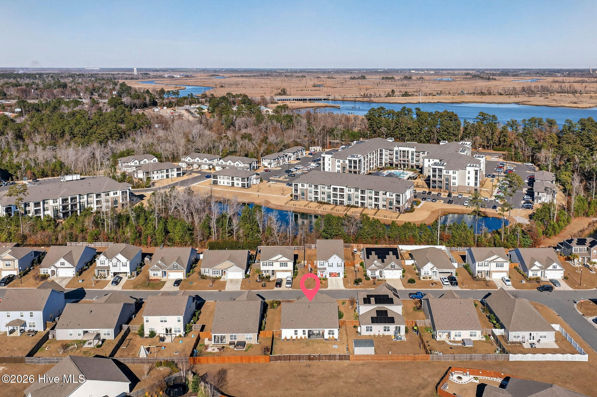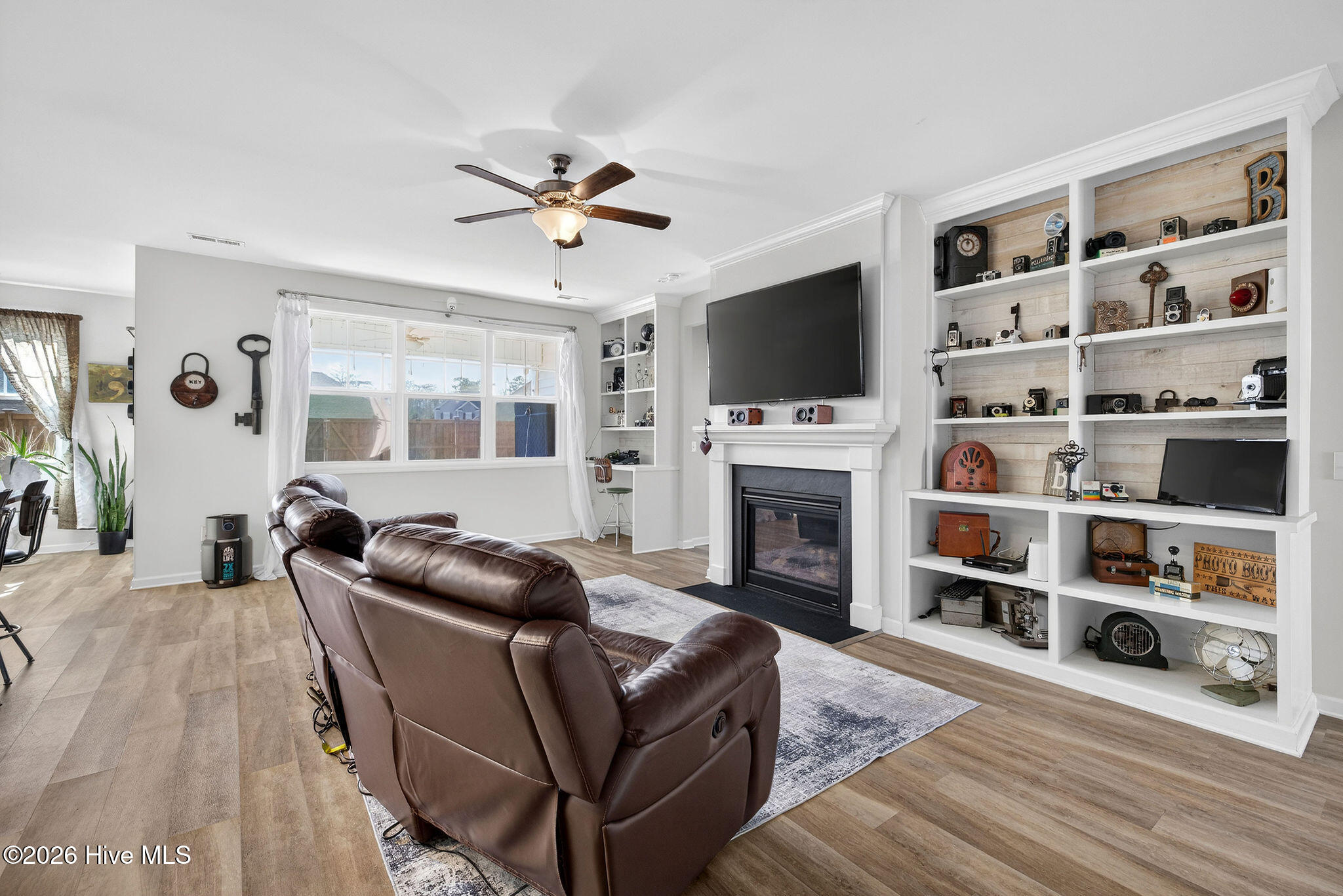 Welcome to your new home, tucked away in one of Leland's sought after communities, Hawkeswater at the River! This beautiful home is all on one level, offering 3 bedrooms and 2 bathrooms, and a flex room. The current owners use the flex room as an office but would also be perfect for a playroom, hobby/craft or reading room! Next you will find the spacious living room with sprawling 9 foot ceilings to be a great gathering space with a fireplace and built in bookshelves. The family cook won't miss a thing because of the home's open concept! The kitchen boasts granite countertops, a ''water drop'' filtration system, pantry, and an island large enough to seat four! The kitchen also has space for a dining table, or perhaps cozy seating to enjoy your morning coffee, overlooking the private yard. With the amount of gorgeous daylight this room receives, any plant enthusiast will be pleased! The primary bedroom is conveniently located off the living room, yet separated from the other bedrooms providing added privacy. The large walk in closet has a stylish sliding barn door. The primary en-suite bath features dual vanities and a spacious walk-in shower. Once you step outside, you'll immediately notice the private, serene fenced backyard. Additionally, just behind the privacy fence is an HOA green space, where you can meet the neighbors! The CPI system will remain, but new owners will need to connect for service. The community has resort style amenities including a sparkling pool, clubhouse, fitness center, and walking trails including a boardwalk leading to a riverfront gazebo. Take advantage of the private community dock with day slips for residents on the Brunswick River. The Belville Riverwalk Park is just a short walk away! You'll enjoy picnic areas, a playground, festivals and gorgeous river views! This community is convenient to the Wilmington Riverwalk, area beaches and so much more! Make your appt to see this home today!