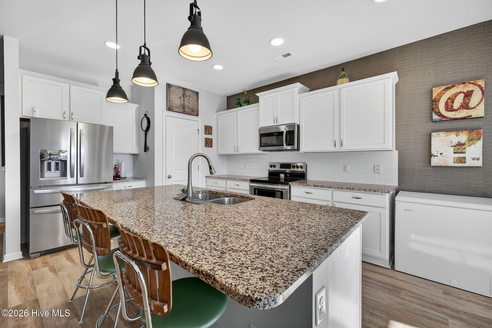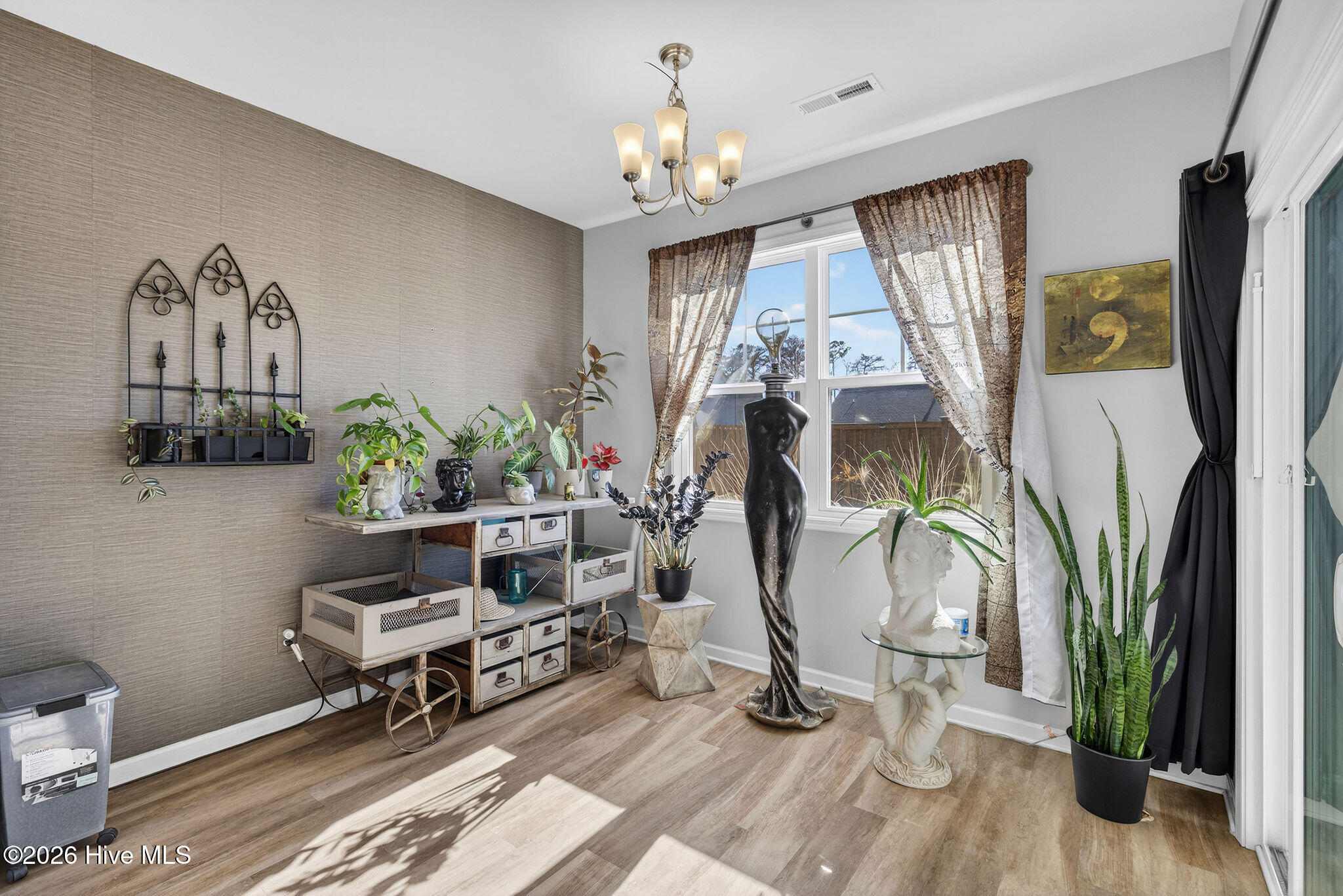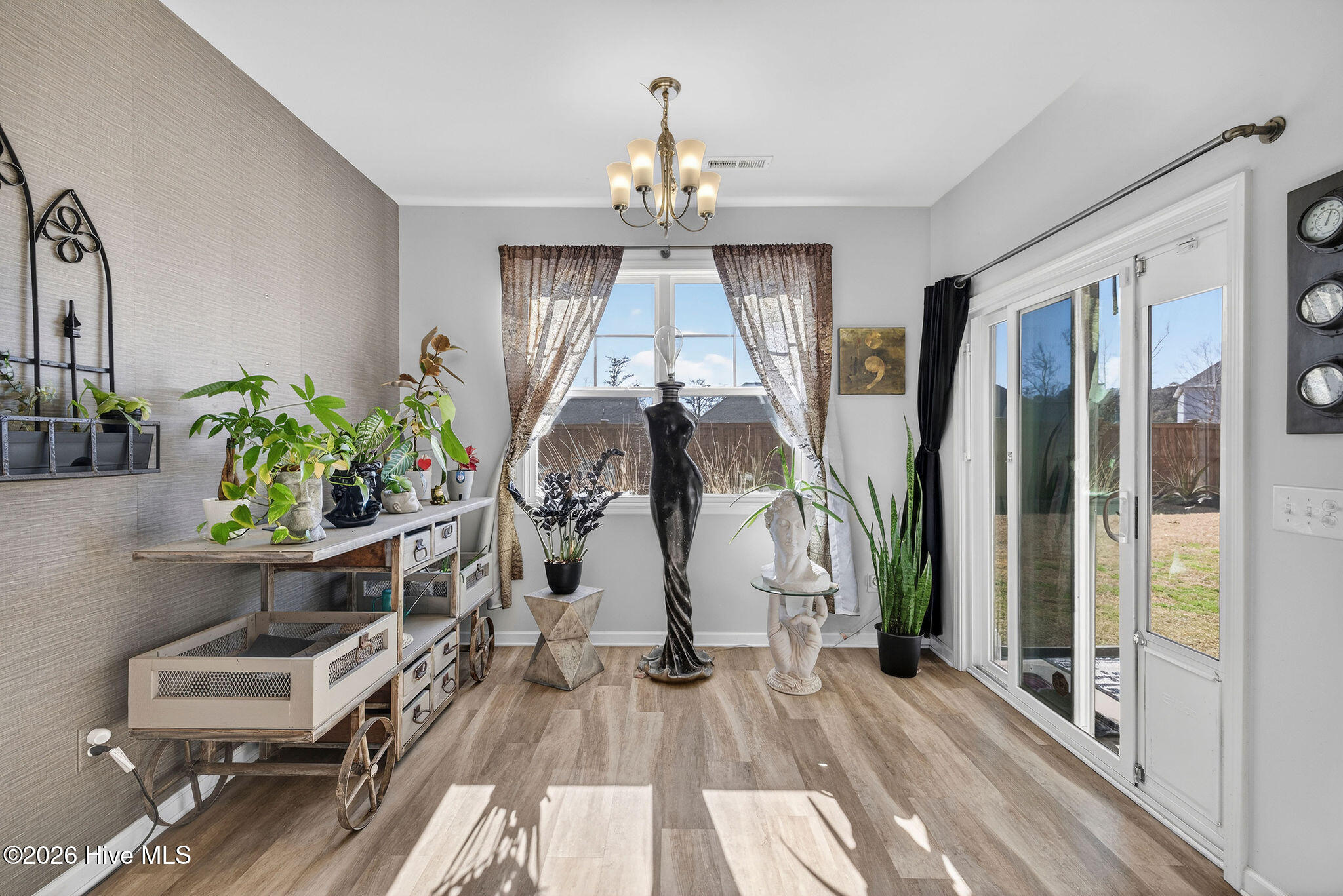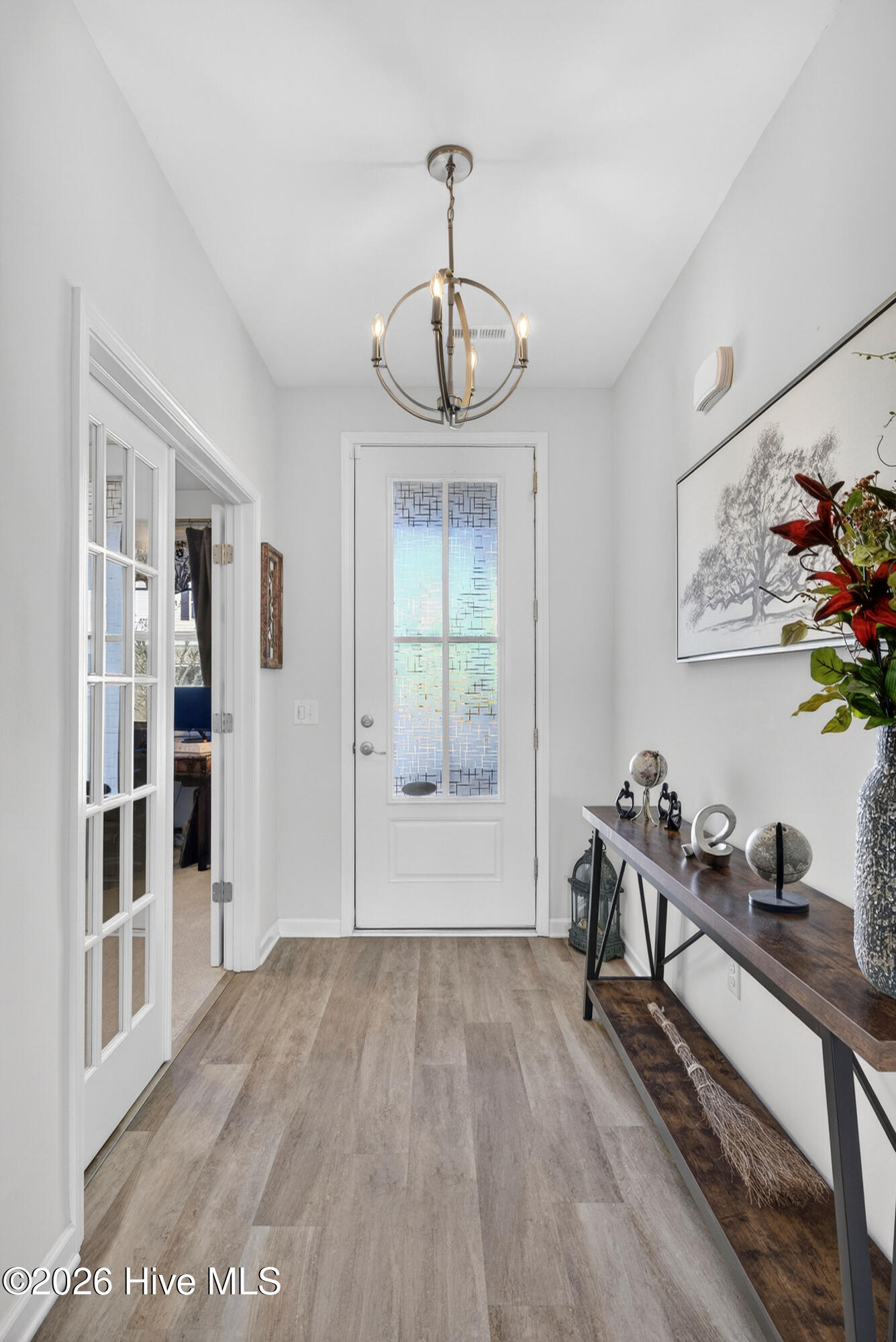 Welcome to your new home, tucked away in one of Leland's sought after communities, Hawkeswater at the River! This beautiful home is all on one level, offering 3 bedrooms and 2 bathrooms, and a flex room. The current owners use the flex room as an office but would also be perfect for a playroom, hobby/craft or reading room! Next you will find the spacious living room with sprawling 9 foot ceilings to be a great gathering space with a fireplace and built in bookshelves. The family cook won't miss a thing because of the home's open concept! The kitchen boasts granite countertops, a ''water drop'' filtration system, pantry, and an island large enough to seat four! The kitchen also has space for a dining table, or perhaps cozy seating to enjoy your morning coffee, overlooking the private yard. With the amount of gorgeous daylight this room receives, any plant enthusiast will be pleased! The primary bedroom is conveniently located off the living room, yet separated from the other bedrooms providing added privacy. The large walk in closet has a stylish sliding barn door. The primary en-suite bath features dual vanities and a spacious walk-in shower. Once you step outside, you'll immediately notice the private, serene fenced backyard. Additionally, just behind the privacy fence is an HOA green space, where you can meet the neighbors! The CPI system will remain, but new owners will need to connect for service. The community has resort style amenities including a sparkling pool, clubhouse, fitness center, and walking trails including a boardwalk leading to a riverfront gazebo. Take advantage of the private community dock with day slips for residents on the Brunswick River. The Belville Riverwalk Park is just a short walk away! You'll enjoy picnic areas, a playground, festivals and gorgeous river views! This community is convenient to the Wilmington Riverwalk, area beaches and so much more! Make your appt to see this home today!