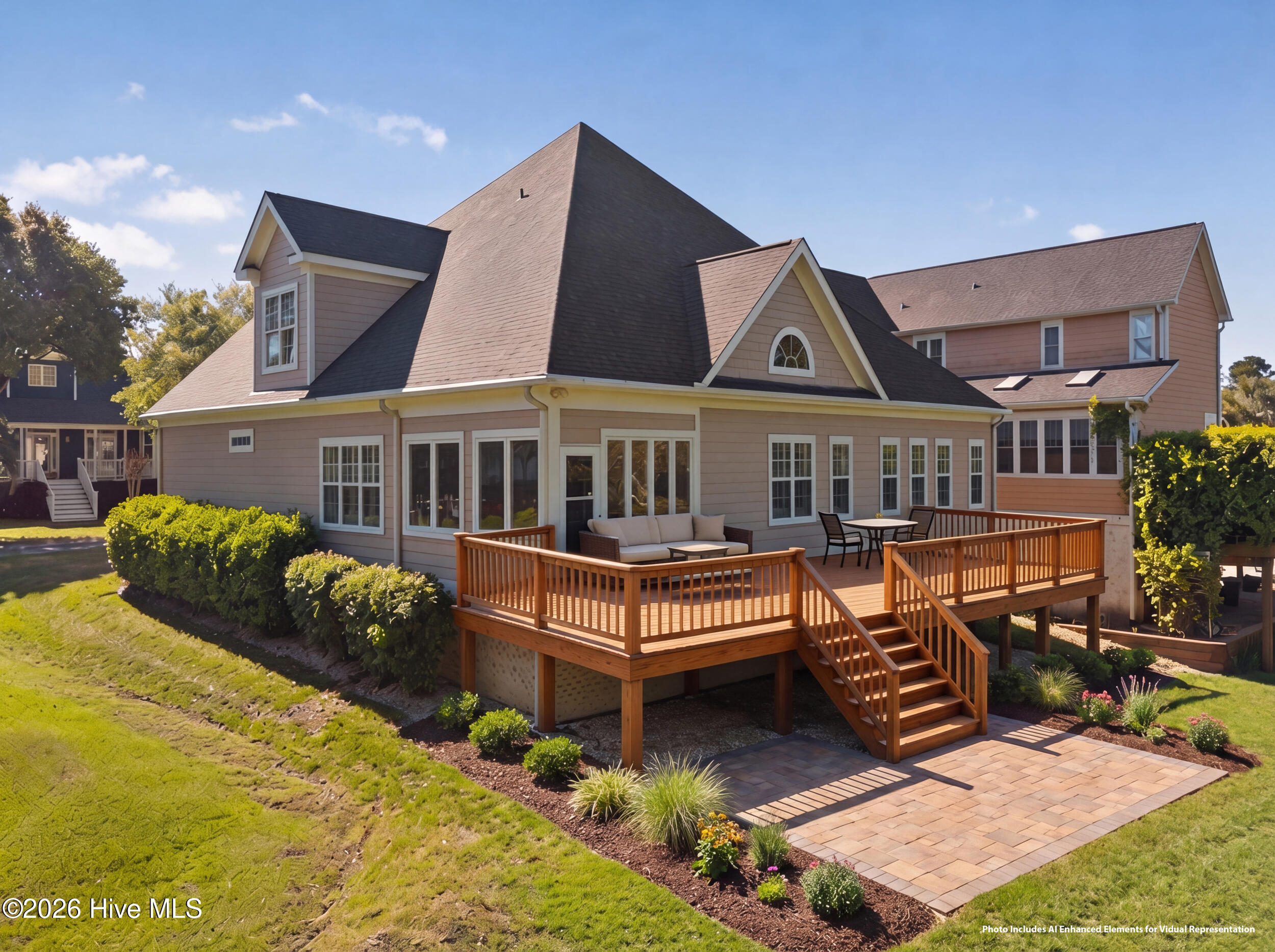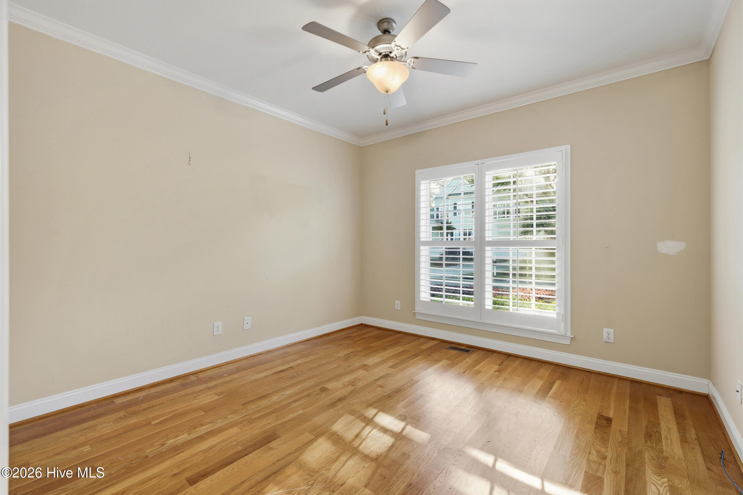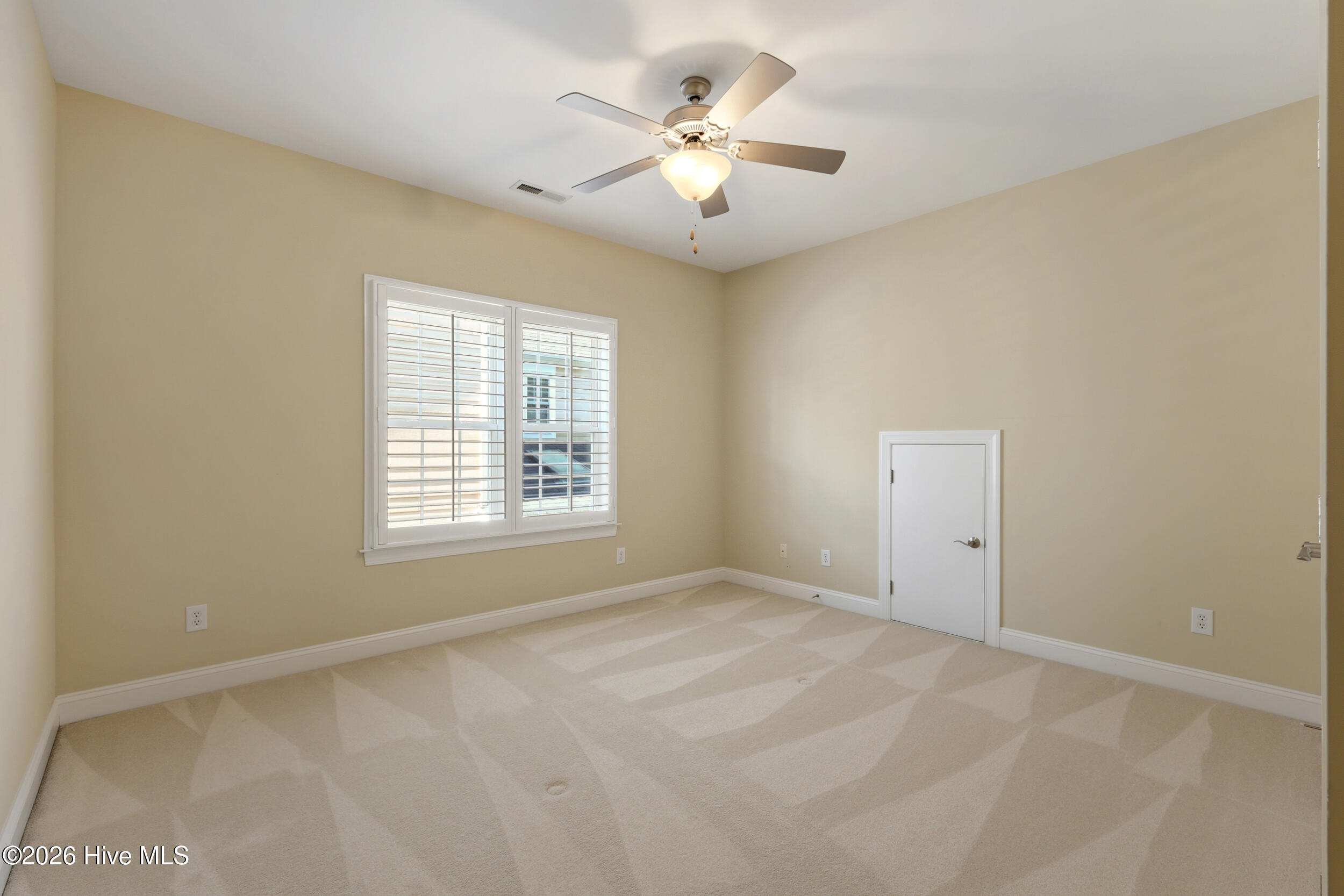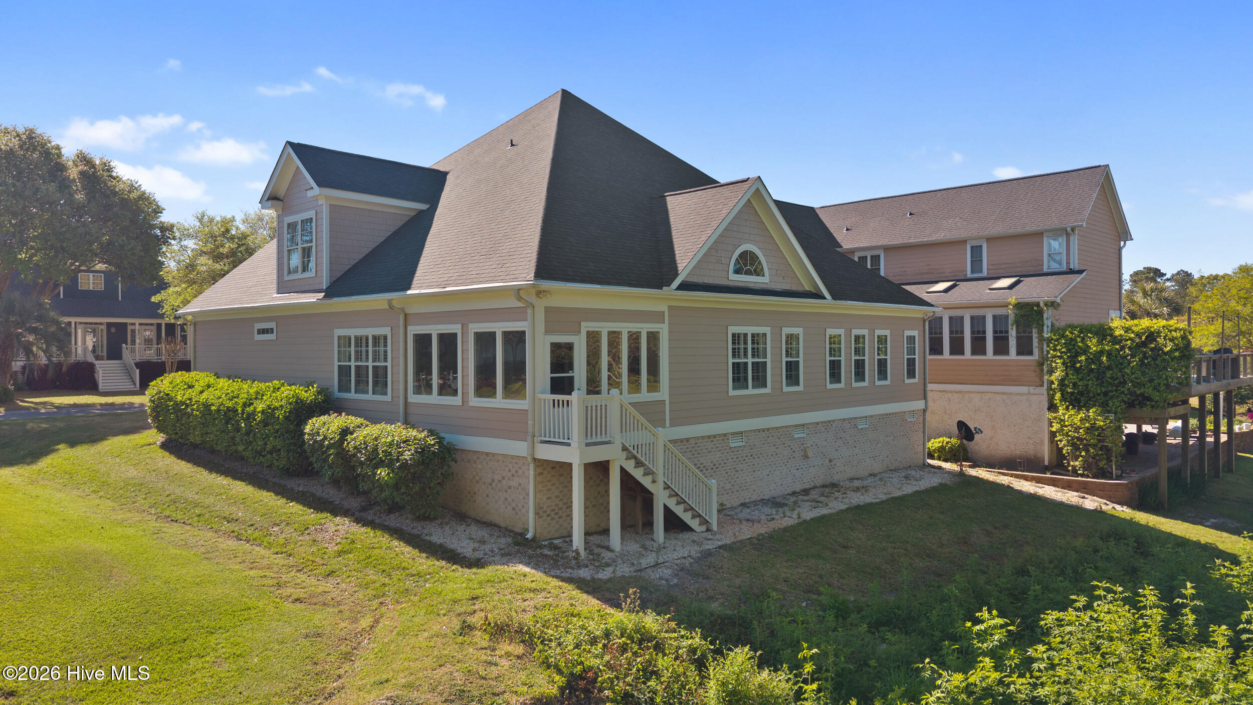 Set within the intimate Purviance Landing community, where just 17 homes share access to the waters of Whiskey Creek, this 4 bedroom, 4 bathroom custom home delivers over 3,000 square feet in a location that's hard to beat; perfectly positioned between Wrightsville Beach and Carolina Beach within a highly desirable school district. From the moment you step inside, the home feels warm and established, with hardwood flooring, plantation shutters, and thoughtful trim work throughout. The entry is flanked by a formal dining space with detailed wainscoting, while a main-level bedroom and full bathroom offer flexibility for guests or extended stays. At the heart of the home, the kitchen features a center island, walk-in pantry, range cooktop, and built-in double ovens. It flows naturally into the breakfast area and the main living room, with vaulted ceilings and a gas fireplace. Just beyond, a sunroom lined with windows brings in natural light and overlooks the backyard. The primary suite is tucked on the main level and offers trey ceilings, a large walk-in closet, and an ensuite bathroom complete with dual vanities, a soaking tub, and a tiled walk-in shower. Upstairs, the layout continues to impress with a loft-style landing, a bedroom with an ensuite bathroom, an additional guest room, and a generously sized bonus space that can easily adapt to your needs. One of the most exciting aspects of this property lies out back. Much of the yard remains untouched, giving you the freedom to create something truly special. The setting is ideal for a future wooden deck, an addition that would completely transform the outdoor living experience, with inspiration images already provided in the listing. As part of Purviance Landing, residents enjoy a private day dock on Whiskey Creek, perfect for launching a kayak, paddleboarding, or ending the day with a sunset over the water. Clean, well cared for, and completely move-in ready, this home offers a solid foundation with the chance to take it even further.
