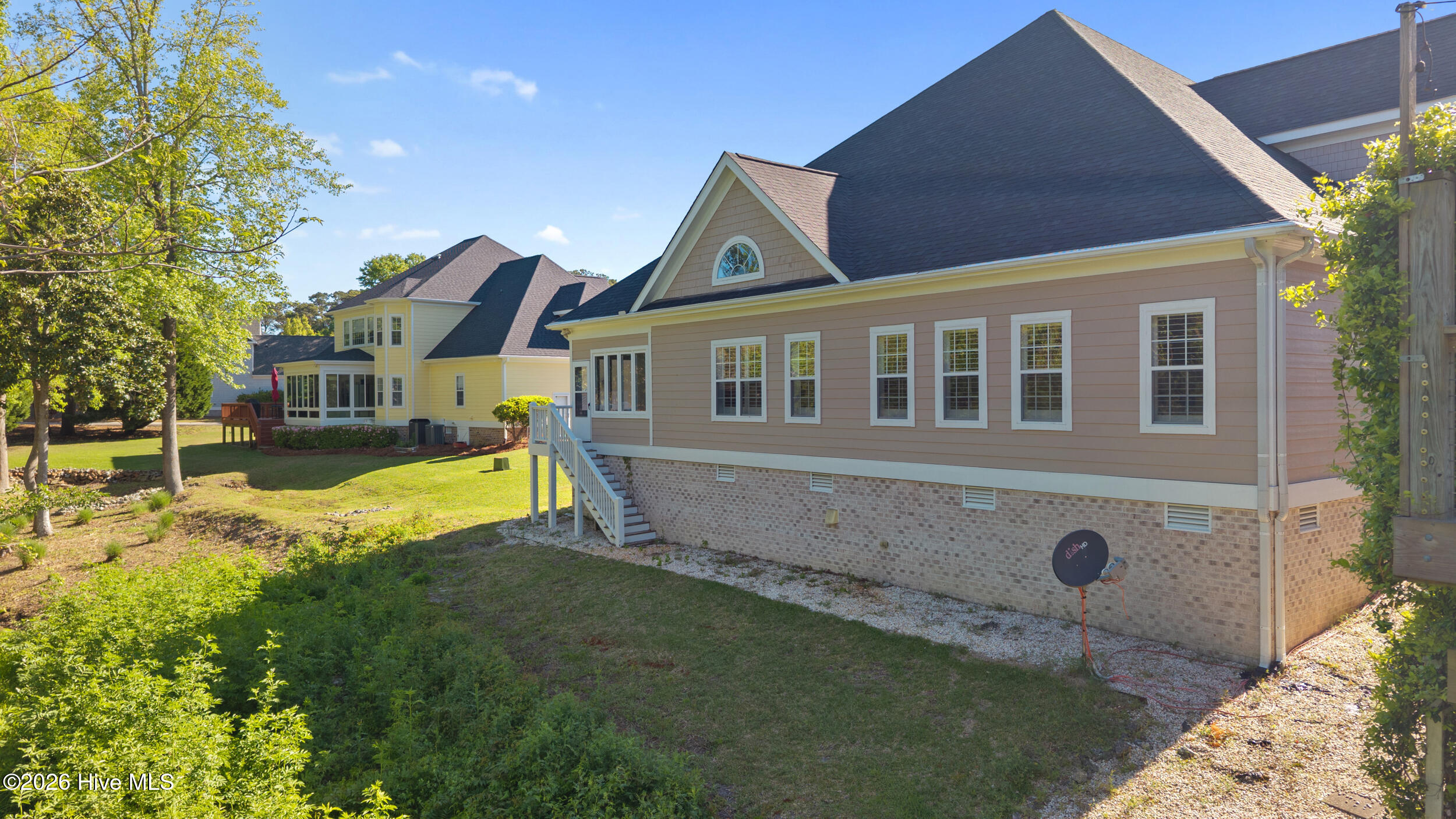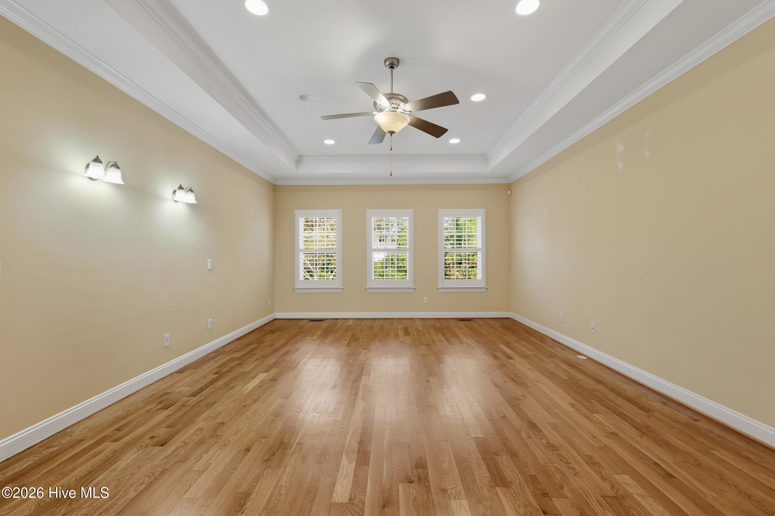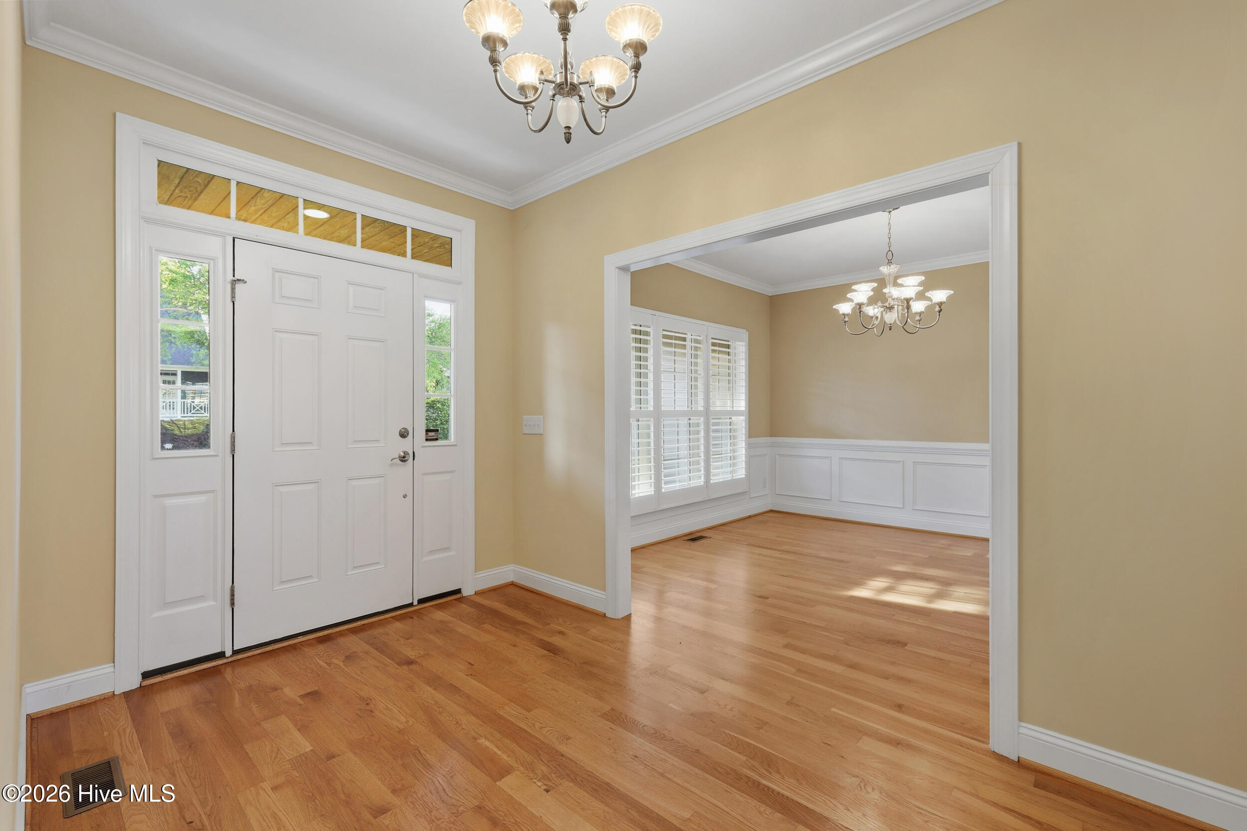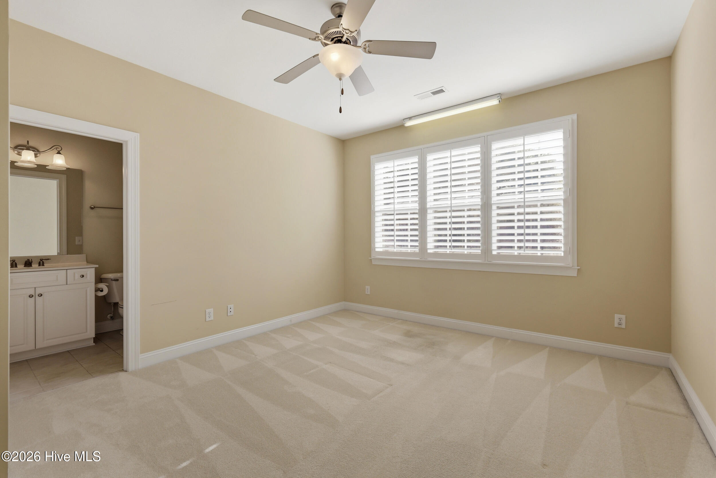 Set within the intimate Purviance Landing community, where just 17 homes share access to the waters of Whiskey Creek, this 4 bedroom, 4 bathroom custom home delivers over 3,000 square feet in a location that's hard to beat; perfectly positioned between Wrightsville Beach and Carolina Beach within a highly desirable school district. From the moment you step inside, the home feels warm and established, with hardwood flooring, plantation shutters, and thoughtful trim work throughout. The entry is flanked by a formal dining space with detailed wainscoting, while a main-level bedroom and full bathroom offer flexibility for guests or extended stays. At the heart of the home, the kitchen features a center island, walk-in pantry, range cooktop, and built-in double ovens. It flows naturally into the breakfast area and the main living room, with vaulted ceilings and a gas fireplace. Just beyond, a sunroom lined with windows brings in natural light and overlooks the backyard. The primary suite is tucked on the main level and offers trey ceilings, a large walk-in closet, and an ensuite bathroom complete with dual vanities, a soaking tub, and a tiled walk-in shower. Upstairs, the layout continues to impress with a loft-style landing, a bedroom with an ensuite bathroom, an additional guest room, and a generously sized bonus space that can easily adapt to your needs. One of the most exciting aspects of this property lies out back. Much of the yard remains untouched, giving you the freedom to create something truly special. The setting is ideal for a future wooden deck, an addition that would completely transform the outdoor living experience, with inspiration images already provided in the listing. As part of Purviance Landing, residents enjoy a private day dock on Whiskey Creek, perfect for launching a kayak, paddleboarding, or ending the day with a sunset over the water. Clean, well cared for, and completely move-in ready, this home offers a solid foundation with the chance to take it even further.
