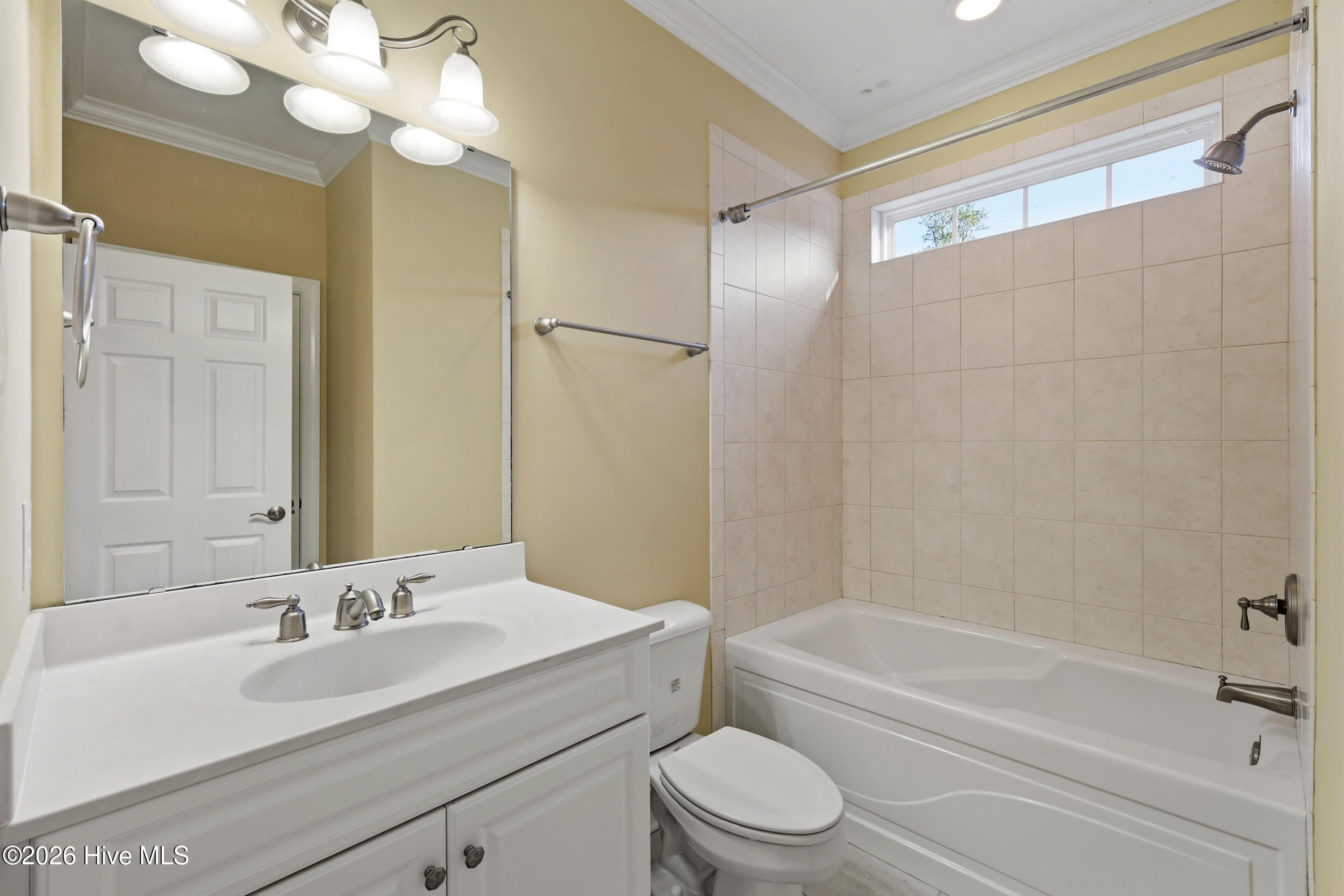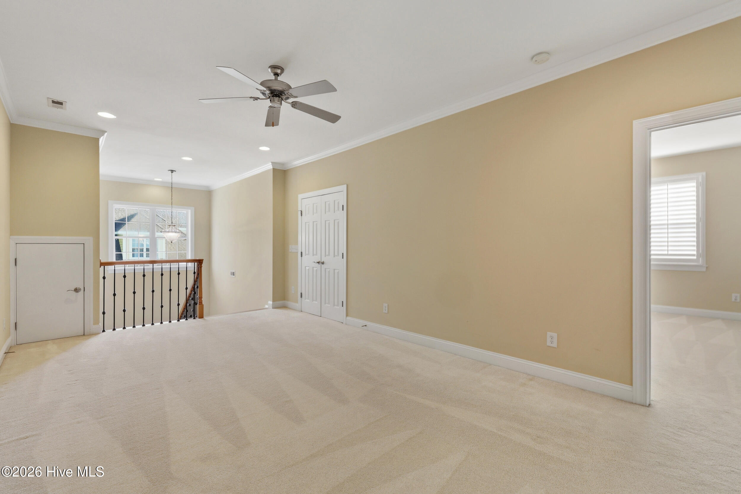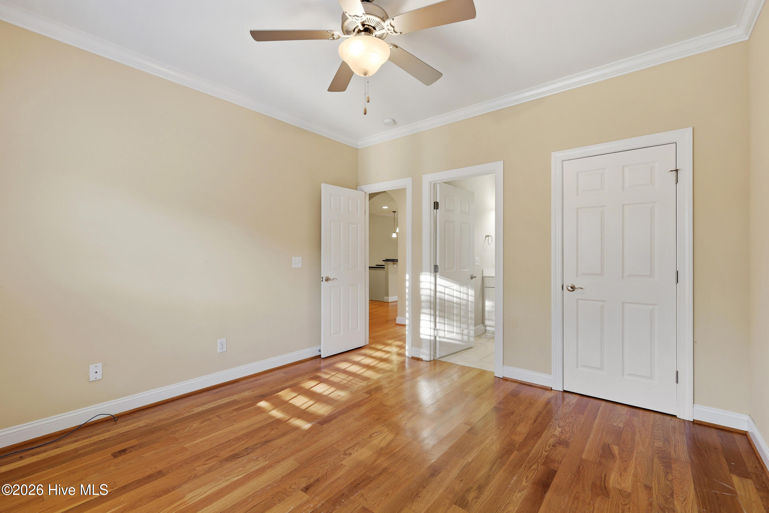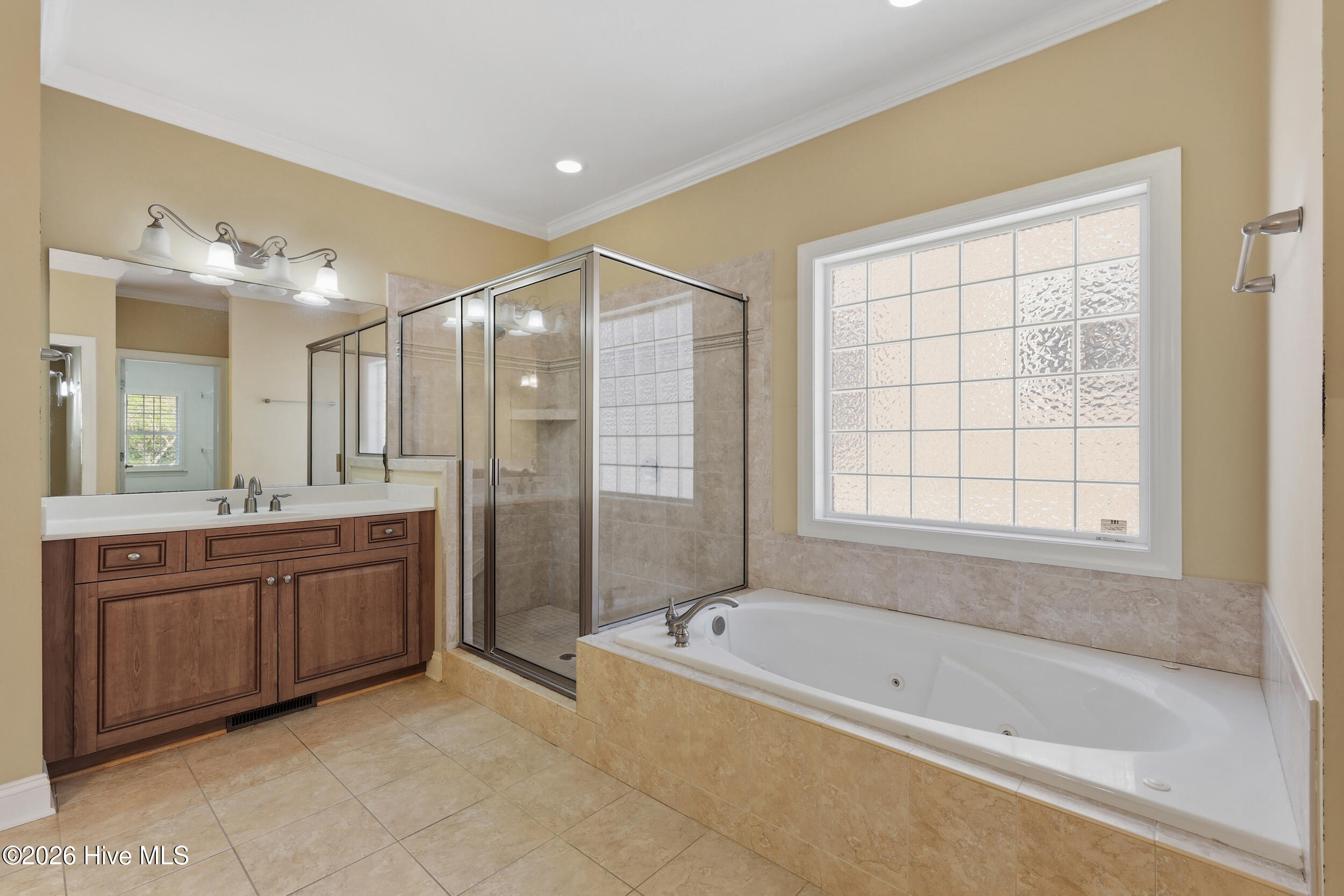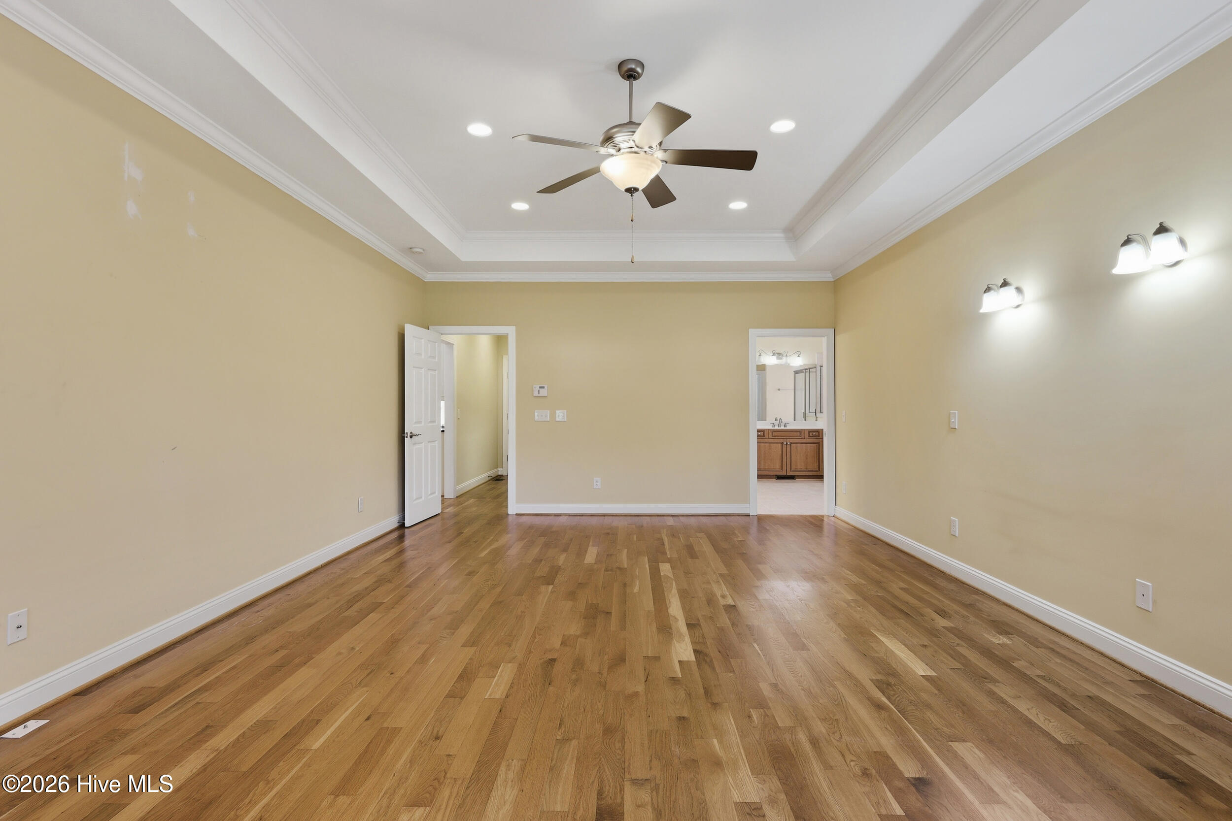 Set within the intimate Purviance Landing community, where just 17 homes share access to the waters of Whiskey Creek, this 4 bedroom, 4 bathroom custom home delivers over 3,000 square feet in a location that's hard to beat; perfectly positioned between Wrightsville Beach and Carolina Beach within a highly desirable school district. From the moment you step inside, the home feels warm and established, with hardwood flooring, plantation shutters, and thoughtful trim work throughout. The entry is flanked by a formal dining space with detailed wainscoting, while a main-level bedroom and full bathroom offer flexibility for guests or extended stays. At the heart of the home, the kitchen features a center island, walk-in pantry, range cooktop, and built-in double ovens. It flows naturally into the breakfast area and the main living room, with vaulted ceilings and a gas fireplace. Just beyond, a sunroom lined with windows brings in natural light and overlooks the backyard. The primary suite is tucked on the main level and offers trey ceilings, a large walk-in closet, and an ensuite bathroom complete with dual vanities, a soaking tub, and a tiled walk-in shower. Upstairs, the layout continues to impress with a loft-style landing, a bedroom with an ensuite bathroom, an additional guest room, and a generously sized bonus space that can easily adapt to your needs. One of the most exciting aspects of this property lies out back. Much of the yard remains untouched, giving you the freedom to create something truly special. The setting is ideal for a future wooden deck, an addition that would completely transform the outdoor living experience, with inspiration images already provided in the listing. As part of Purviance Landing, residents enjoy a private day dock on Whiskey Creek, perfect for launching a kayak, paddleboarding, or ending the day with a sunset over the water. Clean, well cared for, and completely move-in ready, this home offers a solid foundation with the chance to take it even further.