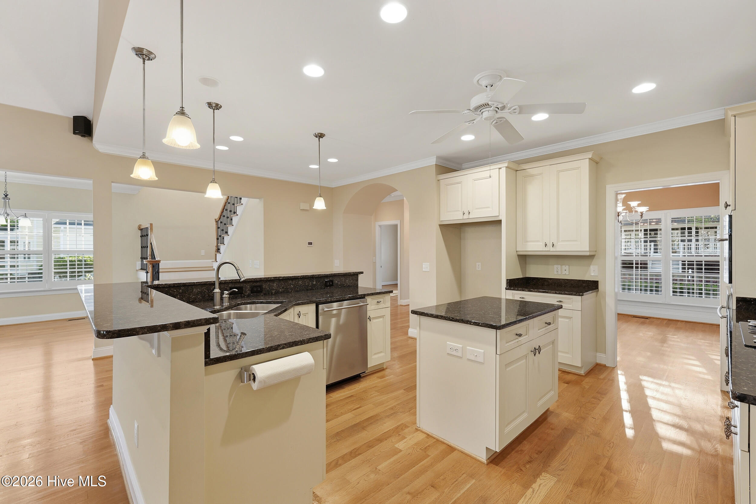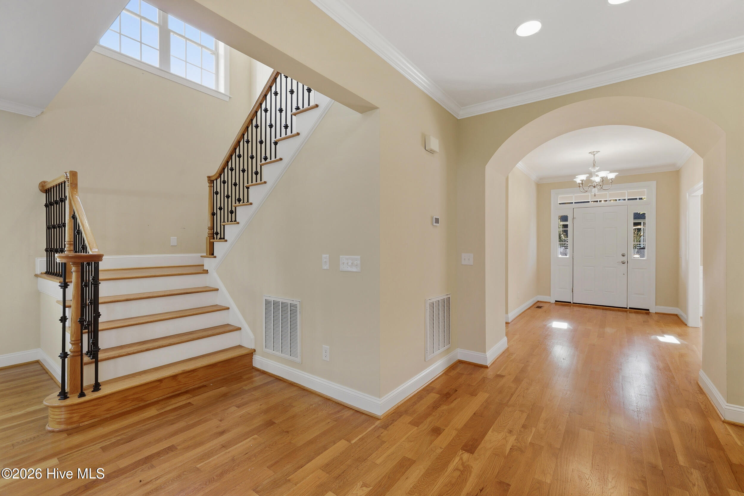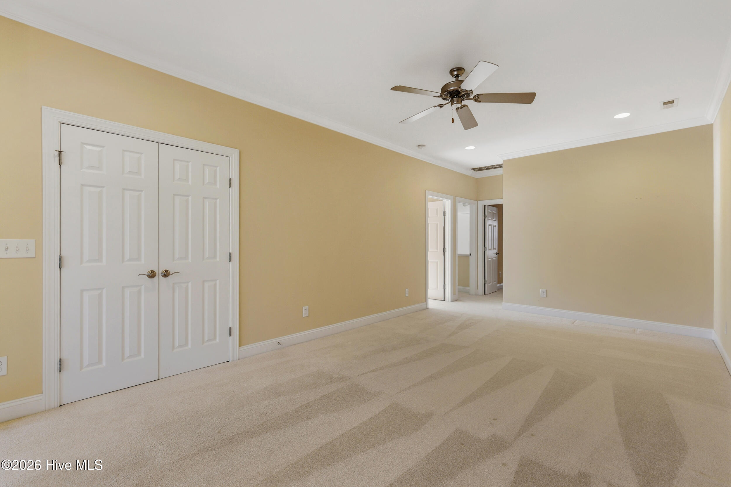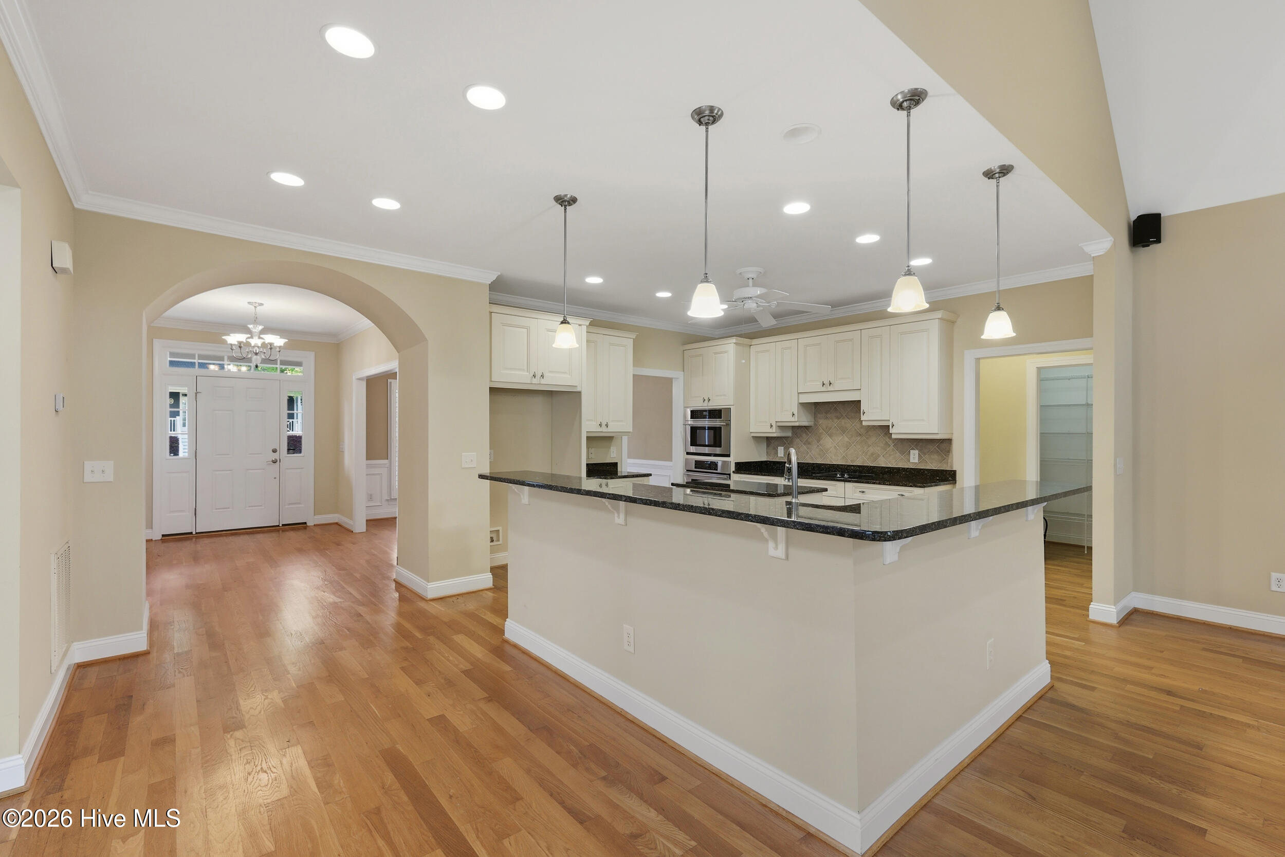 Set within the intimate Purviance Landing community, where just 17 homes share access to the waters of Whiskey Creek, this 4 bedroom, 4 bathroom custom home delivers over 3,000 square feet in a location that's hard to beat; perfectly positioned between Wrightsville Beach and Carolina Beach within a highly desirable school district. From the moment you step inside, the home feels warm and established, with hardwood flooring, plantation shutters, and thoughtful trim work throughout. The entry is flanked by a formal dining space with detailed wainscoting, while a main-level bedroom and full bathroom offer flexibility for guests or extended stays. At the heart of the home, the kitchen features a center island, walk-in pantry, range cooktop, and built-in double ovens. It flows naturally into the breakfast area and the main living room, with vaulted ceilings and a gas fireplace. Just beyond, a sunroom lined with windows brings in natural light and overlooks the backyard. The primary suite is tucked on the main level and offers trey ceilings, a large walk-in closet, and an ensuite bathroom complete with dual vanities, a soaking tub, and a tiled walk-in shower. Upstairs, the layout continues to impress with a loft-style landing, a bedroom with an ensuite bathroom, an additional guest room, and a generously sized bonus space that can easily adapt to your needs. One of the most exciting aspects of this property lies out back. Much of the yard remains untouched, giving you the freedom to create something truly special. The setting is ideal for a future wooden deck, an addition that would completely transform the outdoor living experience, with inspiration images already provided in the listing. As part of Purviance Landing, residents enjoy a private day dock on Whiskey Creek, perfect for launching a kayak, paddleboarding, or ending the day with a sunset over the water. Clean, well cared for, and completely move-in ready, this home offers a solid foundation with the chance to take it even further.