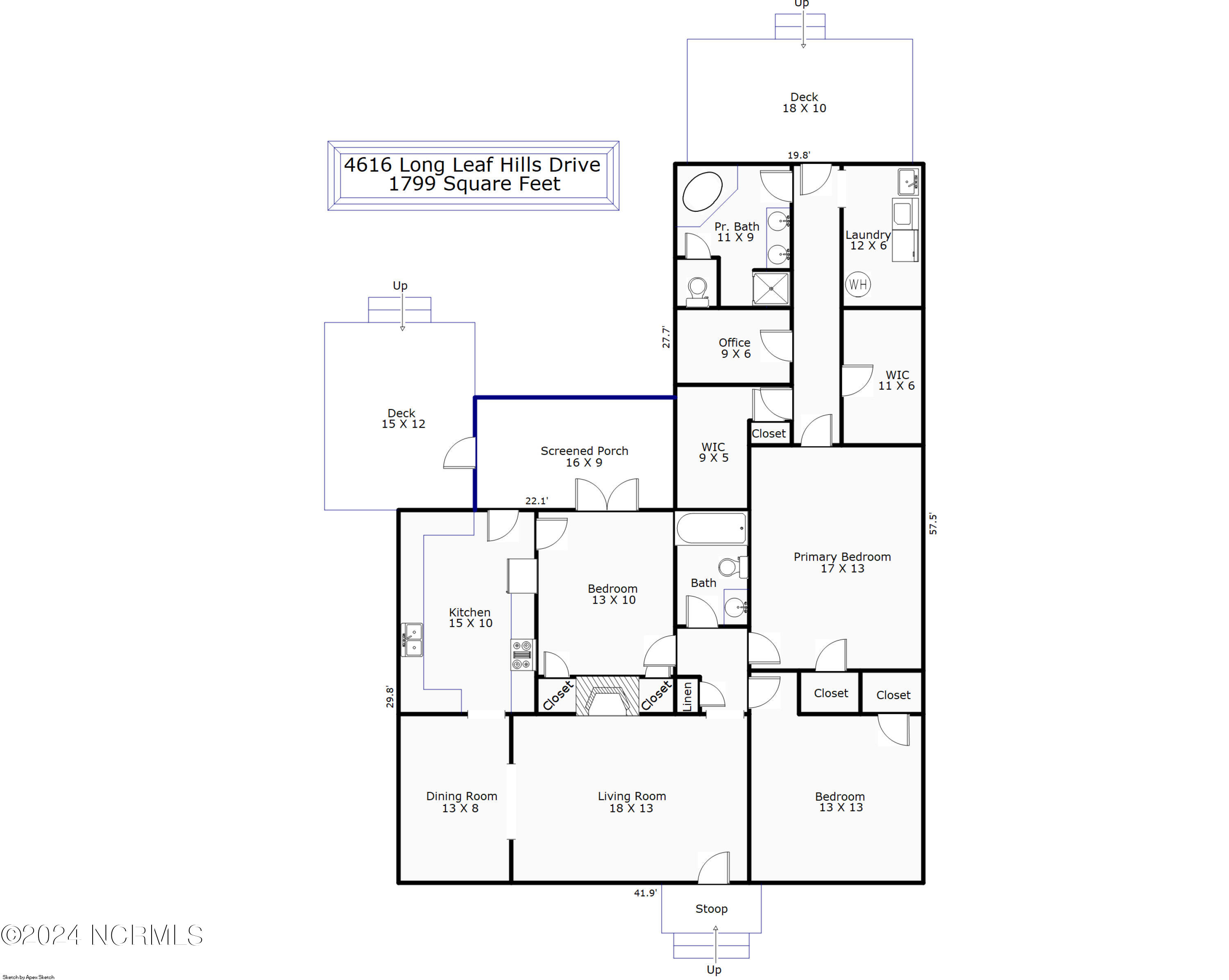 **BEST AND FINAL DUE BY MONDAY MAY 27TH AT 5:00 PM*** This is the home you've been waiting for! Charming 3-Bedroom Home in Long Leaf Hills where the neighborhood is lined with mossy oaks and blooming azaleas. This home is just shy of 1,800 SF and it features a master wing with an office, laundry room with shelving, two walk-in closets, and a spacious primary bath with a soaking tub. It doesn't stop there.. enjoy direct access to a relaxing deck from the master wing too! The kitchen and guest bedroom led to a screened-in patio and an additional deck, perfect for outdoor living. Situated on a large lot, the home is located across from a pathway leading to Long Leaf Park where you can enjoy many amenities without living in an HOA! Long Leaf Park has walking trails, sport fields, dog park, playgrounds, covered picnic areas, and splash pad.