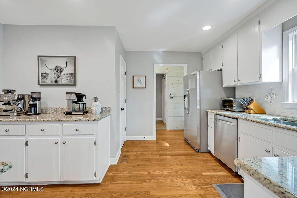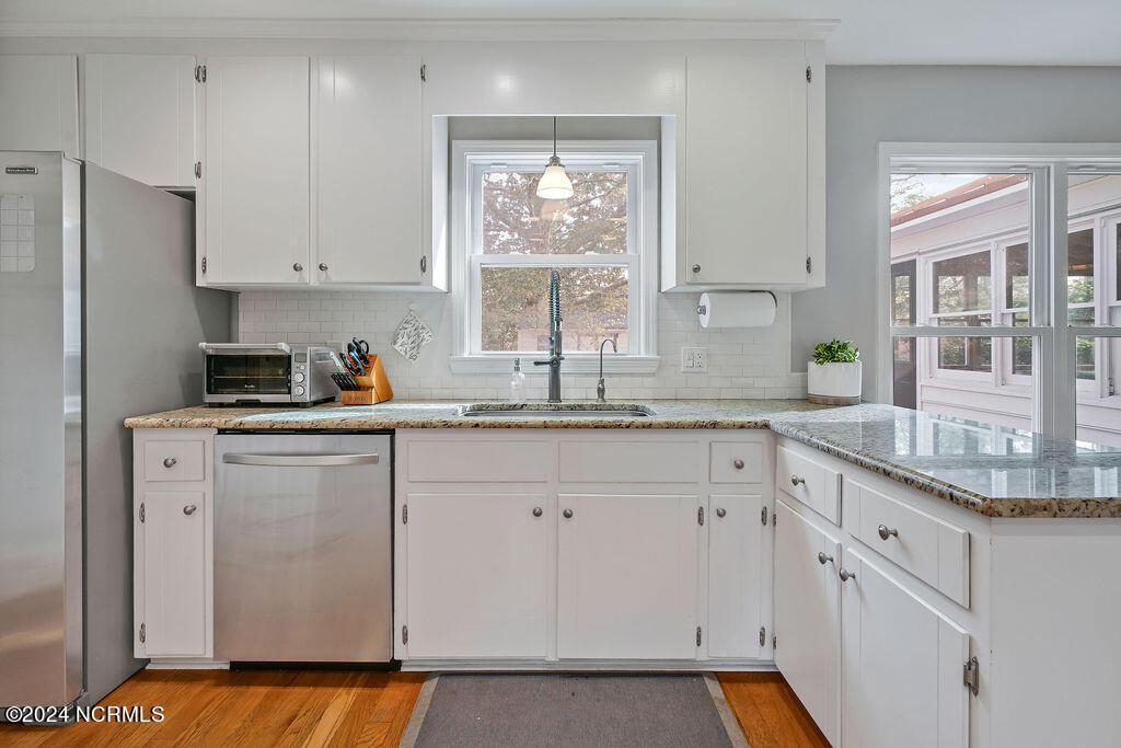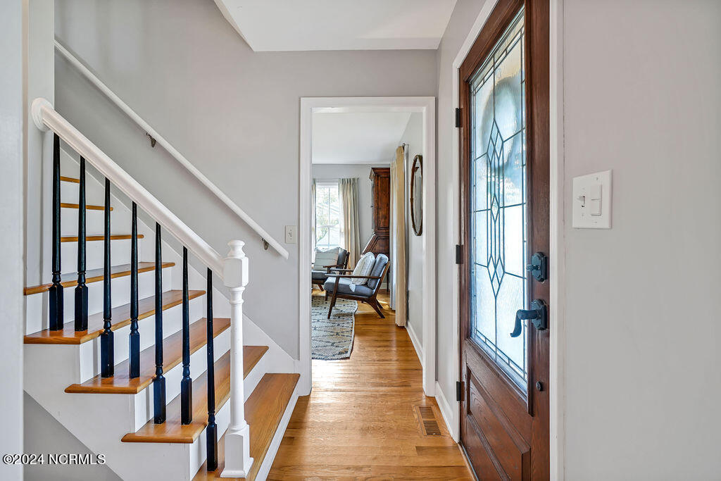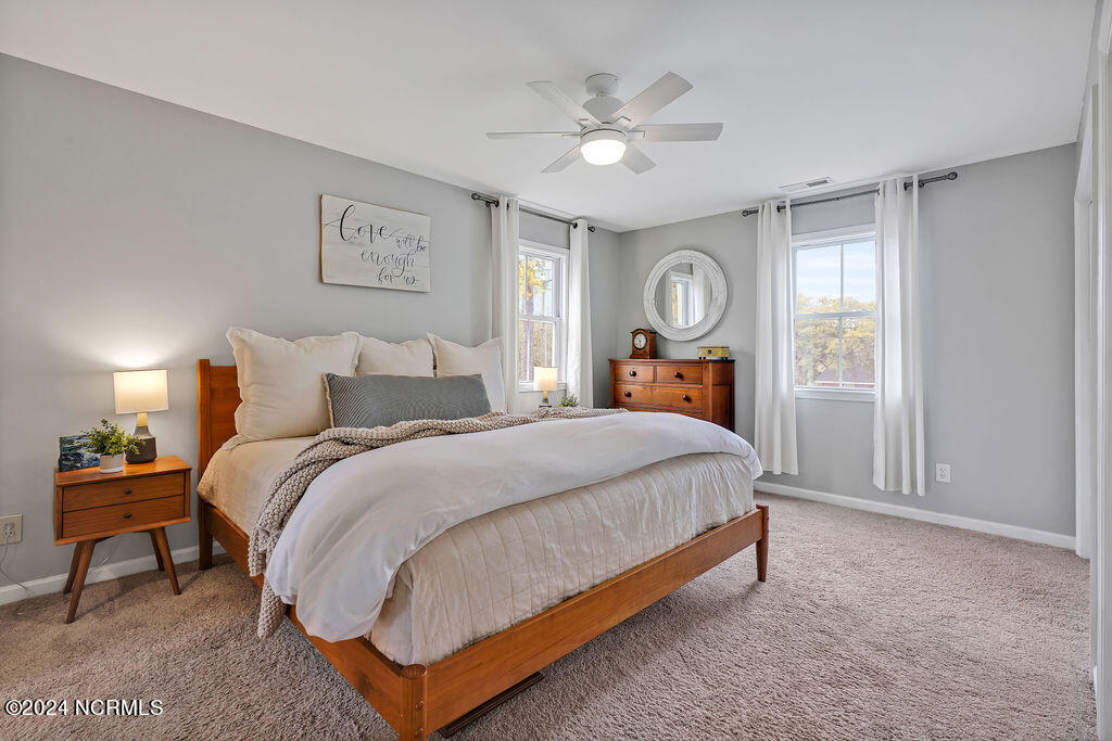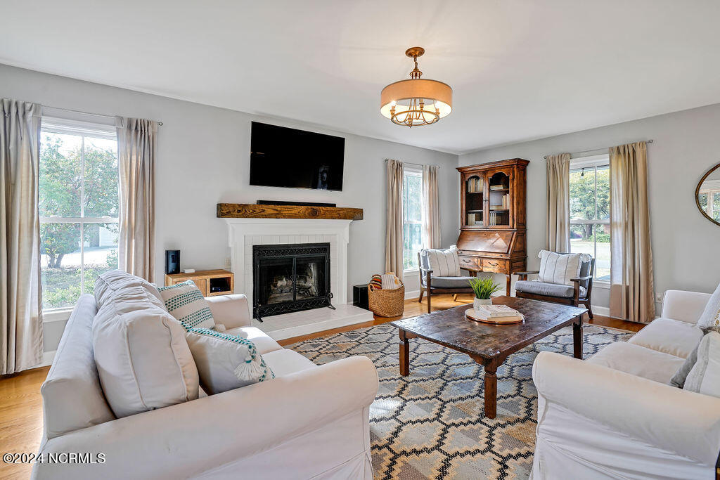 A picturesque home in an ideal corner lot only 15 minutes from Wrightsville Beach. The semi-open floor plan offers a great deal of natural lighting throughout. The kitchen showcases Granite counter tops, an Induction Oven and a walk in Pantry with shelving. Adjacent is a formal dining room as well as a breakfast eating area. Primary Bedroom includes two closets, and the connected Primary tiled Bathroom has a Double Vanity. The sunroom is a perfect spot to watch the sunsrise over the Dogwood and Oak trees in the backyard. The landscaped yard also houses a wired workshop, and a patio area with a firepit. The charming home also has a wood burning Fireplace, new siding and windows, reverse osmosis and an irrigation system on the well.