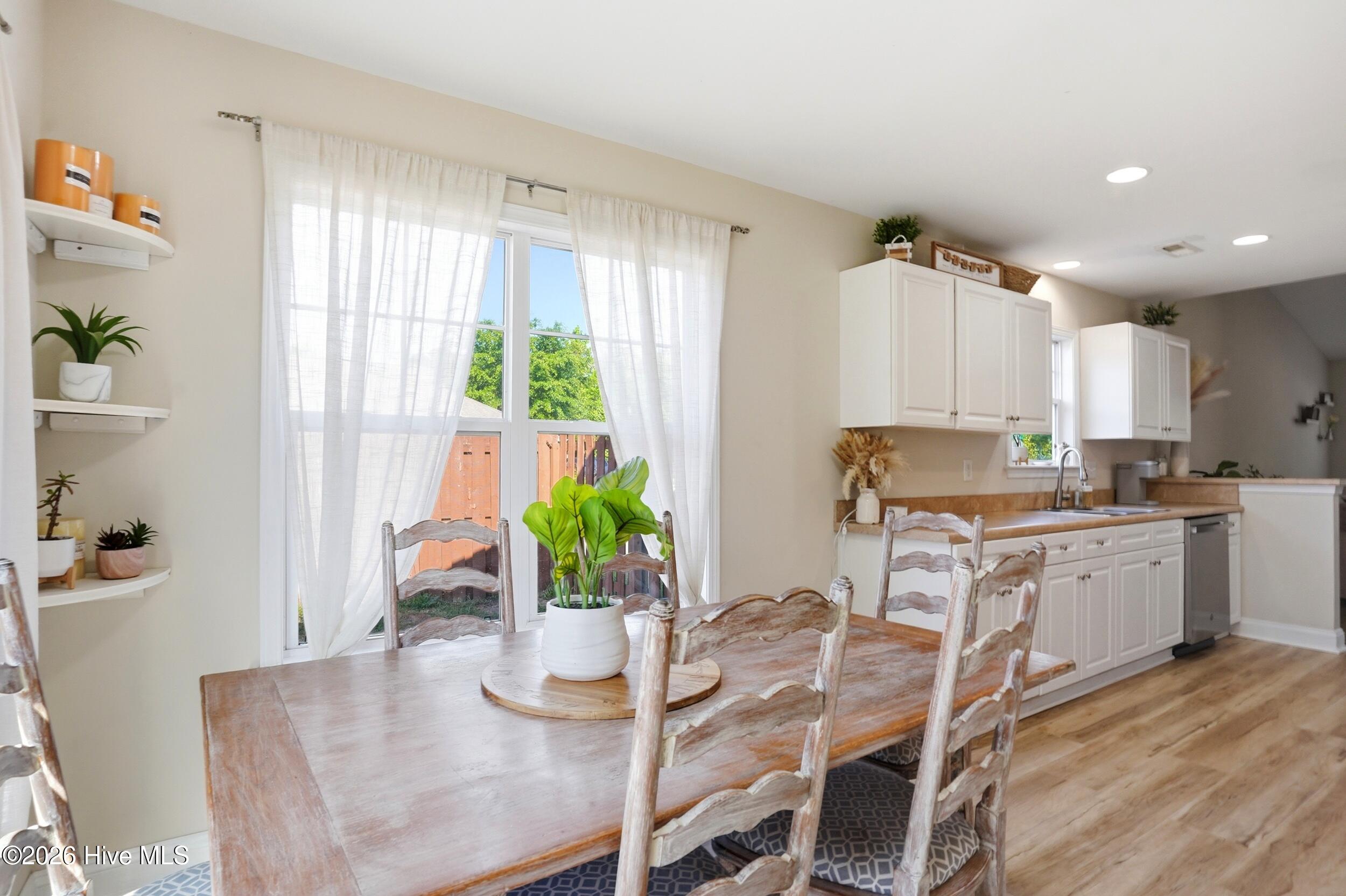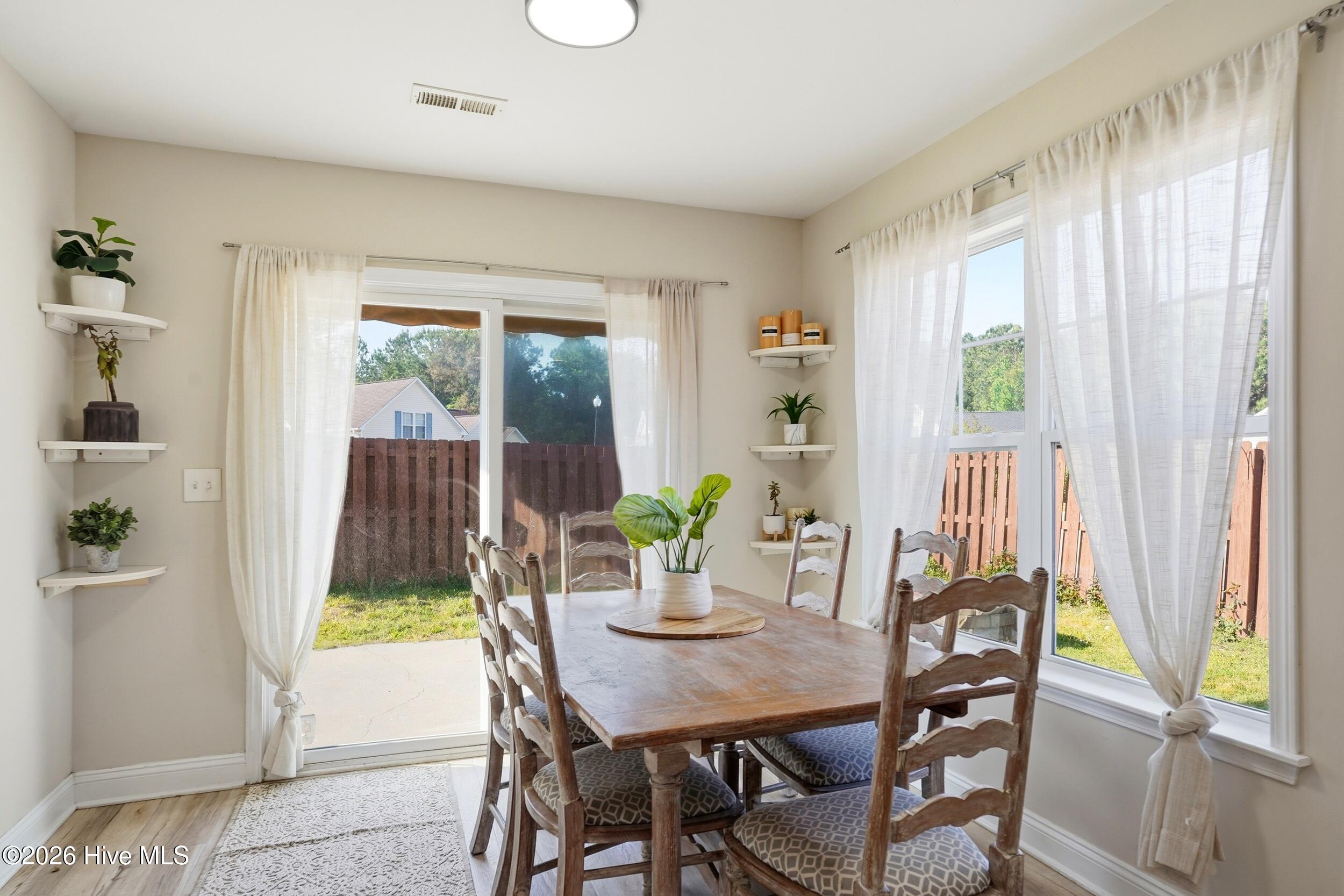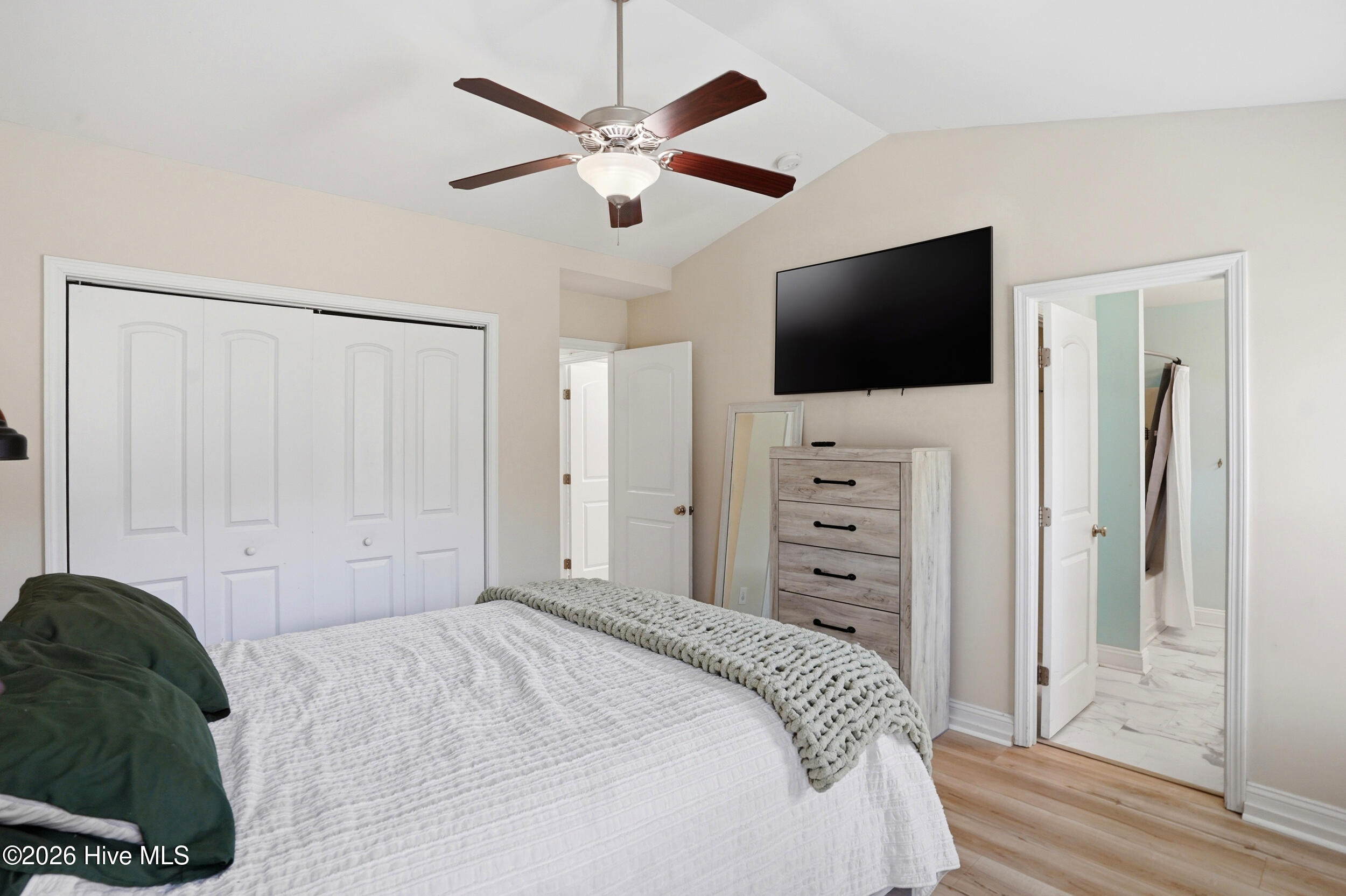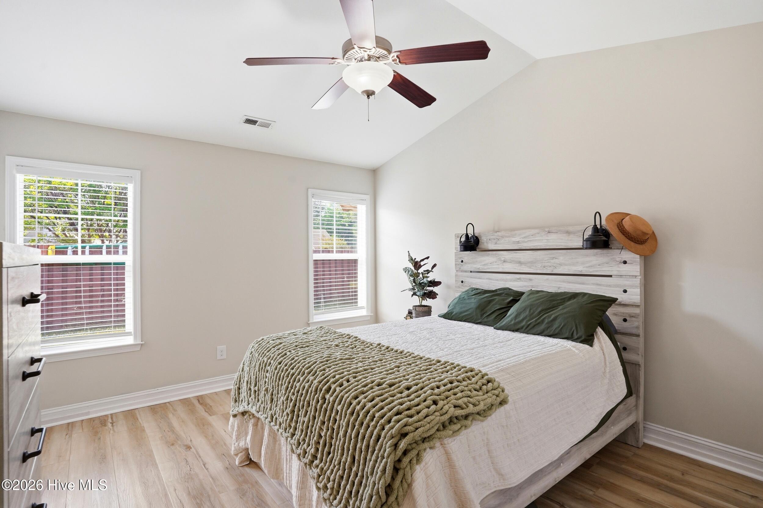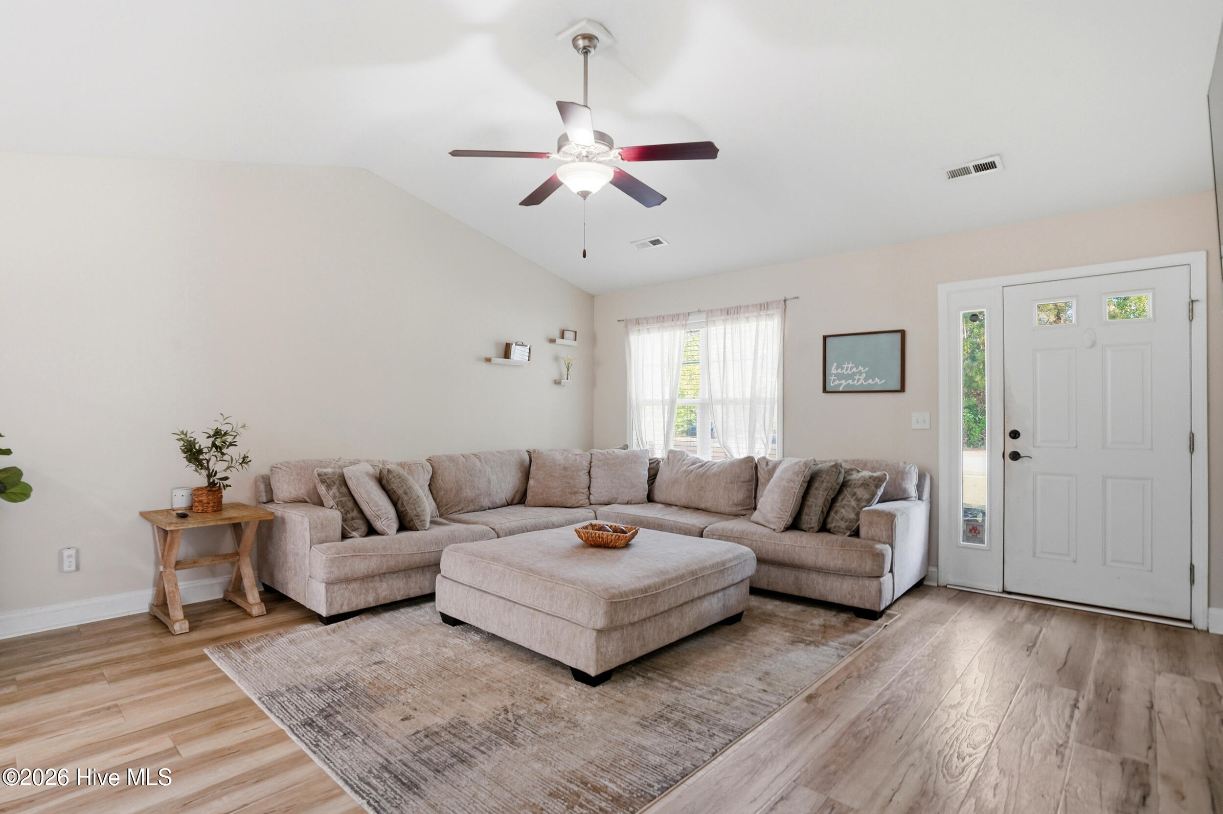 This 3 bedroom, 2 bath, single story home is nestled on a corner lot within a cul de sac. Interior highlights are vaulted ceilings, wide plank LVP flooring all throughout, large bedrooms, and a dedicated laundry room. The galley kitchen is complete with stainless steel appliances, white cabinetry, recessed lighting and a nook for dining. The owners Suite has a large, private, en suite bathroom and a walk in closet. Outside you have a fully fenced backyard, an awning for shade, fire pit for cool evenings and a storage shed for extra utility. The Willows at Leland has a community pool, clubhouse, picnic areas and tennis courts for a low HOA of only $528 a year. Take time to see this home and community, it offers affordability and a great lifestyle all while being in great proximity to Wilmington and area beaches.