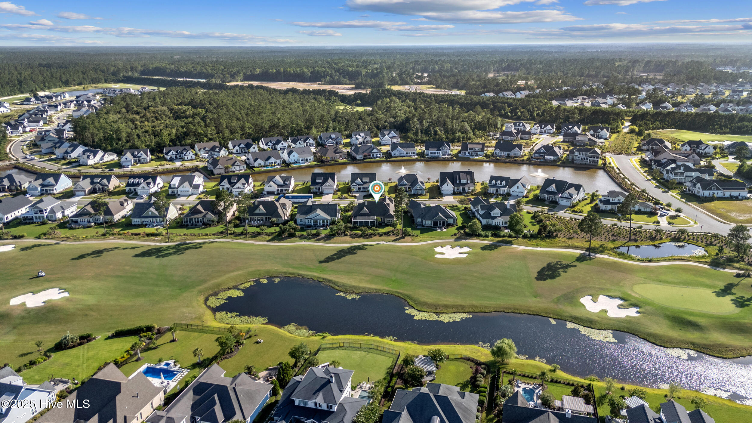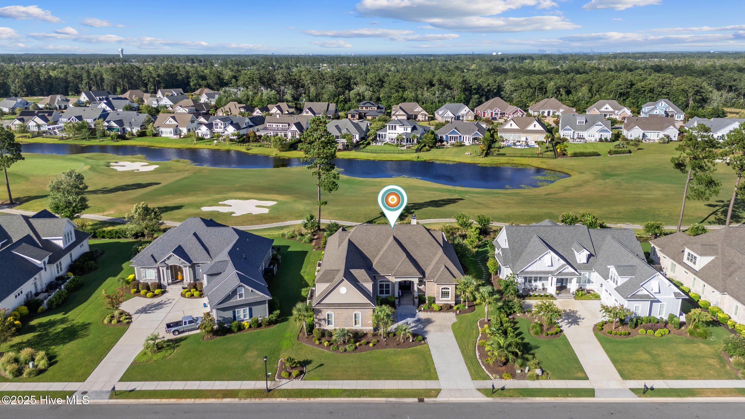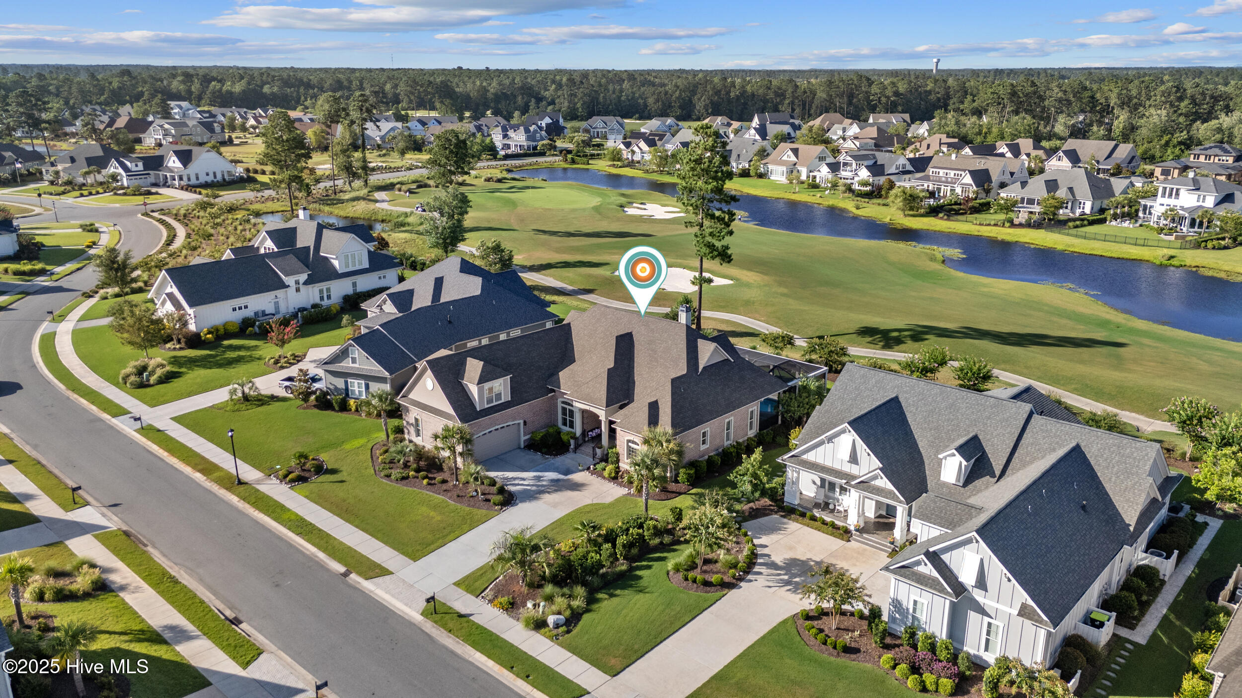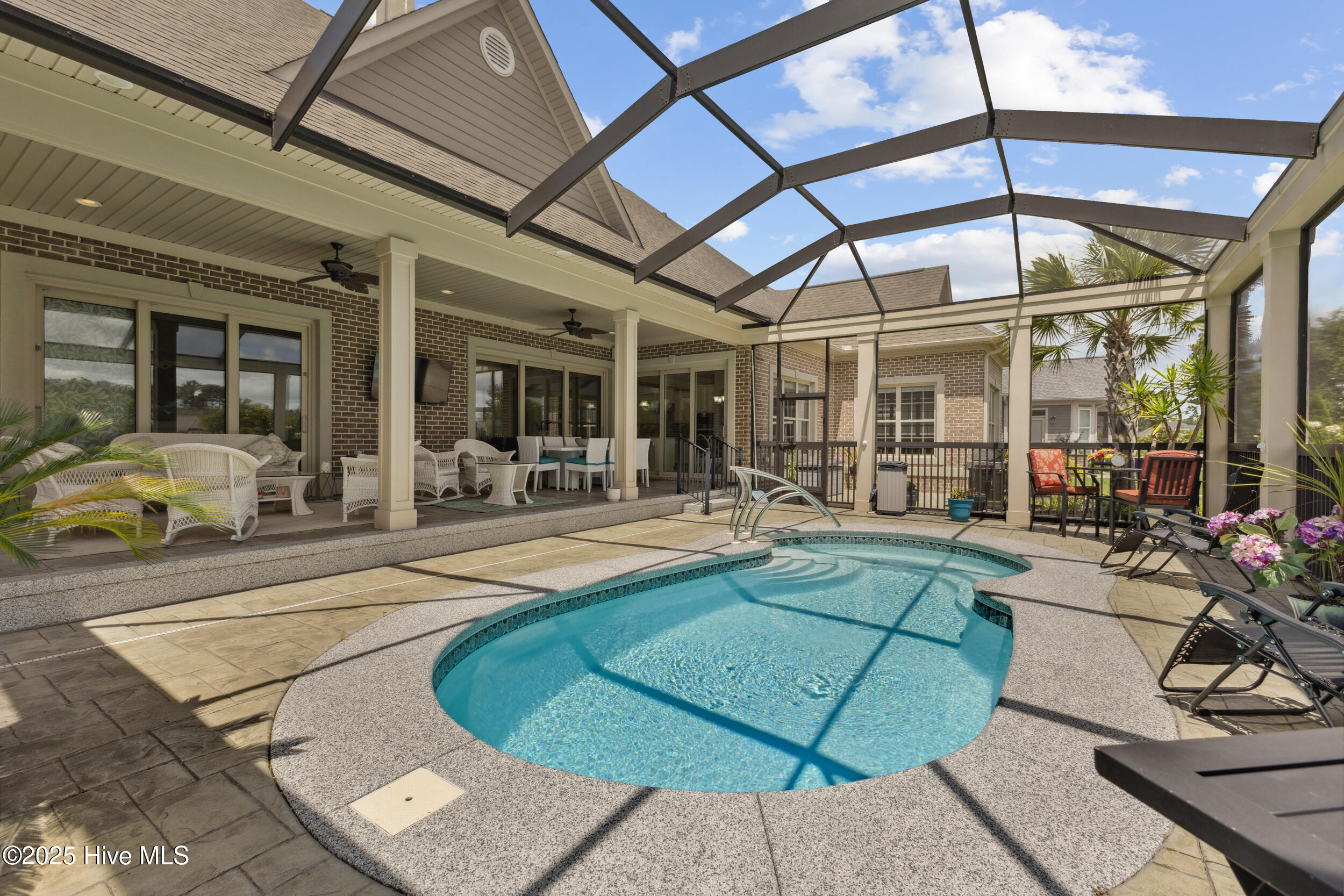 $10,000 BUYER INCENTIVE - USE AS YOU CHOOSE! Enjoy the scenery of the prestigious Cape Fear Golf course, ponds and evening lights through the custom lanai of this stunning home completed in 2019. 3323 square feet of thoughtfully designed living space, including beautiful crown and base molding, 8 foot solid doors, tons of closets, open floor plan with 14 foot soaring ceilings. Decorate as you wish with elegant neutral finishes including large windows to create a full golf course view. White ceramic tile throughout main living space. The chef's kitchen features quartz countertops, upgraded stainless steel appliances, gas cooktop, three pantry closets, and a wet bar with wine fridge --ideal for hosting. The spacious media room, adorned with a coffered ceiling offers the flexibility of a private guest suite or mother-in-law space with its own full bath. The master bath is elegant and spacious and also has quartz countertops and beautiful columns. A converted storage room can be used as office space on the first floor, while the upstairs bonus room (or 5th bedroom) which includes a private bath and closet. You will also appreciate the massive floored attic, providing abundant storage. The house is adorned with tropical landscaping and illuminated lighting all around including the screened custom stamped concrete lanai for pest free enjoyment daytime or evening. Step outside to a private tropical retreat with a saltwater pool. The backyard also includes a second patio outside the lanai with a built in gas grill hookup- perfect for outdoor living. Enjoy world-class Brunswick Forest amenities including an indoor and three outdoor pools, a fitness center, tennis, pickle-ball, kayaking, and access to the second hole at Cape Fear National Golf Course. Included features are a washer, dryer, kitchen refrigerator, garage freezer, SIX flat-screen TVs, surround sound sonos system, all pool equipment, and security cameras. Most furnishings are negotiable. SELLER MOTIVATED