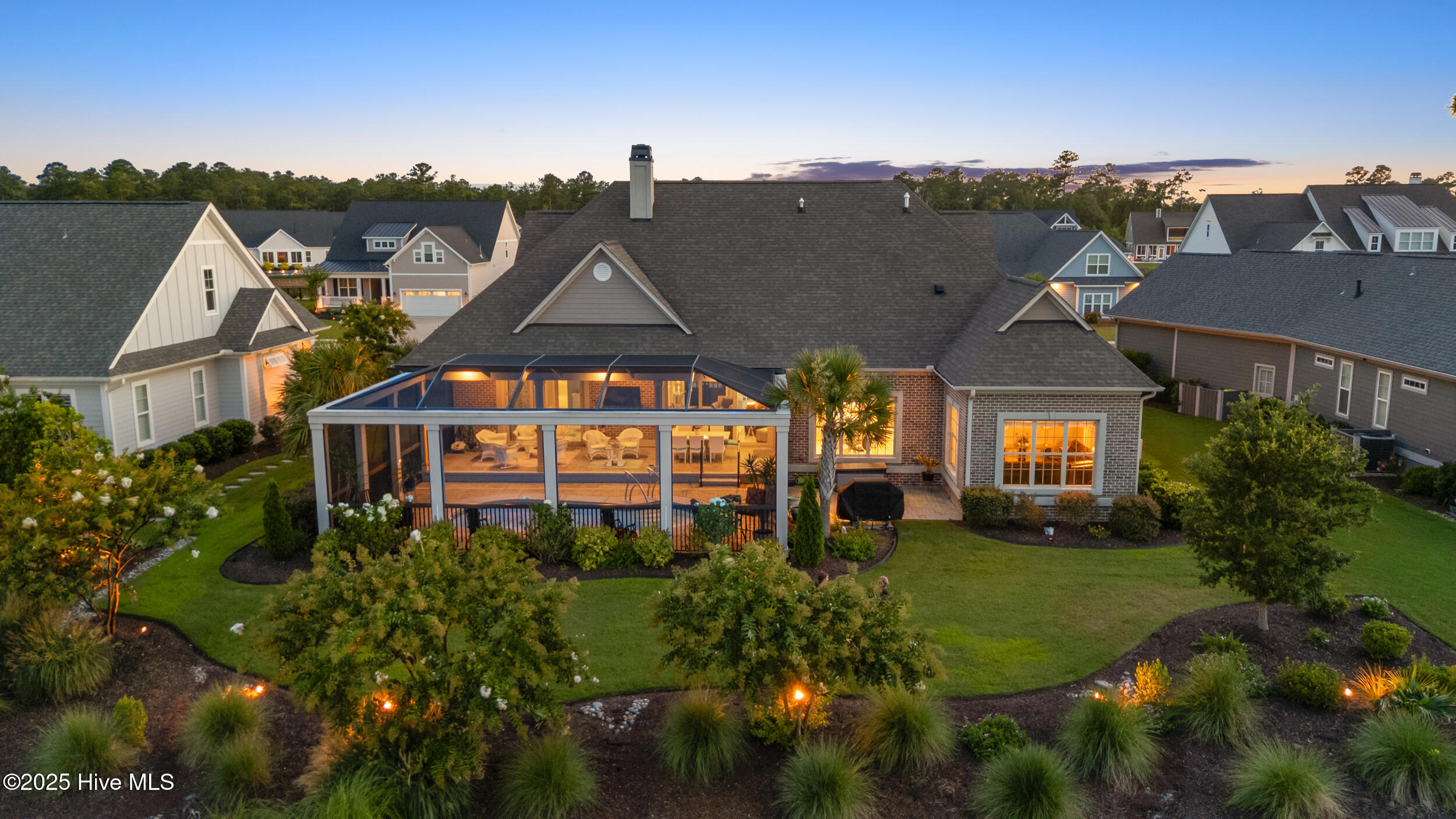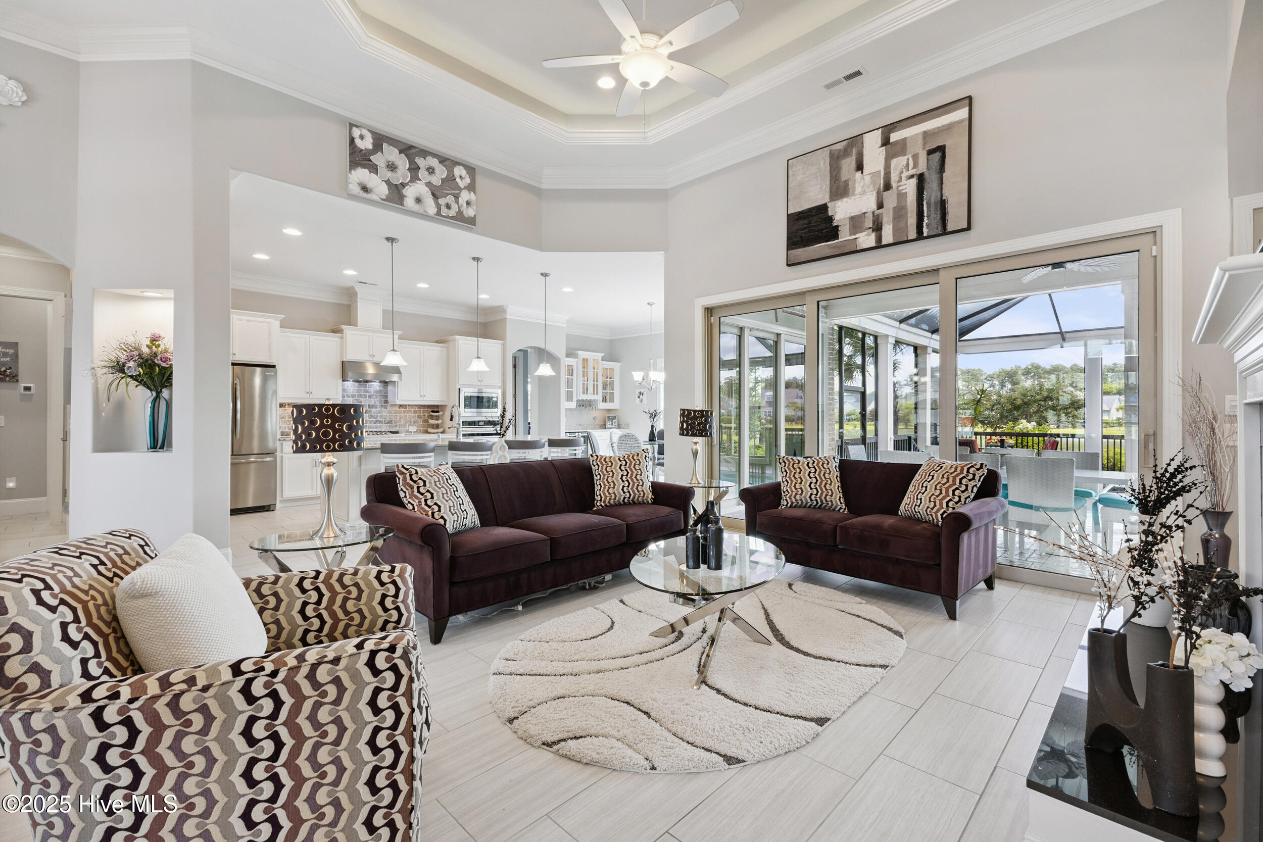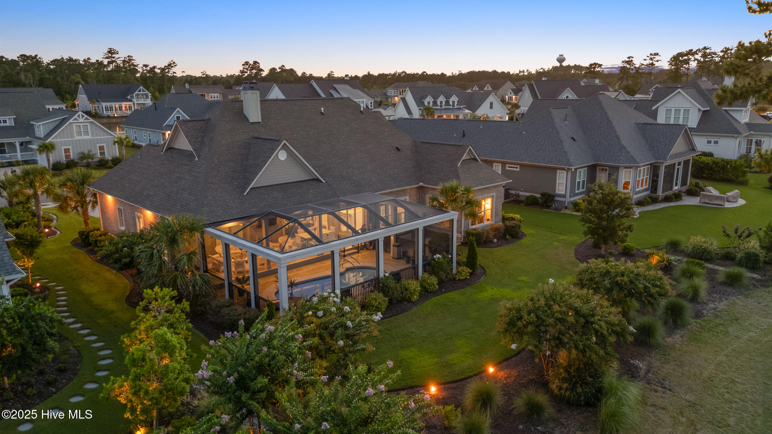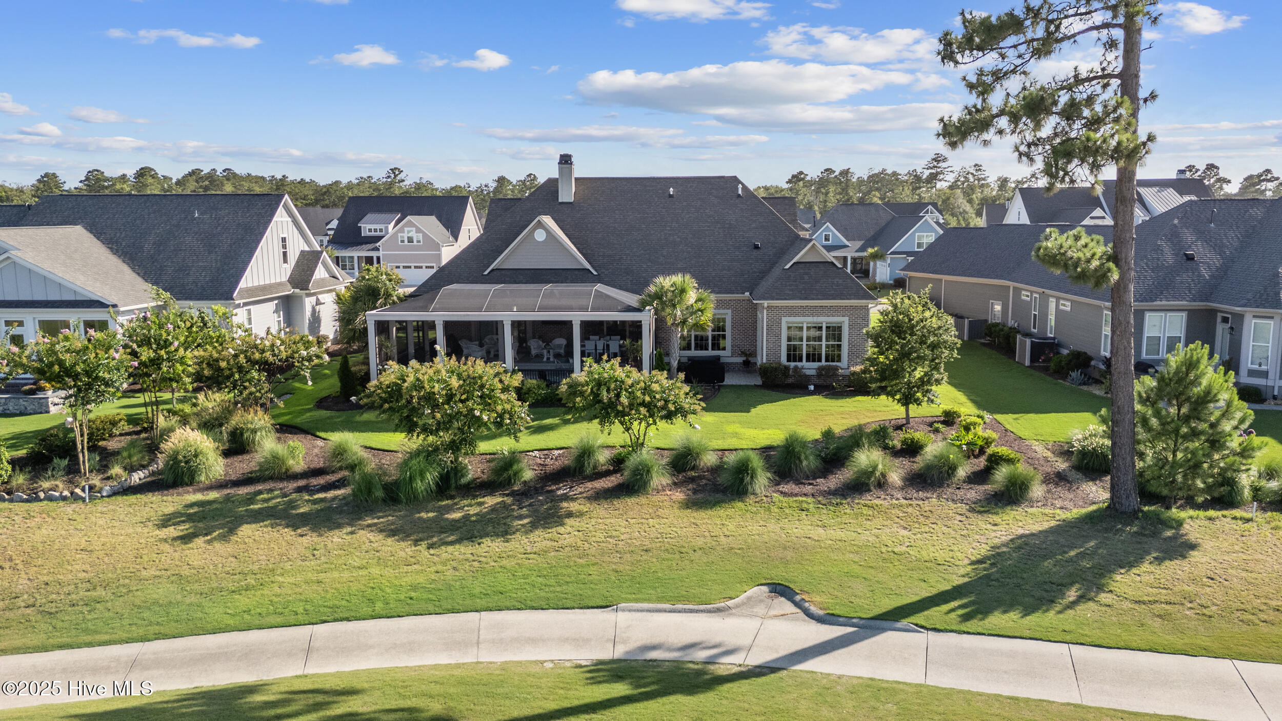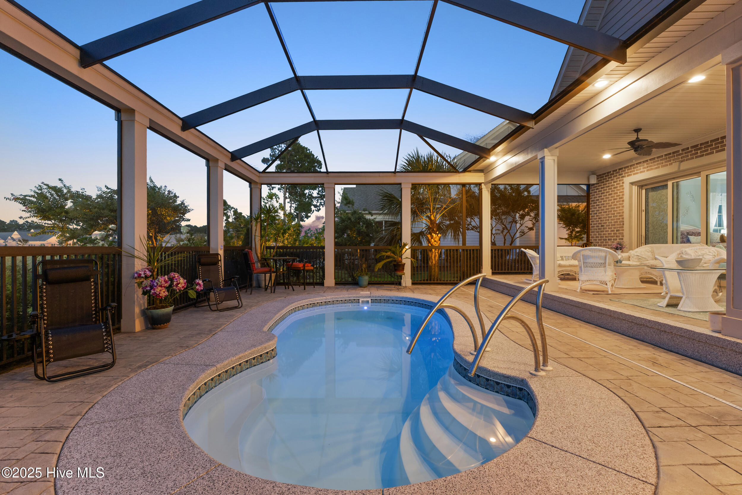 $10,000 BUYER INCENTIVE - USE AS YOU CHOOSE! Enjoy the scenery of the prestigious Cape Fear Golf course, ponds and evening lights through the custom lanai of this stunning home completed in 2019. 3323 square feet of thoughtfully designed living space, including beautiful crown and base molding, 8 foot solid doors, tons of closets, open floor plan with 14 foot soaring ceilings. Decorate as you wish with elegant neutral finishes including large windows to create a full golf course view. White ceramic tile throughout main living space. The chef's kitchen features quartz countertops, upgraded stainless steel appliances, gas cooktop, three pantry closets, and a wet bar with wine fridge --ideal for hosting. The spacious media room, adorned with a coffered ceiling offers the flexibility of a private guest suite or mother-in-law space with its own full bath. The master bath is elegant and spacious and also has quartz countertops and beautiful columns. A converted storage room can be used as office space on the first floor, while the upstairs bonus room (or 5th bedroom) which includes a private bath and closet. You will also appreciate the massive floored attic, providing abundant storage. The house is adorned with tropical landscaping and illuminated lighting all around including the screened custom stamped concrete lanai for pest free enjoyment daytime or evening. Step outside to a private tropical retreat with a saltwater pool. The backyard also includes a second patio outside the lanai with a built in gas grill hookup- perfect for outdoor living. Enjoy world-class Brunswick Forest amenities including an indoor and three outdoor pools, a fitness center, tennis, pickle-ball, kayaking, and access to the second hole at Cape Fear National Golf Course. Included features are a washer, dryer, kitchen refrigerator, garage freezer, SIX flat-screen TVs, surround sound sonos system, all pool equipment, and security cameras. Most furnishings are negotiable. SELLER MOTIVATED