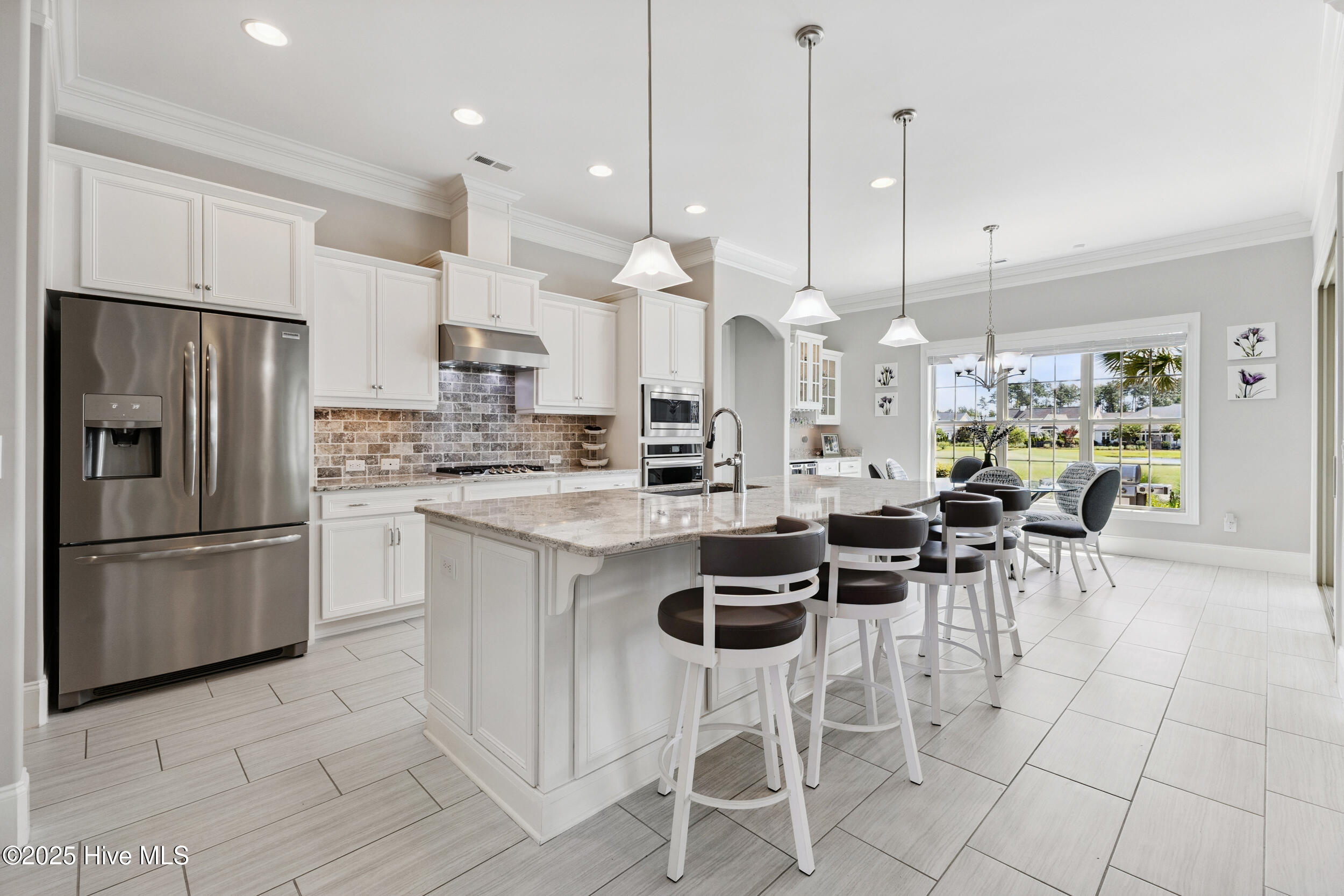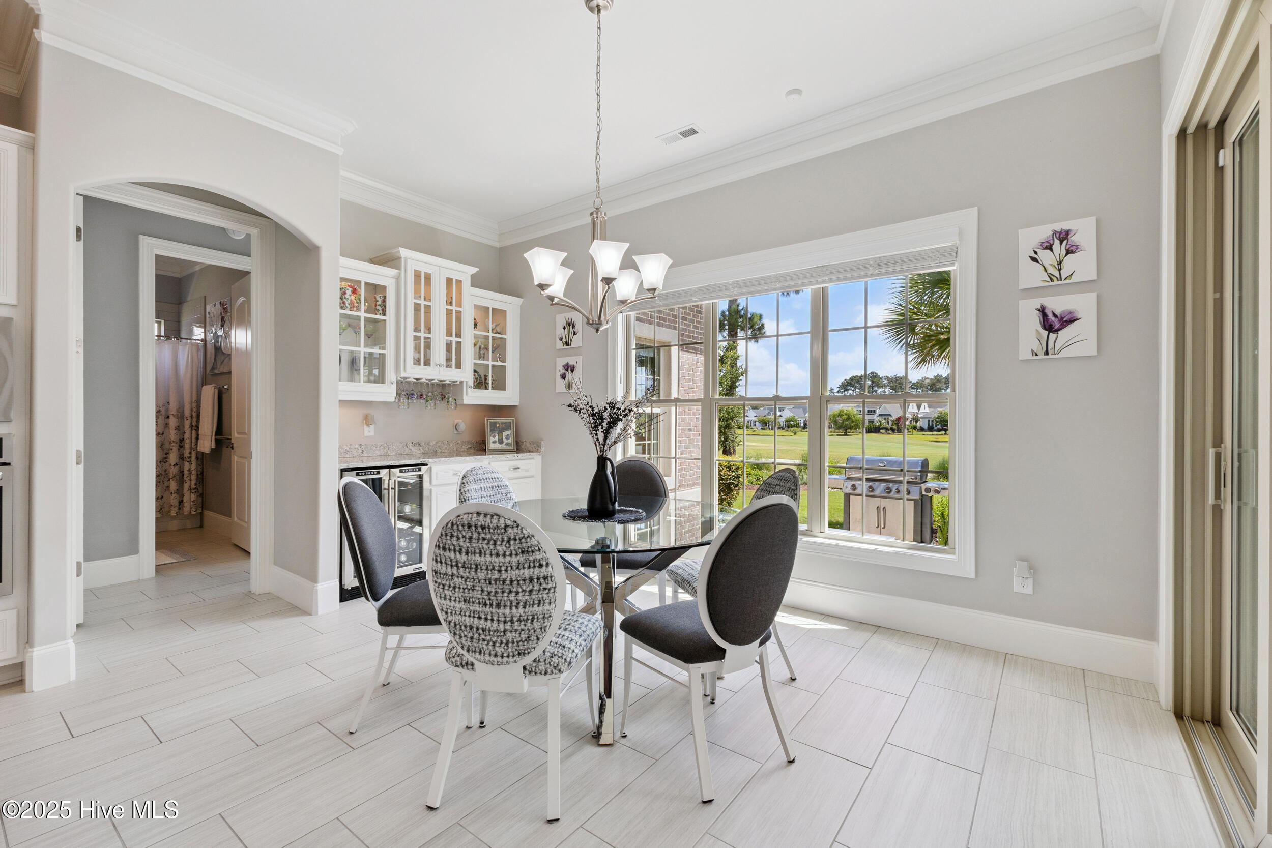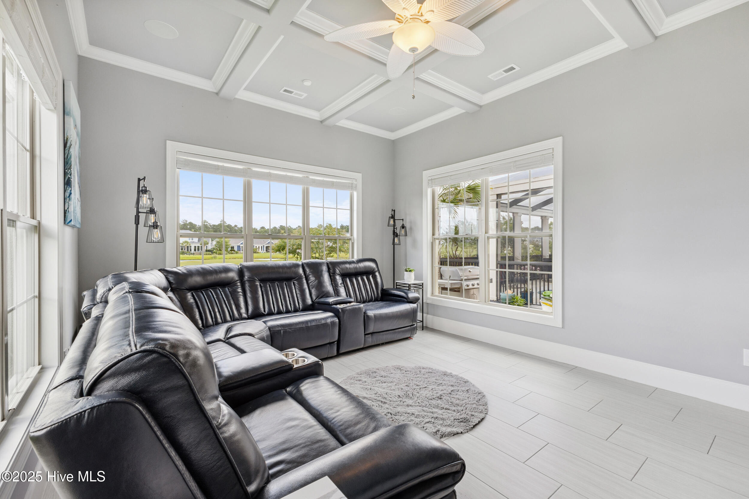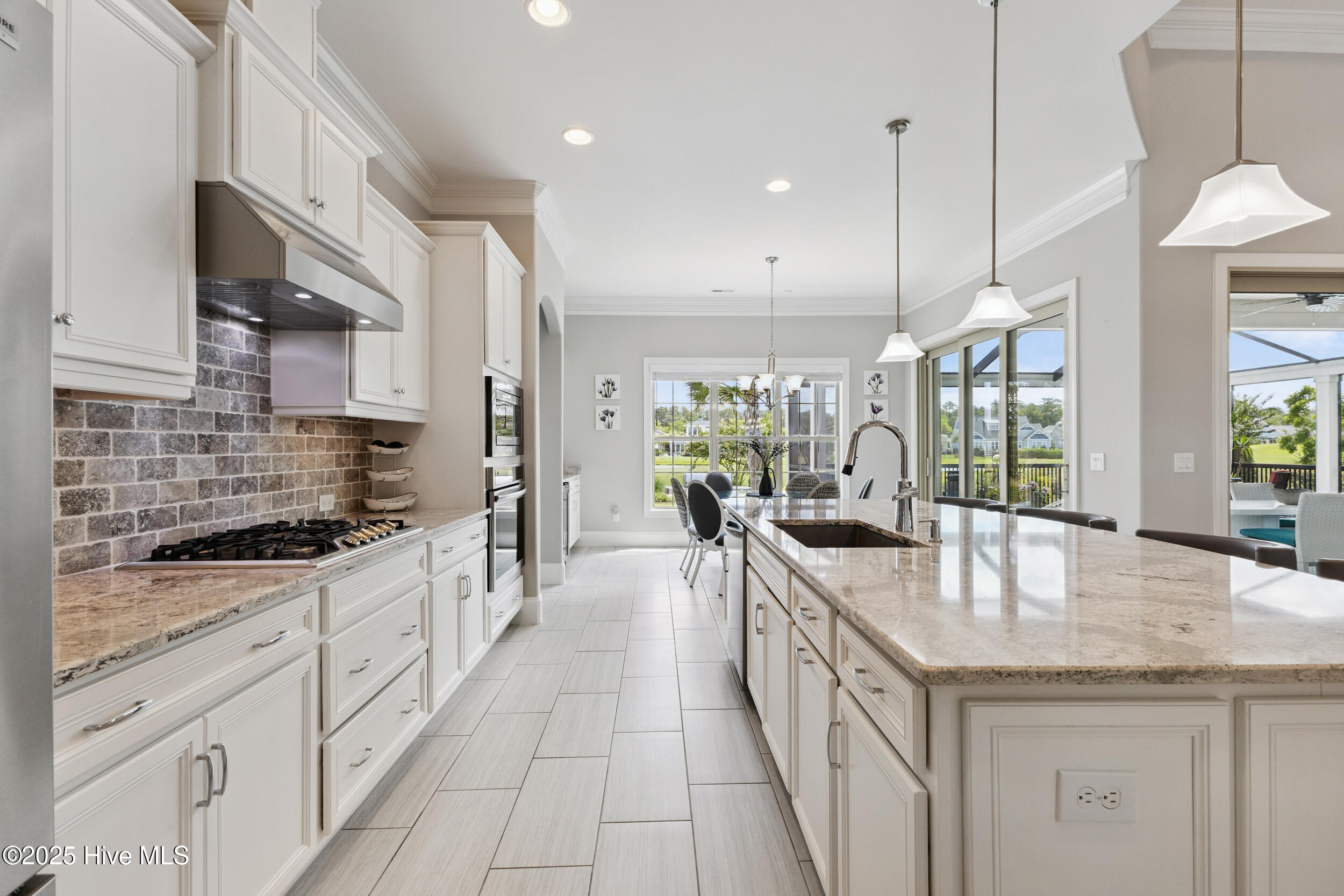 $10,000 BUYER INCENTIVE - USE AS YOU CHOOSE! Enjoy the scenery of the prestigious Cape Fear Golf course, ponds and evening lights through the custom lanai of this stunning home completed in 2019. 3323 square feet of thoughtfully designed living space, including beautiful crown and base molding, 8 foot solid doors, tons of closets, open floor plan with 14 foot soaring ceilings. Decorate as you wish with elegant neutral finishes including large windows to create a full golf course view. White ceramic tile throughout main living space. The chef's kitchen features quartz countertops, upgraded stainless steel appliances, gas cooktop, three pantry closets, and a wet bar with wine fridge --ideal for hosting. The spacious media room, adorned with a coffered ceiling offers the flexibility of a private guest suite or mother-in-law space with its own full bath. The master bath is elegant and spacious and also has quartz countertops and beautiful columns. A converted storage room can be used as office space on the first floor, while the upstairs bonus room (or 5th bedroom) which includes a private bath and closet. You will also appreciate the massive floored attic, providing abundant storage. The house is adorned with tropical landscaping and illuminated lighting all around including the screened custom stamped concrete lanai for pest free enjoyment daytime or evening. Step outside to a private tropical retreat with a saltwater pool. The backyard also includes a second patio outside the lanai with a built in gas grill hookup- perfect for outdoor living. Enjoy world-class Brunswick Forest amenities including an indoor and three outdoor pools, a fitness center, tennis, pickle-ball, kayaking, and access to the second hole at Cape Fear National Golf Course. Included features are a washer, dryer, kitchen refrigerator, garage freezer, SIX flat-screen TVs, surround sound sonos system, all pool equipment, and security cameras. Most furnishings are negotiable. SELLER MOTIVATED