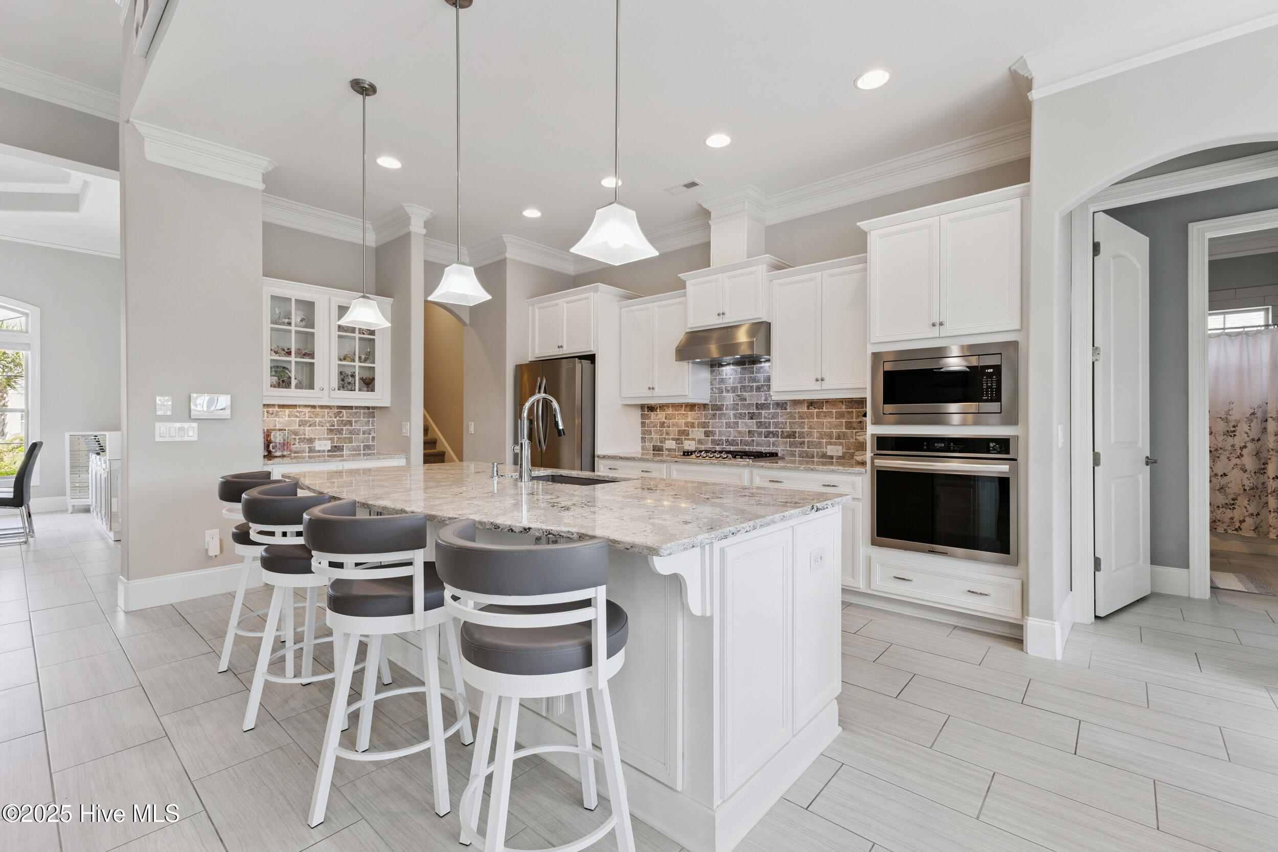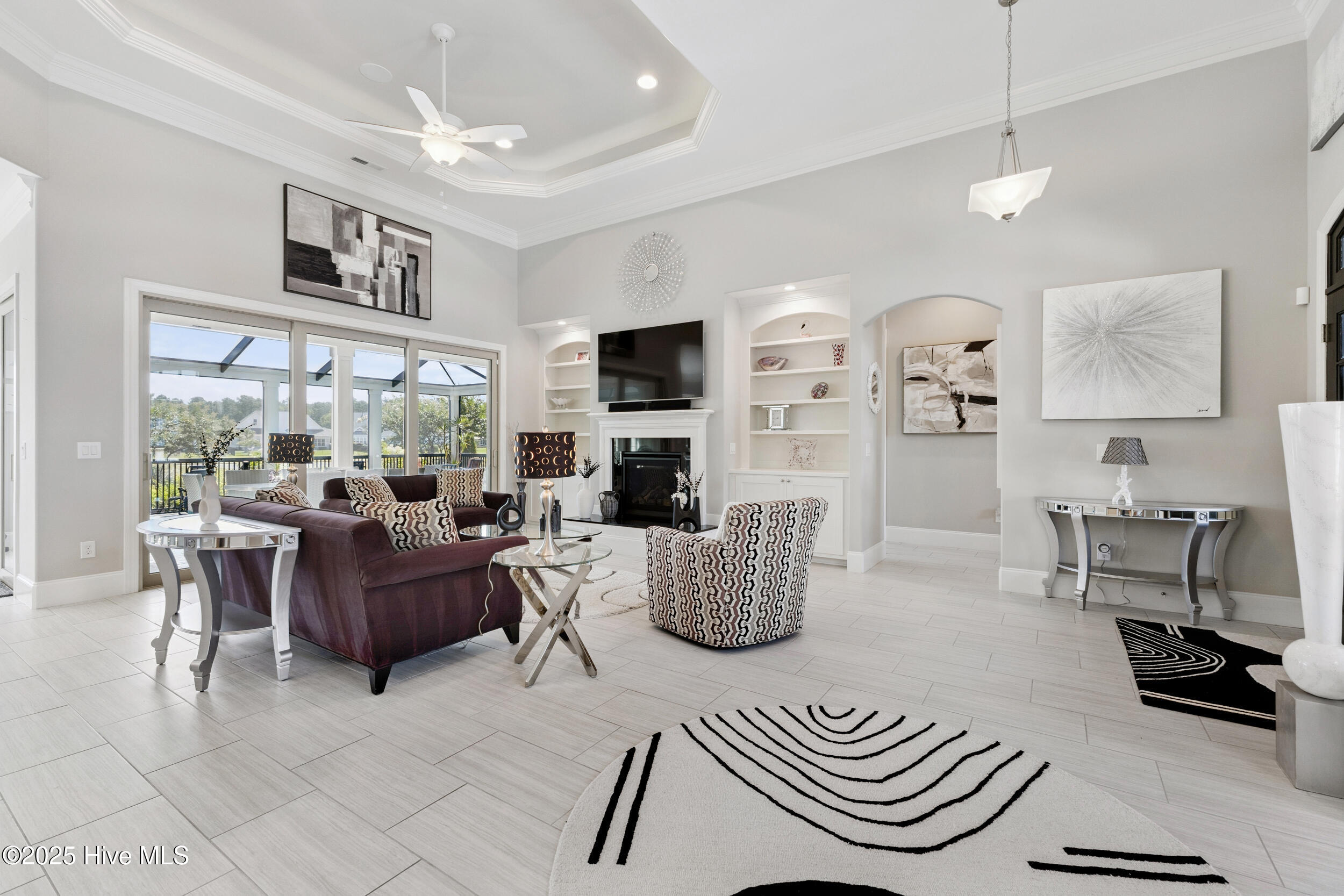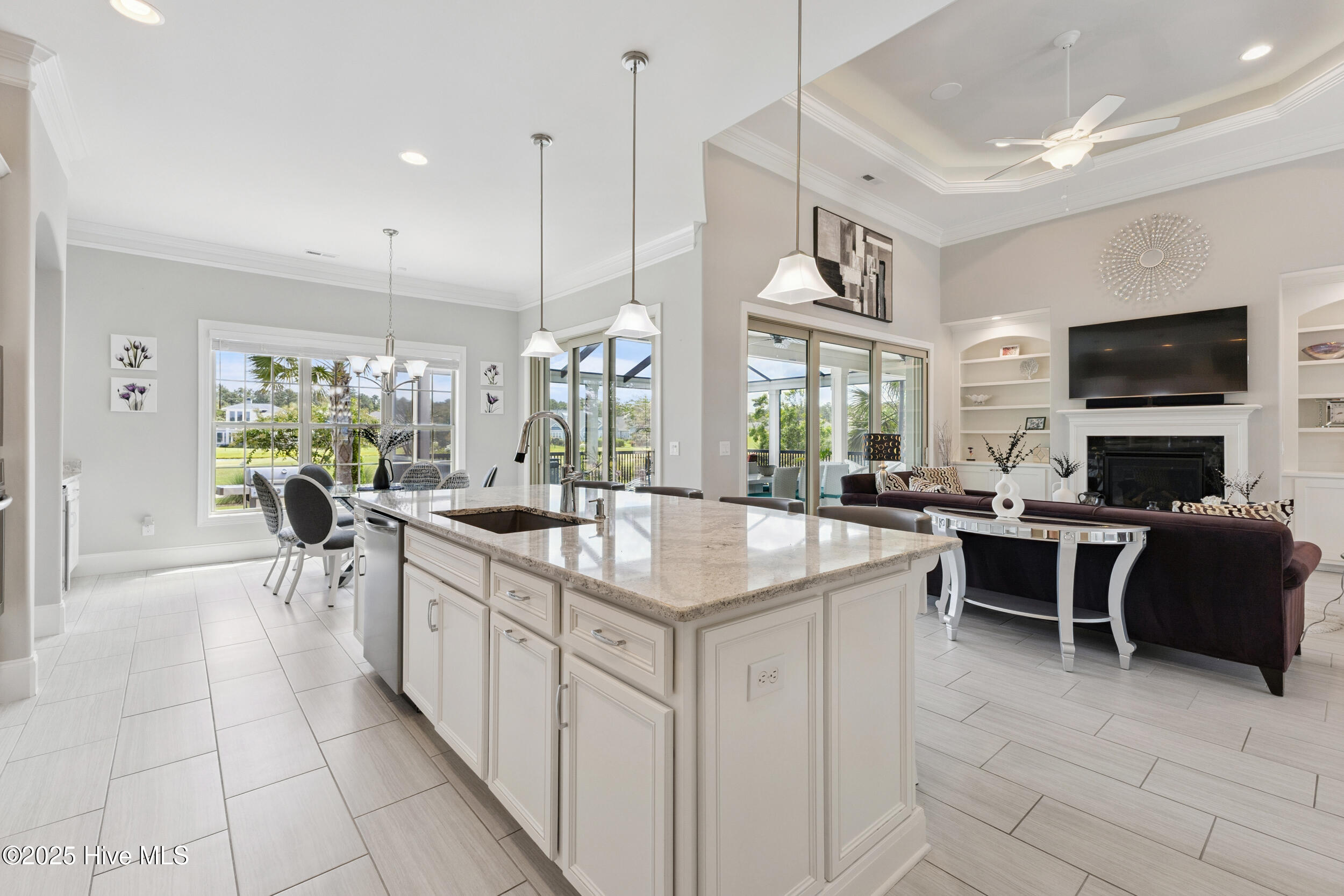 Sound System, Master Downstairs, Walk-In Closet(s), Tray Ceiling(s), High Ceilings, Bookcases, Kitchen Island, Ceiling Fan(s), Pantry, Wet Bar