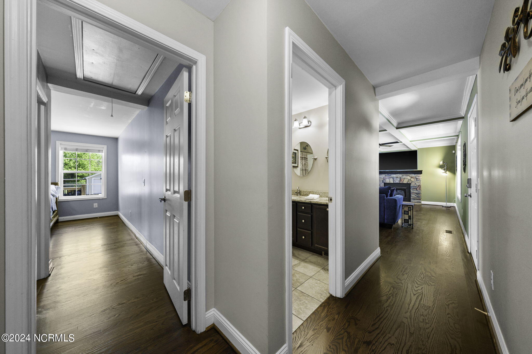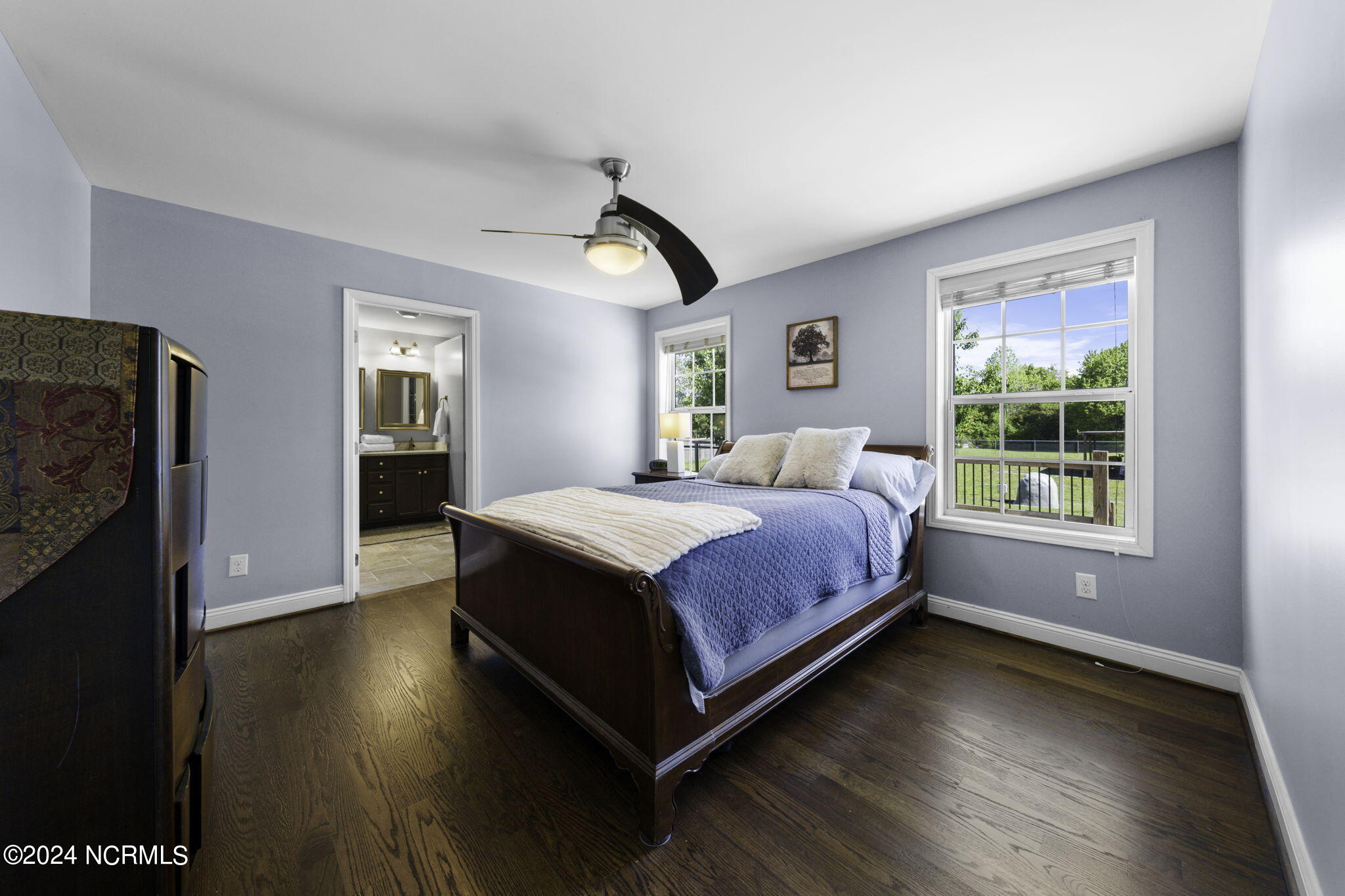 This delightful 4-bed, 2-bath sits on a 1.09 acres of country living. Ample parking for guest in the large circle drive. Step inside this originally owned and meticulously cared for home and you'll notice the newly refinished hardwood floors, stone gas fireplace, fully equipped kitchen featuring stainless steel appliances and granite countertops. Primary suite has a walk in closet, tiled walk in shower, dual solid surface vanities, and a separate water closet.