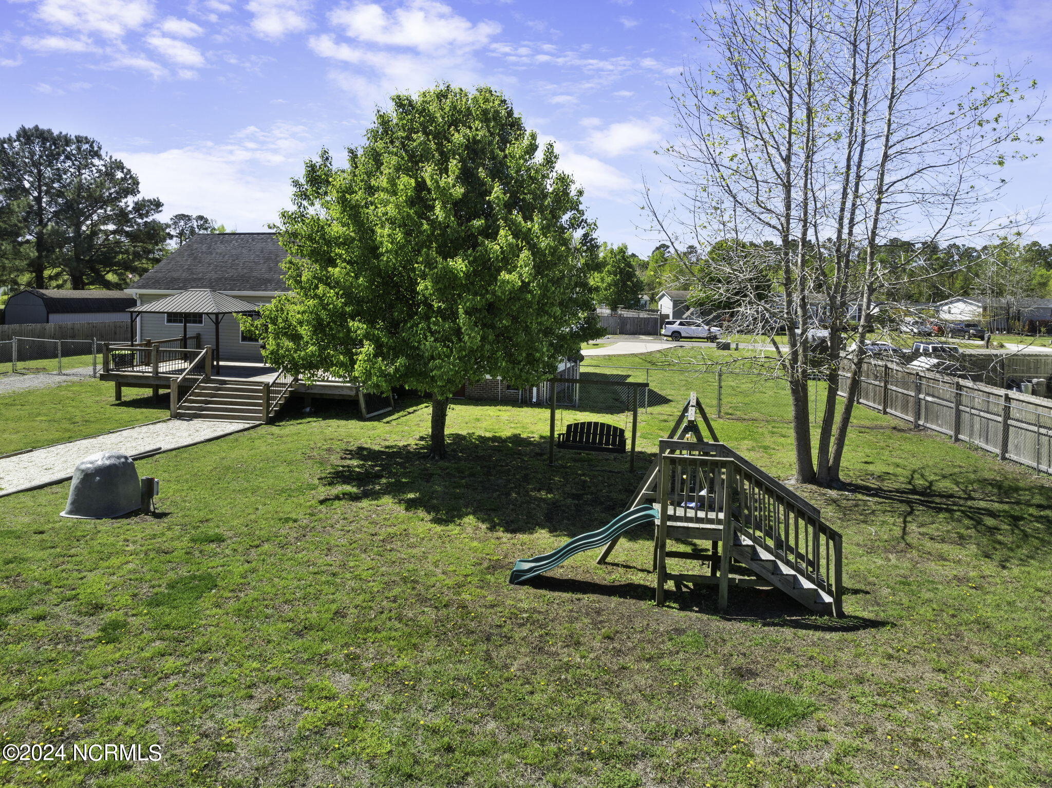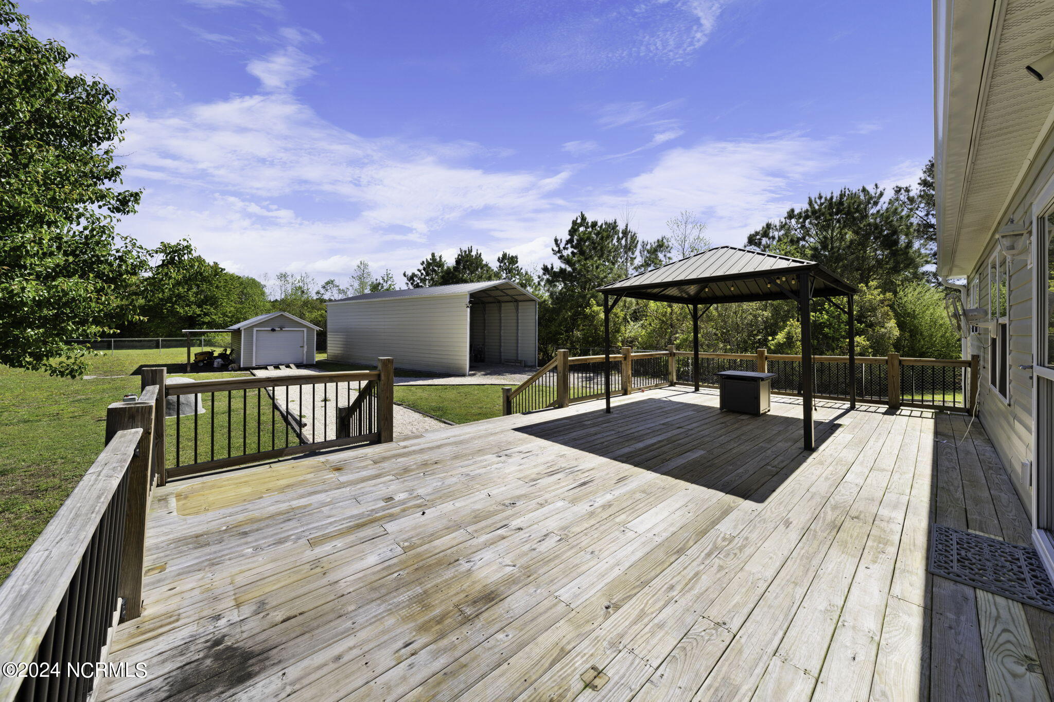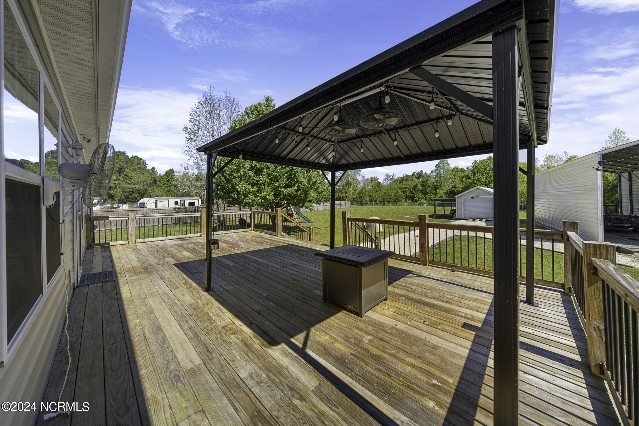 Outside, this property sit on 1.09 acres of land proceeding past the fully fenced back yard. Enjoy the large deck with included cabana --ideal for outdoor relaxation and entertaining. Additionally, the RV / Boat storage carport includes a 50-amp power supply, perfect for hobbyists or electric vehicle charging.
