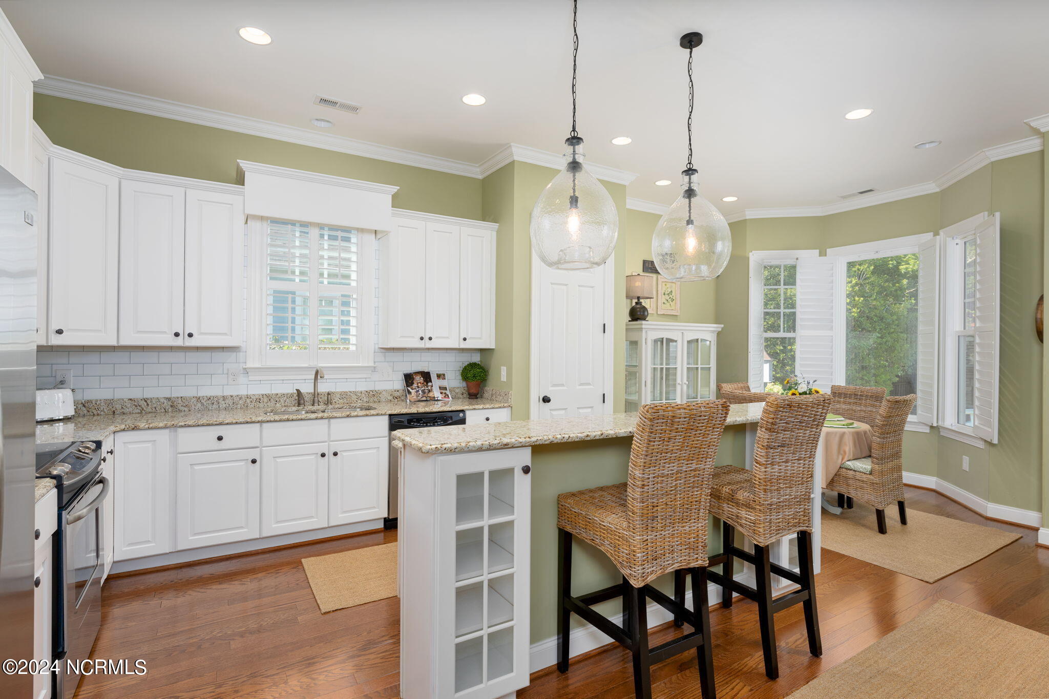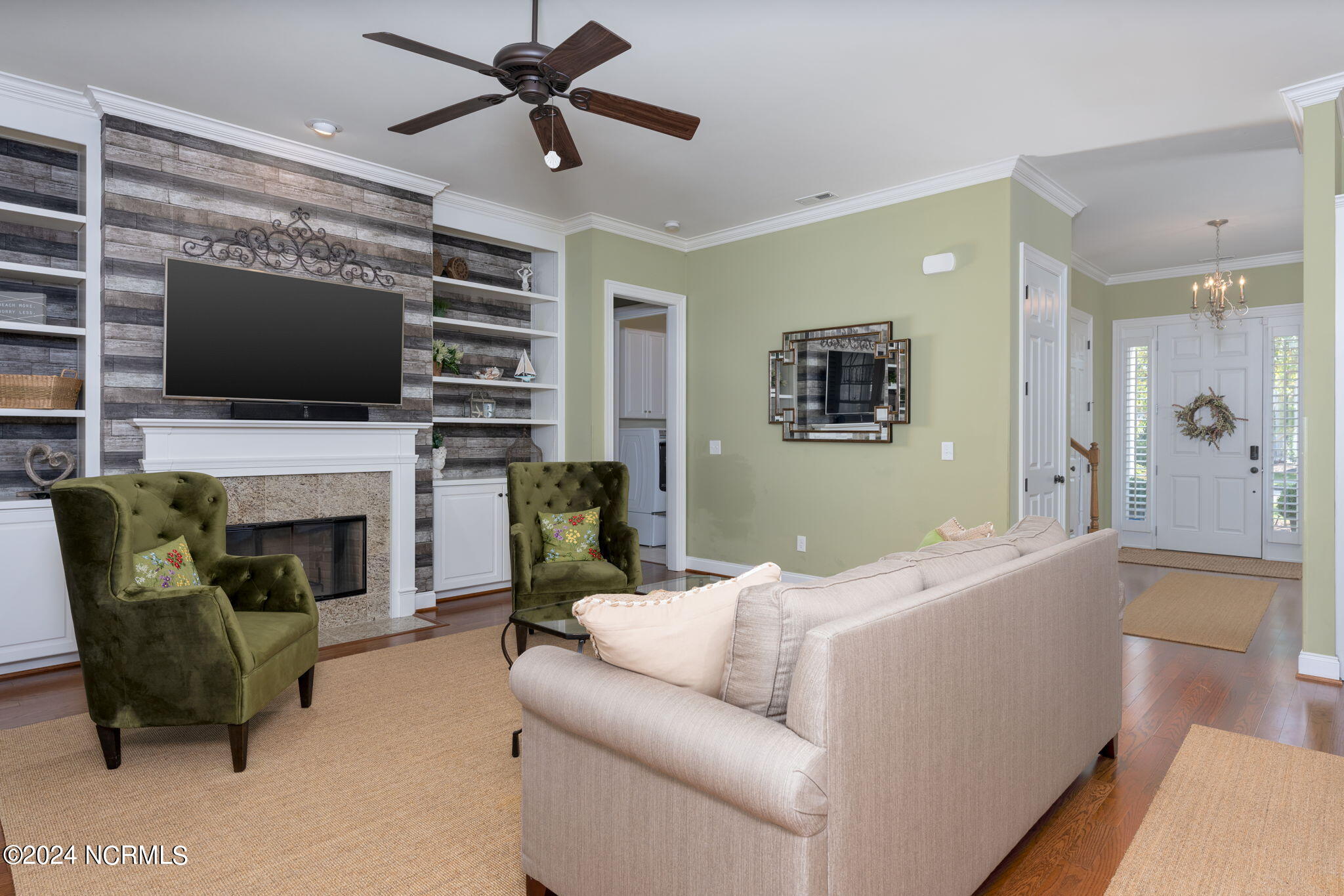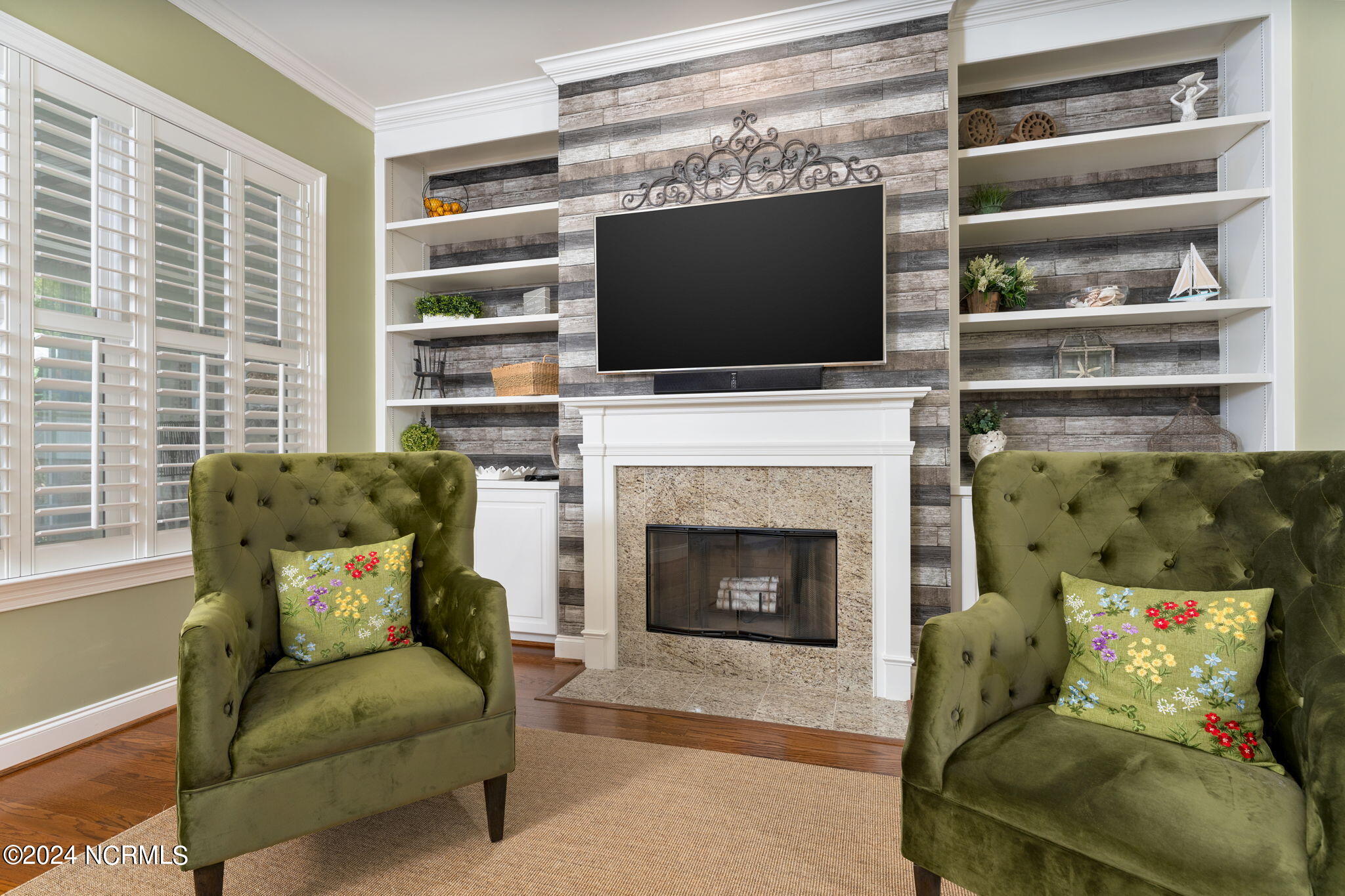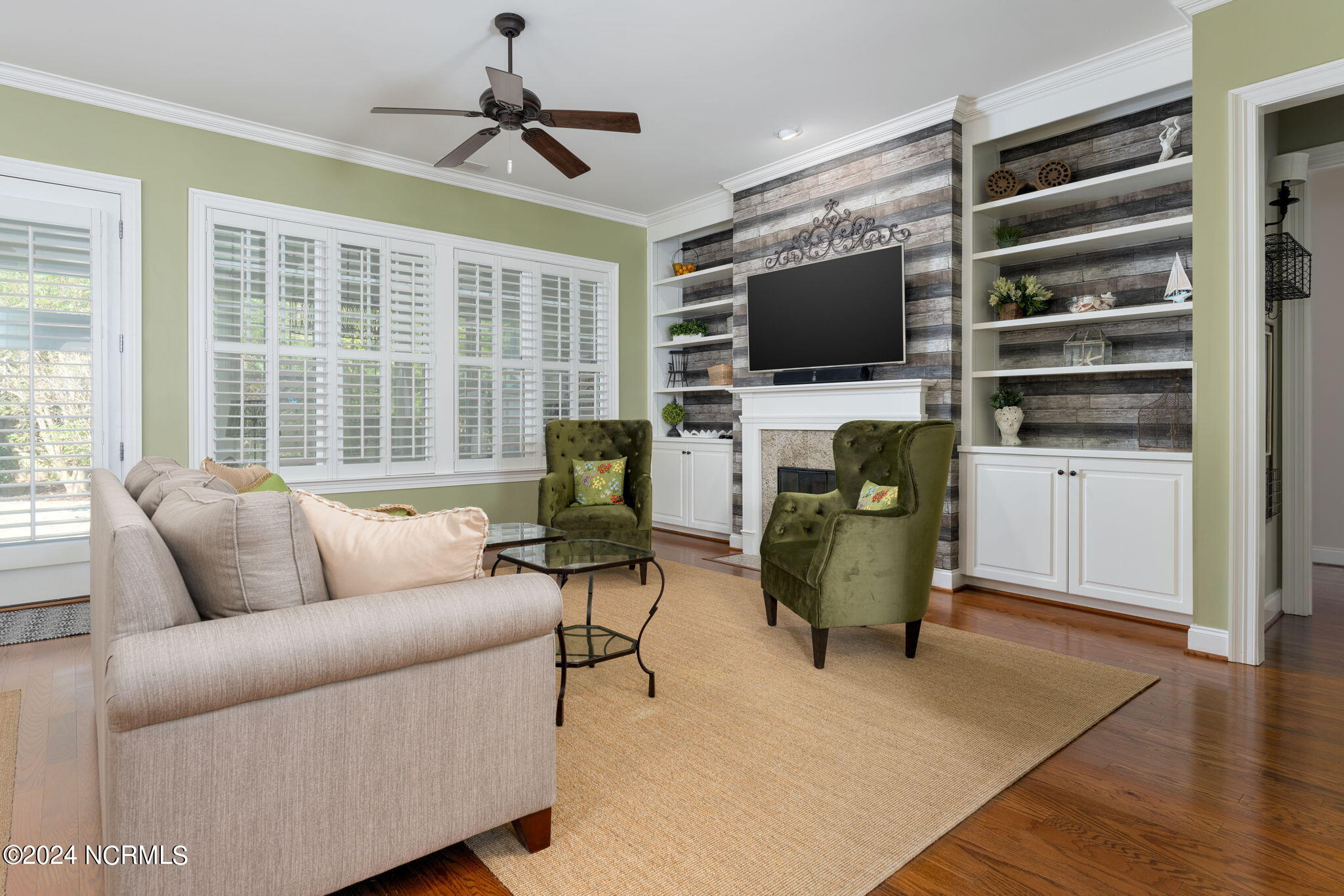 Step inside this immaculate home behind Mayfaire Town Center, in the sought after neighborhood of Tanbridge Park. Every detail has been thoughtfully considered to create a haven you'll cherish. Once a model home, this single owner home has been wonderfully maintained. The sellers have spared no expense from plantation shutters throughout to a beautifully designed sunroom that opens to the backyard and patio highlighting the fabulous outdoor fireplace featured in Wilmington Magazine. The home boasts premium features such as stainless-steel appliances, granite countertops, hardwood floors, 10-foot ceilings on the main level, tiled baths and built-in cabinetry--just a few of the many high-end details you'll love.