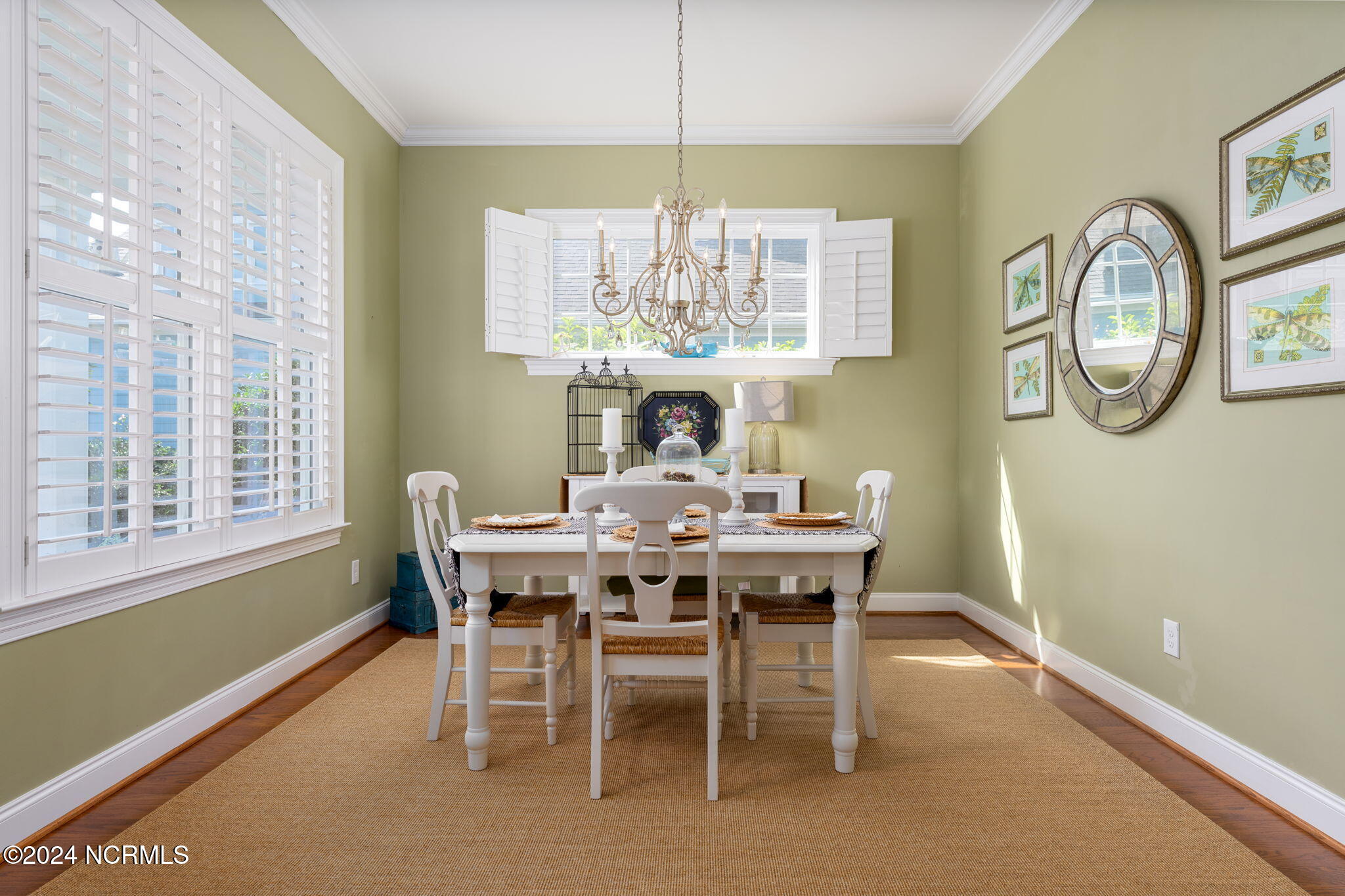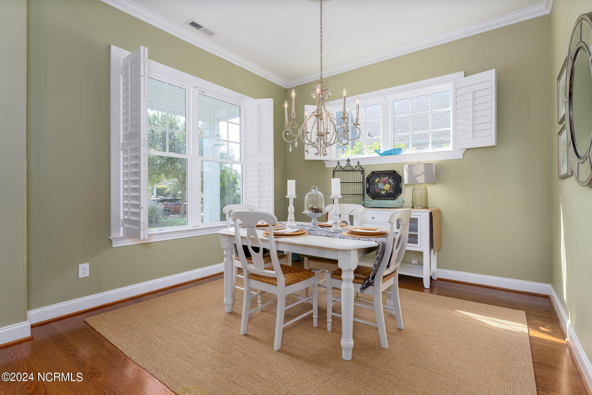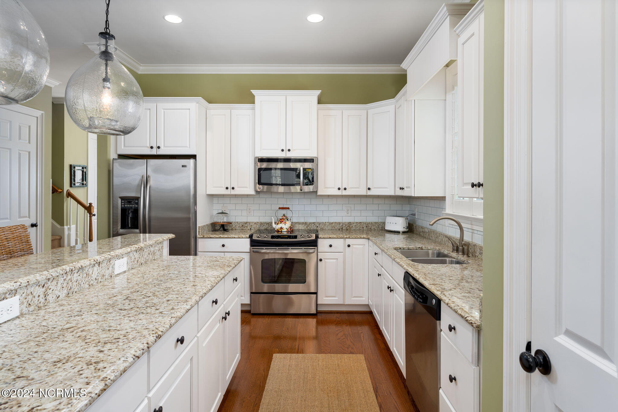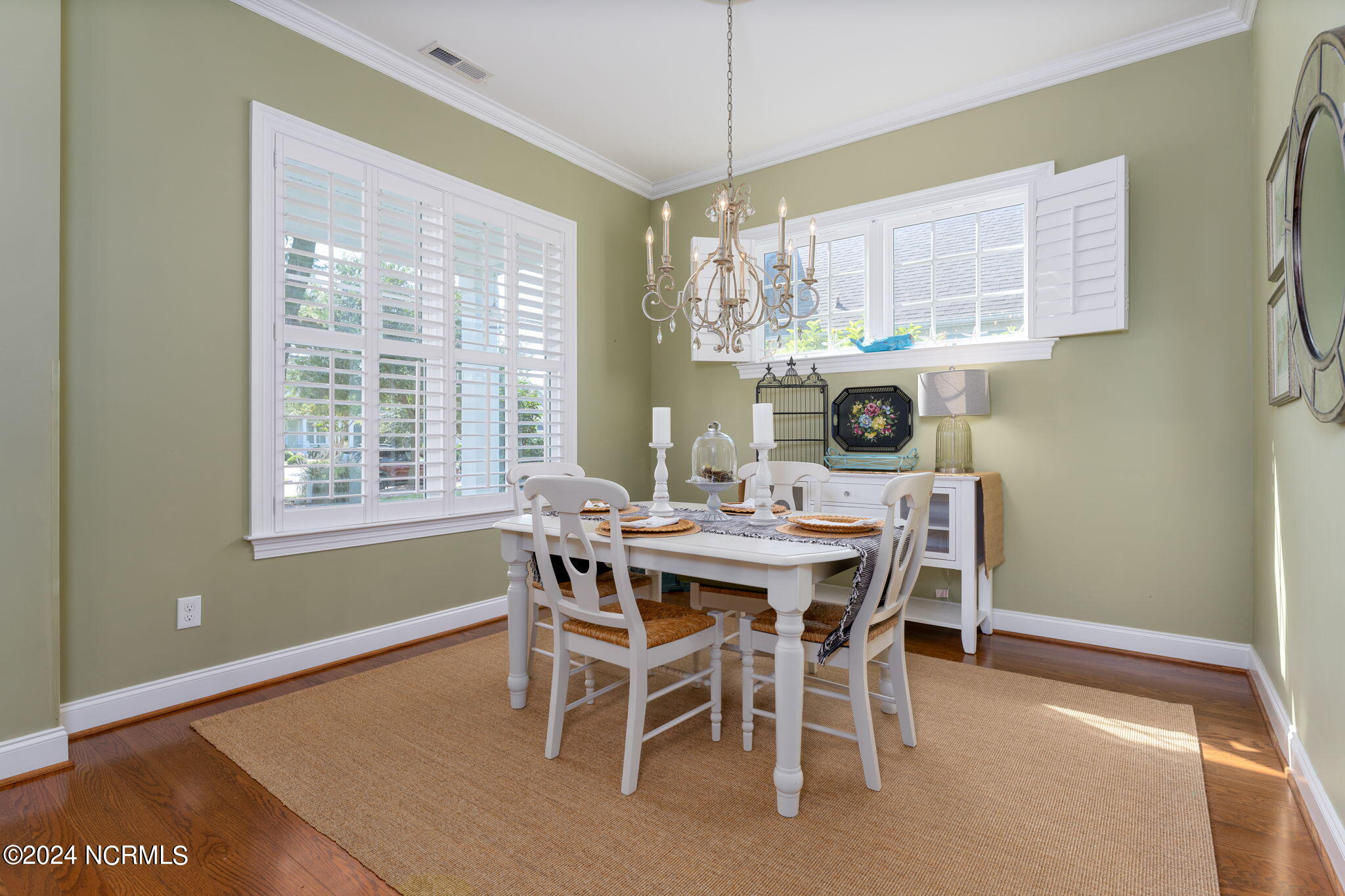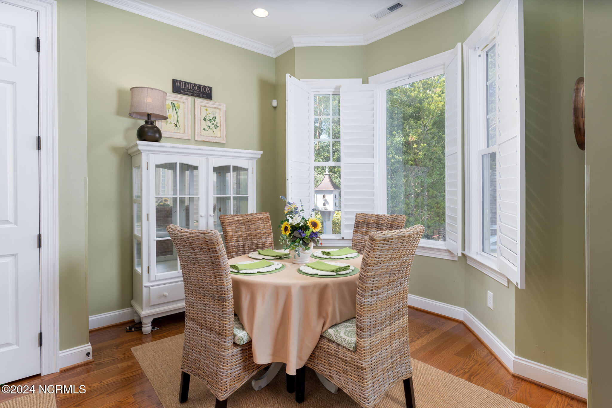 Step inside this immaculate home behind Mayfaire Town Center, in the sought after neighborhood of Tanbridge Park. Every detail has been thoughtfully considered to create a haven you'll cherish. Once a model home, this single owner home has been wonderfully maintained. The sellers have spared no expense from plantation shutters throughout to a beautifully designed sunroom that opens to the backyard and patio highlighting the fabulous outdoor fireplace featured in Wilmington Magazine. The home boasts premium features such as stainless-steel appliances, granite countertops, hardwood floors, 10-foot ceilings on the main level, tiled baths and built-in cabinetry--just a few of the many high-end details you'll love.