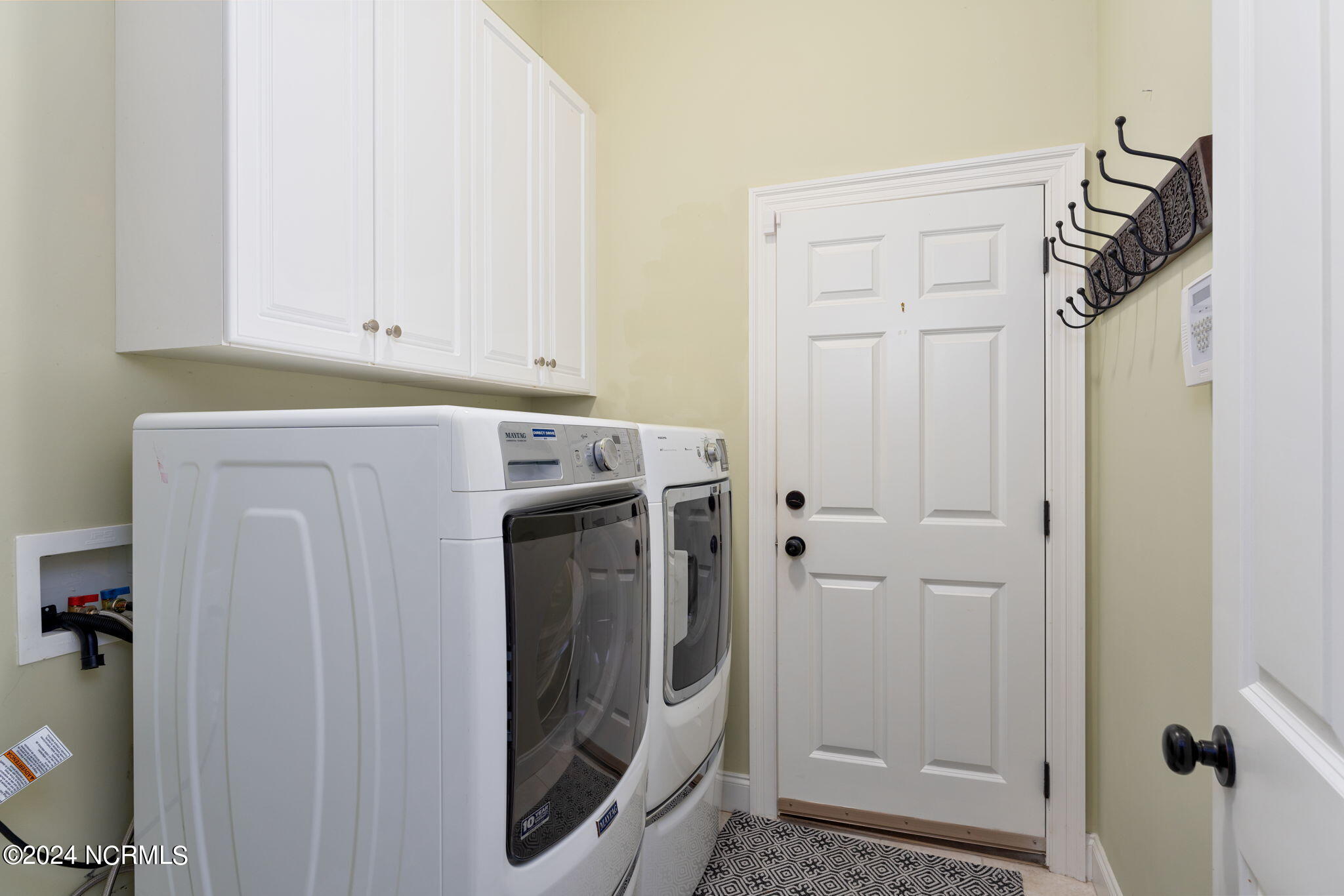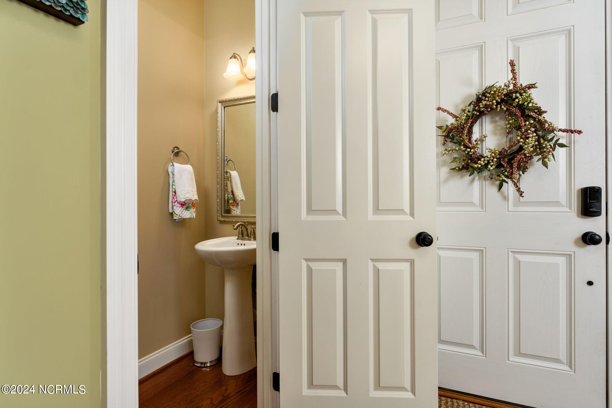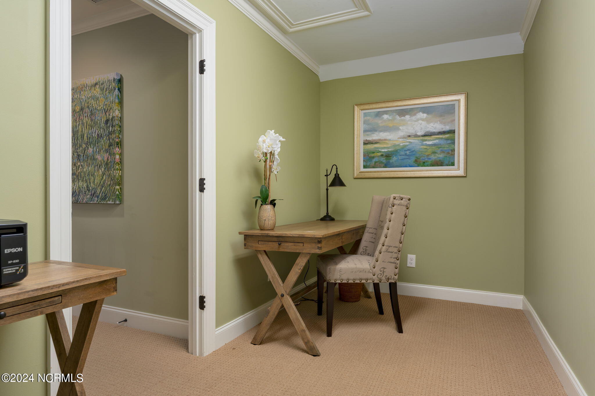 As you enter through the foyer, the flex room/dining room welcomes you with its elegant charm. To continue the easy living, the spacious primary bedroom and a beautifully appointed bathroom are situated on the first floor ensuring convenience and comfort. This large bedroom offers ample room for a seating area and its generously sized closets create a spacious retreat, complete with his-and-hers closets, a luxurious bath featuring a double vanity, tiled shower, and a soaking tub. Step into the kitchen that combines functionality with style. The heart of this home, it boasts a generous island that beckons for gatherings and culinary adventures. Plentiful cabinetry graces the space, offering both beauty and practicality, providing ample storage and organization. The inviting living room is flooded with natural light makes it the perfect setting for gatherings. Venture to the second floor, where you'll find two more bedrooms and bathroom each designed with your family's needs in mind. A second office space/nursery/playroom on the second floor provides versatility.