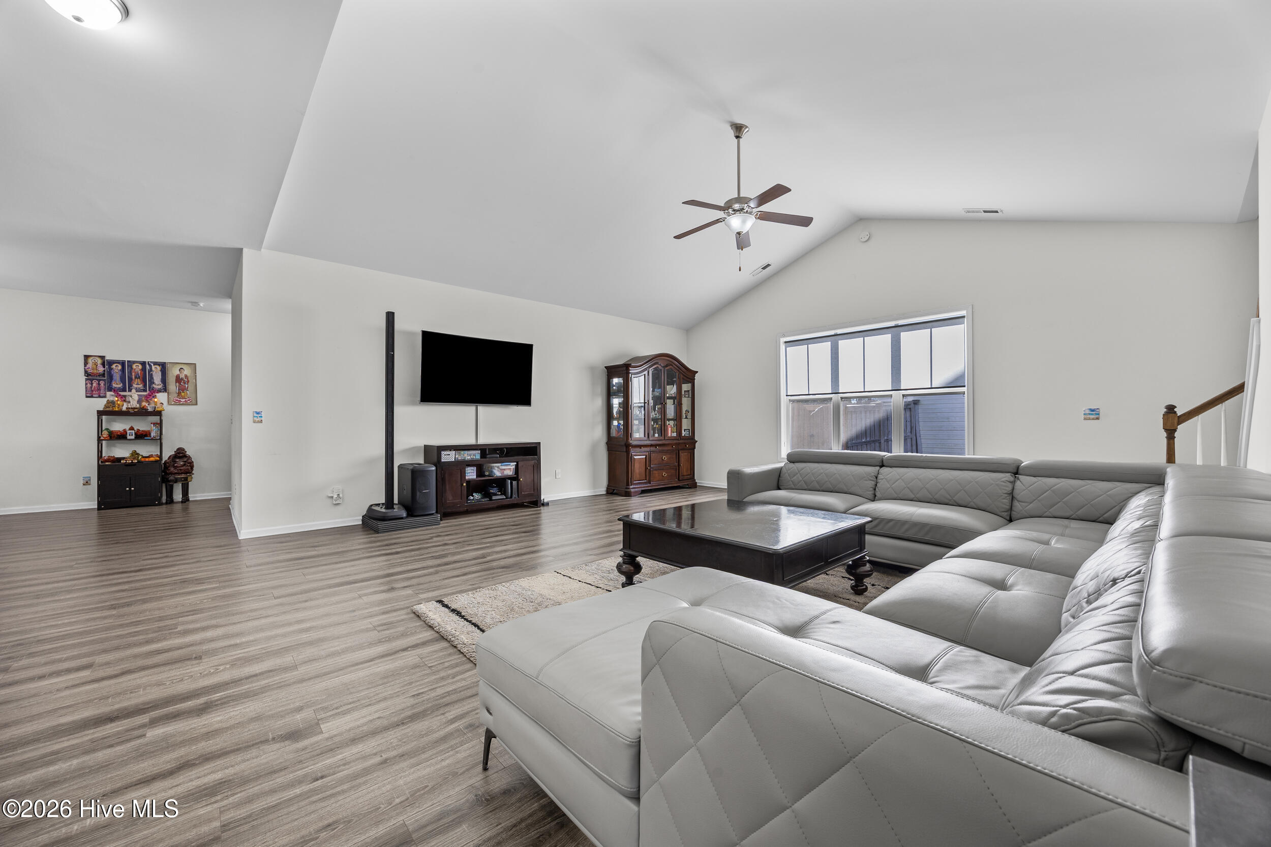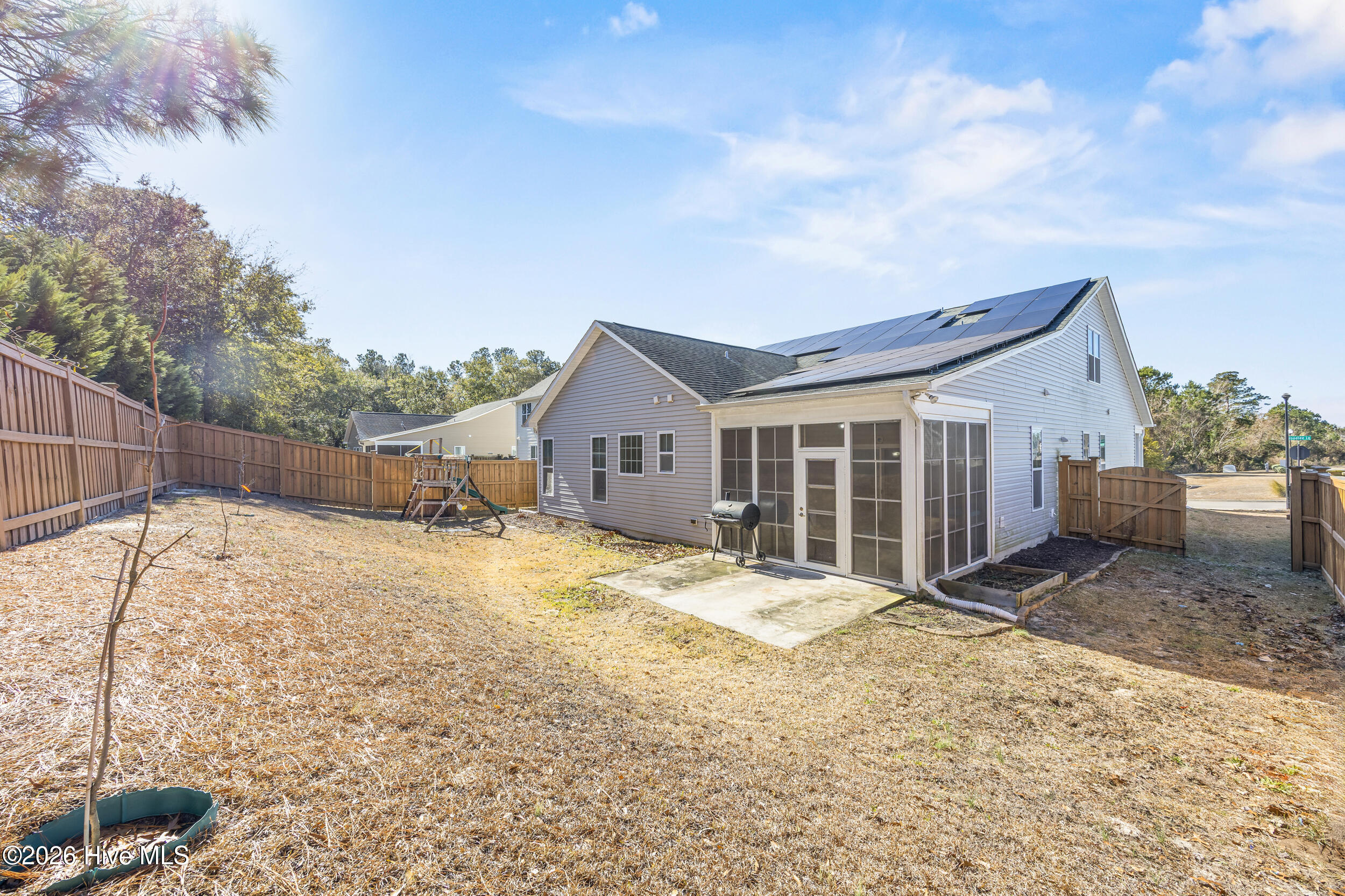 Tucked into the Tralee Place neighborhood just off River Road, this thoughtfully cared for 2,500 sq ft home offers five bedrooms and three full bathrooms with a layout that works just as well for everyday living as it does for hosting guests. The main living area feels open and inviting, with vaulted ceilings and a seamless flow into the kitchen. Granite countertops, stainless steel appliances, and a pantry make the kitchen functional, while the adjoining dining area opens to a three-season room that overlooks the fully fenced backyard, an ideal spot to unwind or entertain year-round. The split floor plan provides privacy, with two bedrooms and a full bath at the front of the home and a spacious primary suite tucked away at the back. The primary suite features tray ceilings, an oversized walk-in closet, and a well-appointed ensuite with dual vanities, a walk-in shower, and a separate soaking tub. A dedicated laundry room completes the first floor. Upstairs, you'll find two additional bedrooms that offer plenty of space for guests, hobbies, or a home office. Outside, a covered front porch, two-car garage, and irrigated yard add everyday convenience, while solar panels and a whole-house Kinetico water softener system bring long-term efficiency. Just minutes from Carolina Beach and Historic Downtown Wilmington, this home delivers location, livability, and room to grow all in one well maintained package.