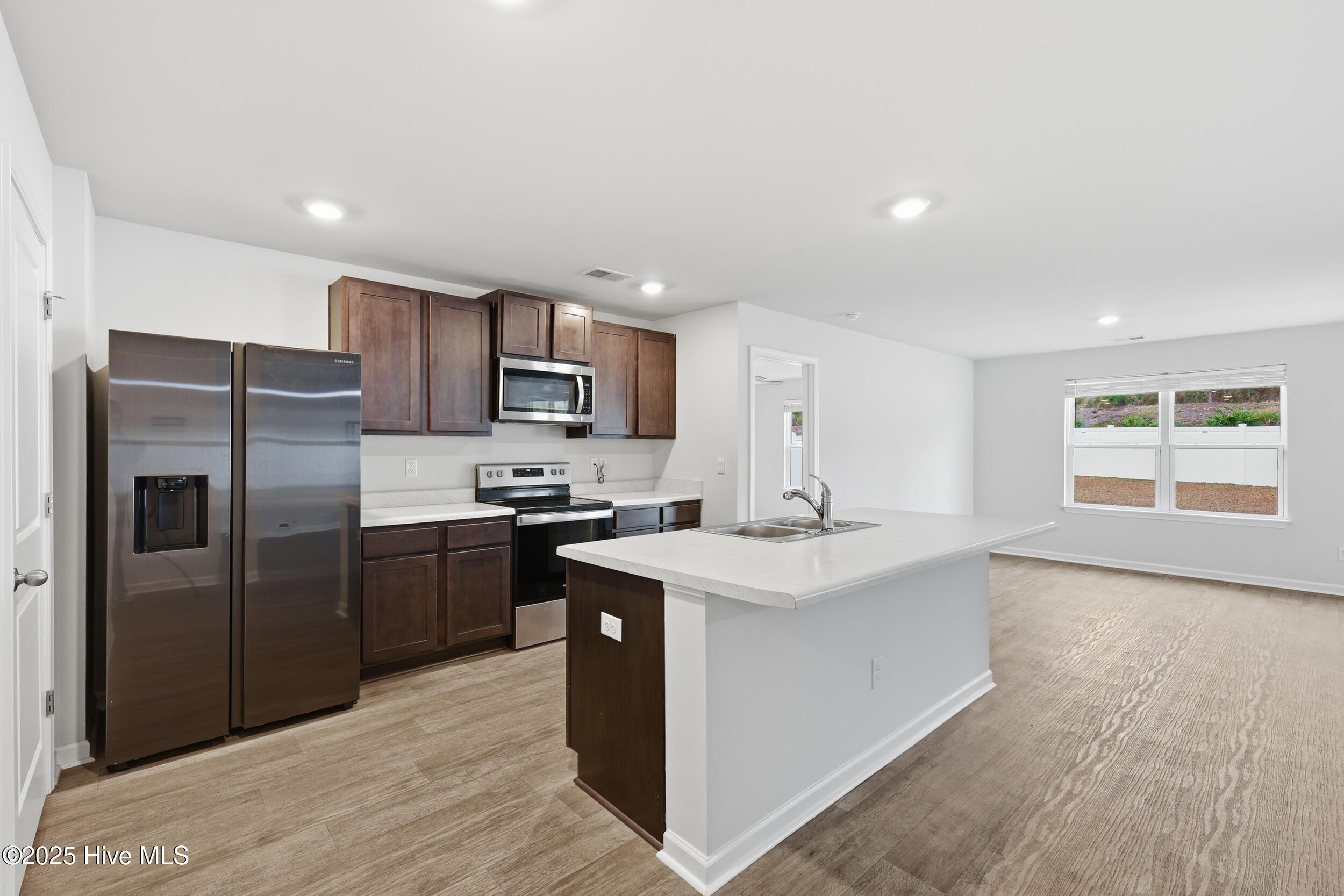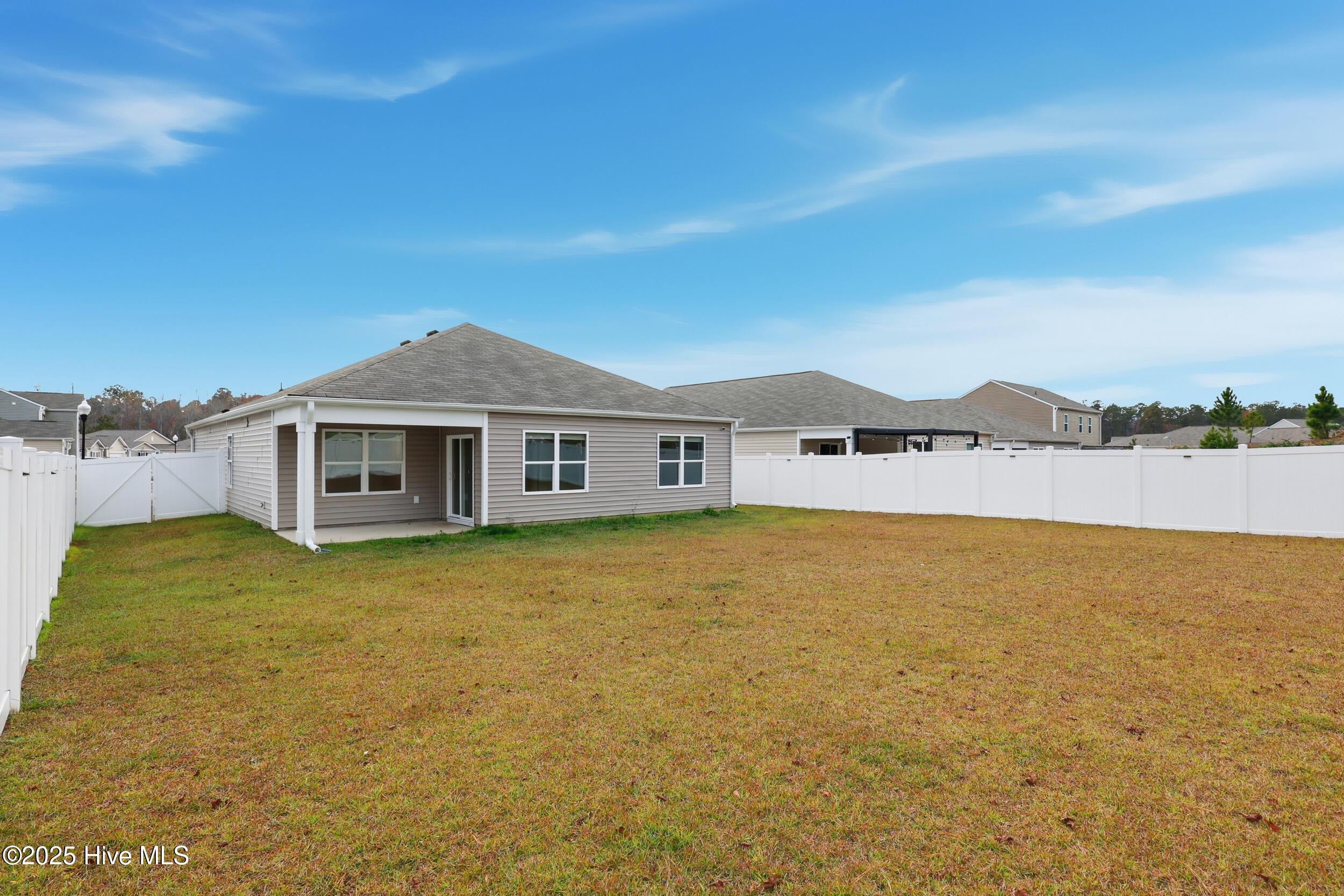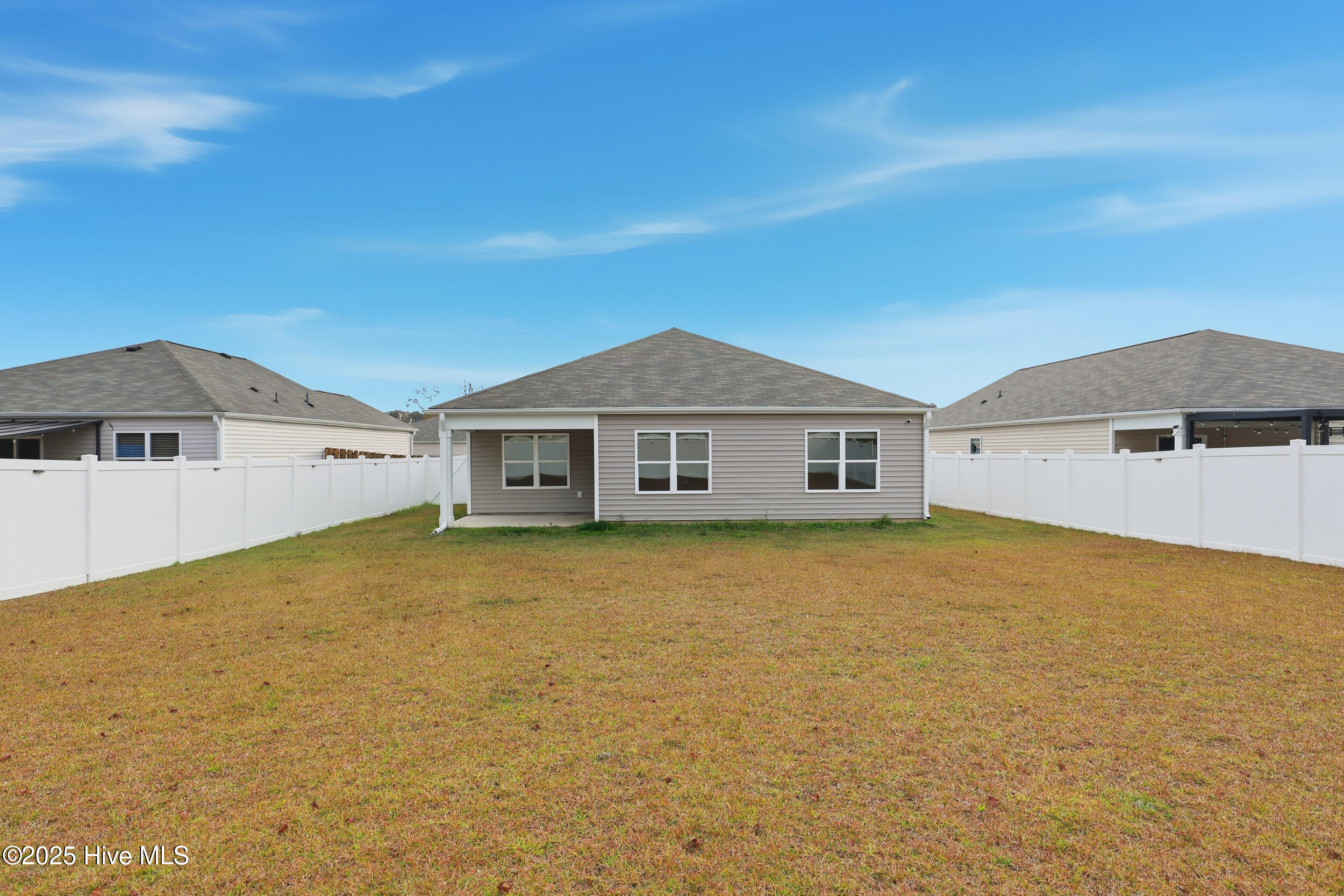 Welcome to 668 Buckeye Road, the popular ARIA floor plan by D.R. Horton, located in the heart of Leland! This beautifully maintained, one-owner home offers the perfect blend of comfort, privacy, and thoughtful design. Recently freshly painted, the home feels bright, clean, and truly move-in ready. With ceiling fans in every room, a fully fenced backyard, and a lot that backs up to trees and natural privacy, it offers quiet, low-maintenance living both inside and out. The ARIA layout features open-concept living, a spacious primary suite, and a split-bedroom design for added privacy. This home feels practically untouched, making it the perfect blank canvas for your personal style. A major bonus: the home comes equipped with a professionally installed Safe Haven security system, currently monitored through ADT. All the new owner needs to do is activate service. Security features include: front, back, and garage door sensors; window-seal security; a backyard security camera; and a video doorbell camera. Additional perks include a 2-car garage, a current transferable termite bond, and access to desirable neighborhood amenities such as the community pool.