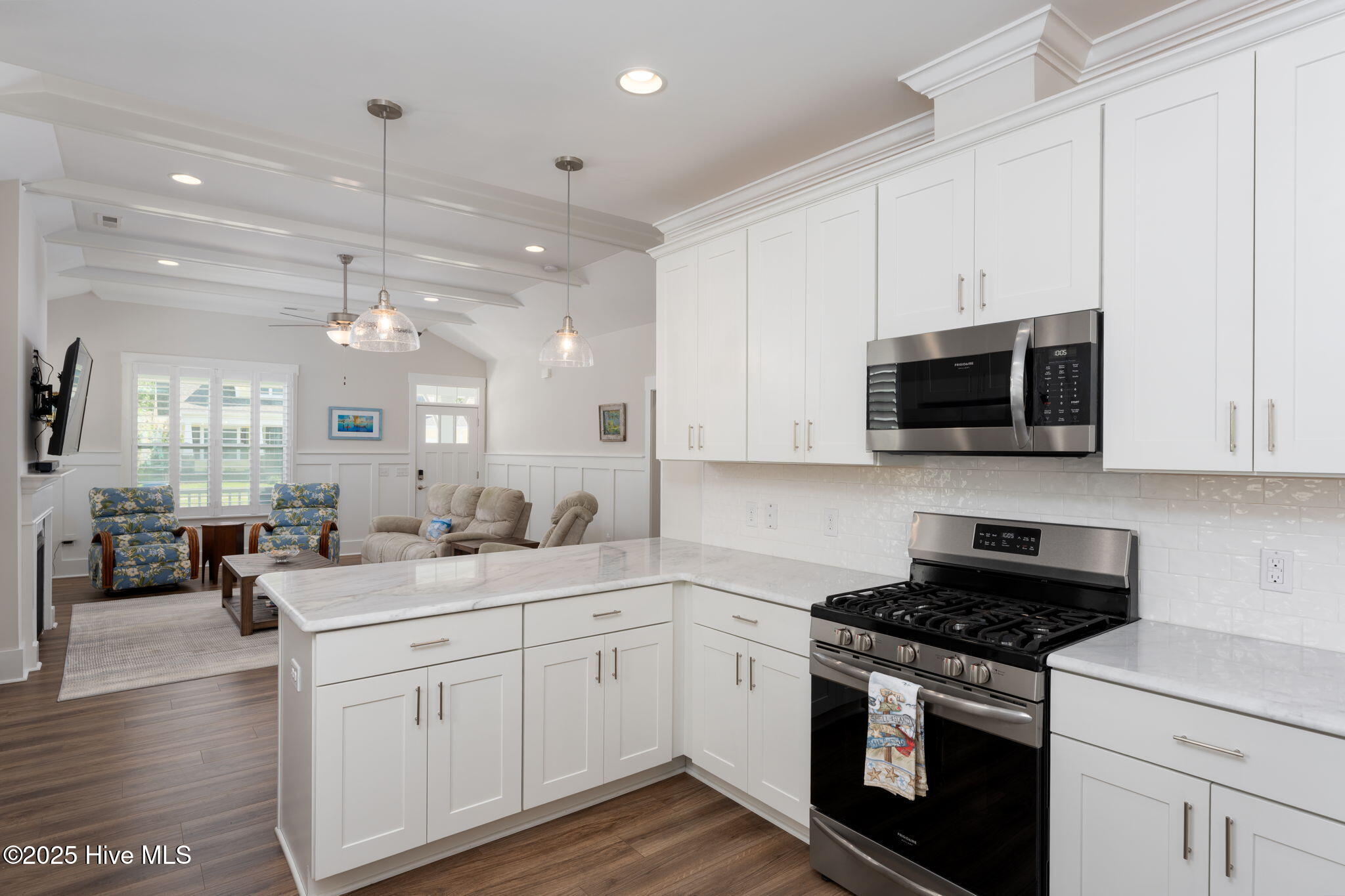 Flow seamlessly into the chef-inspired kitchen, designed with entertaining in mind. Dual breakfast bars on either side invite conversation, cocktails, or casual dining, while high-end finishes elevate everyday living. Just beyond, the open dining area spills onto a covered rear porch--an ideal setting for al fresco dinners, summer lounging, or quiet morning coffee.