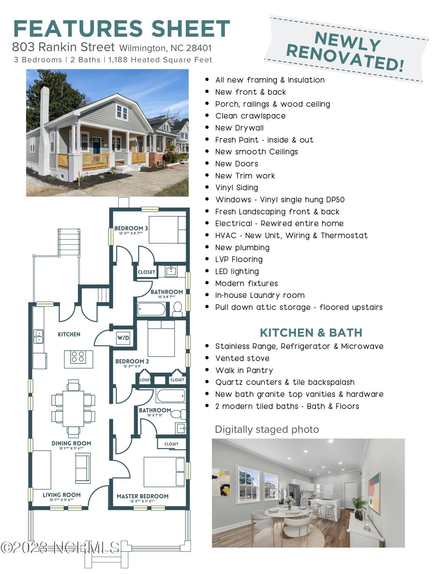 Welcome to this newly renovated downtown 1920's charmer! This home seamlessly blends historic charm with modern amenities. Everything is renovated ... new floorplan, insulation, mechanicals, all new front porch, railings & wood ceiling, interior drywall, paint, ceilings, doors, trim, vinyl siding & more, It's all NEW!