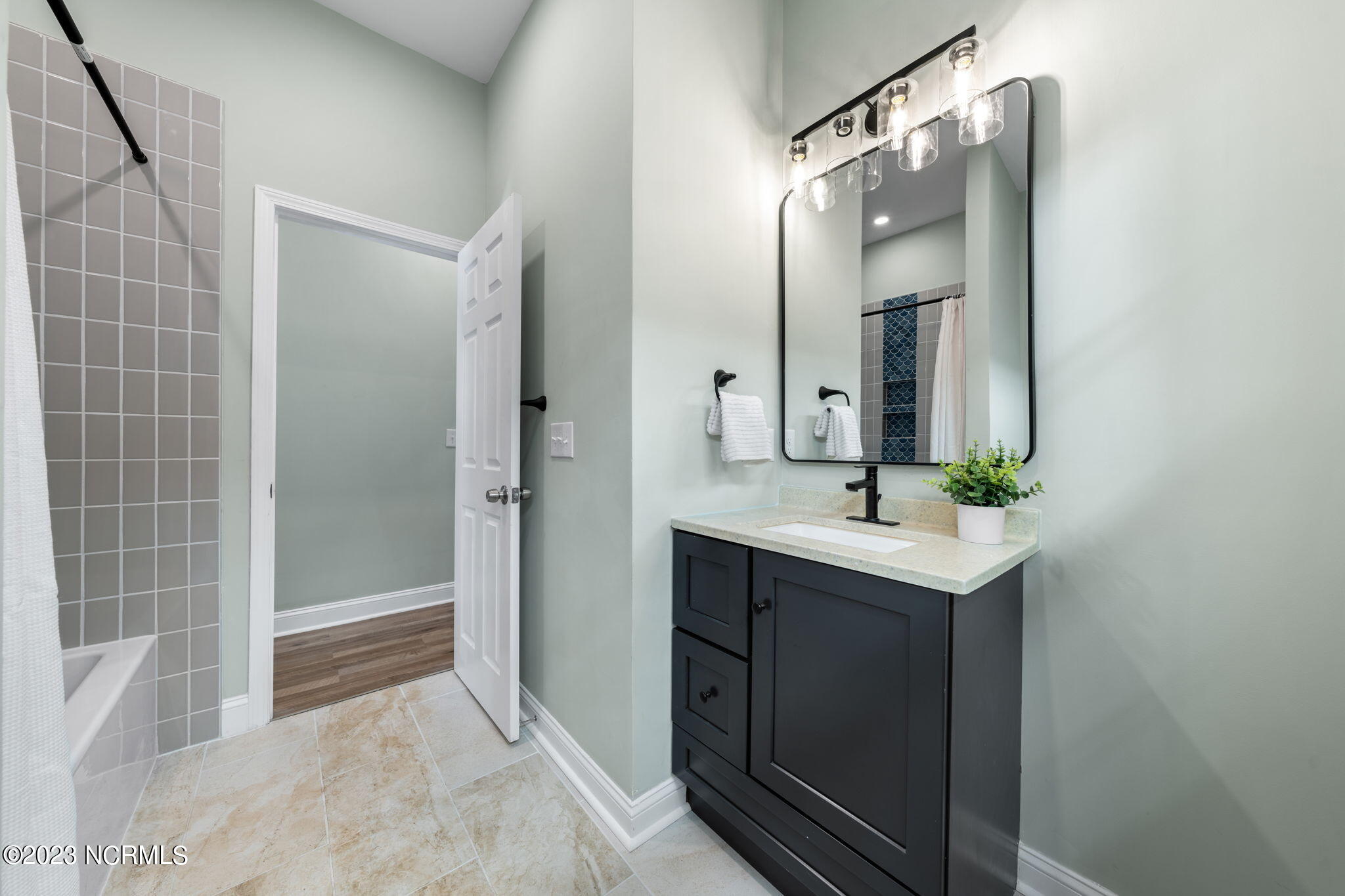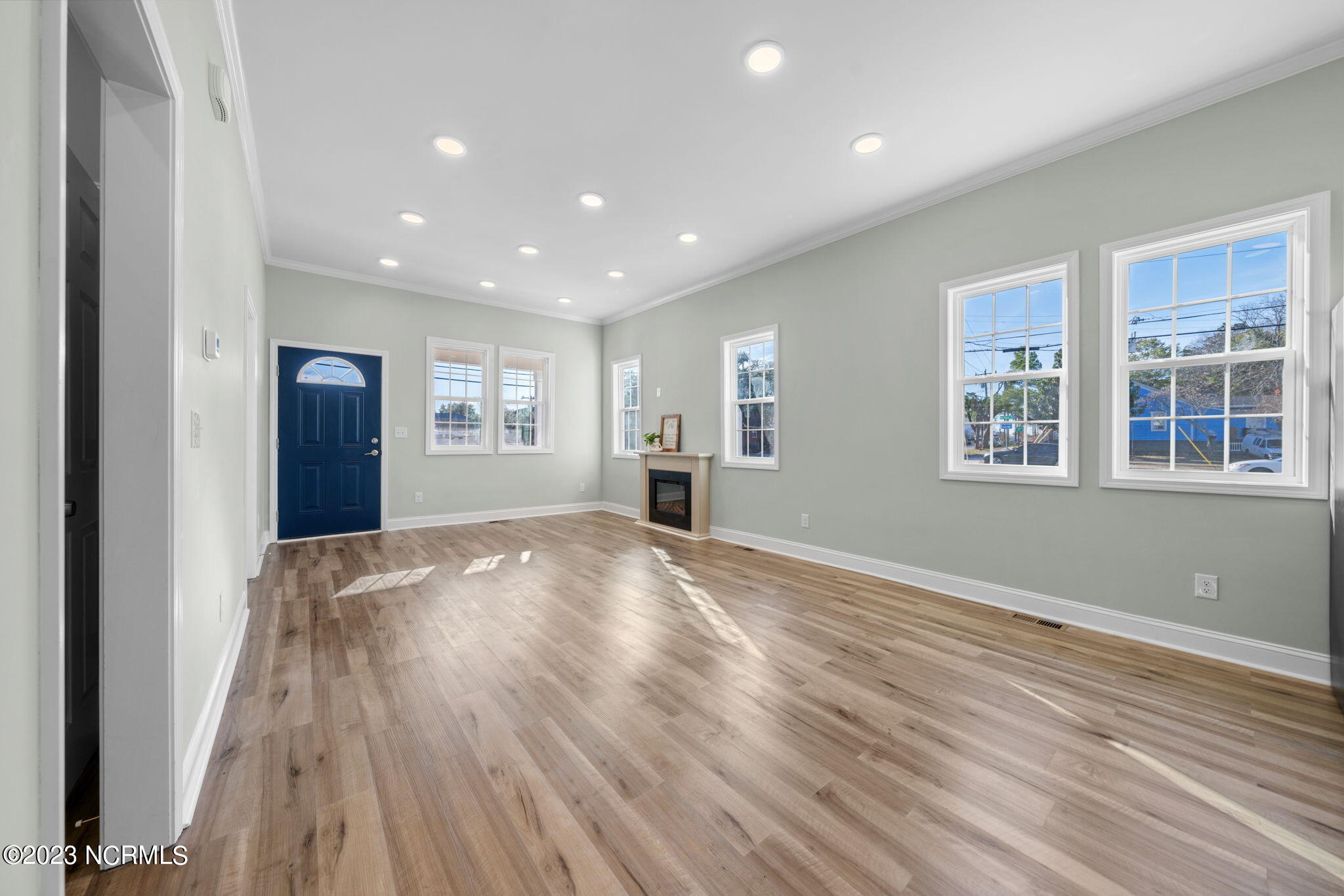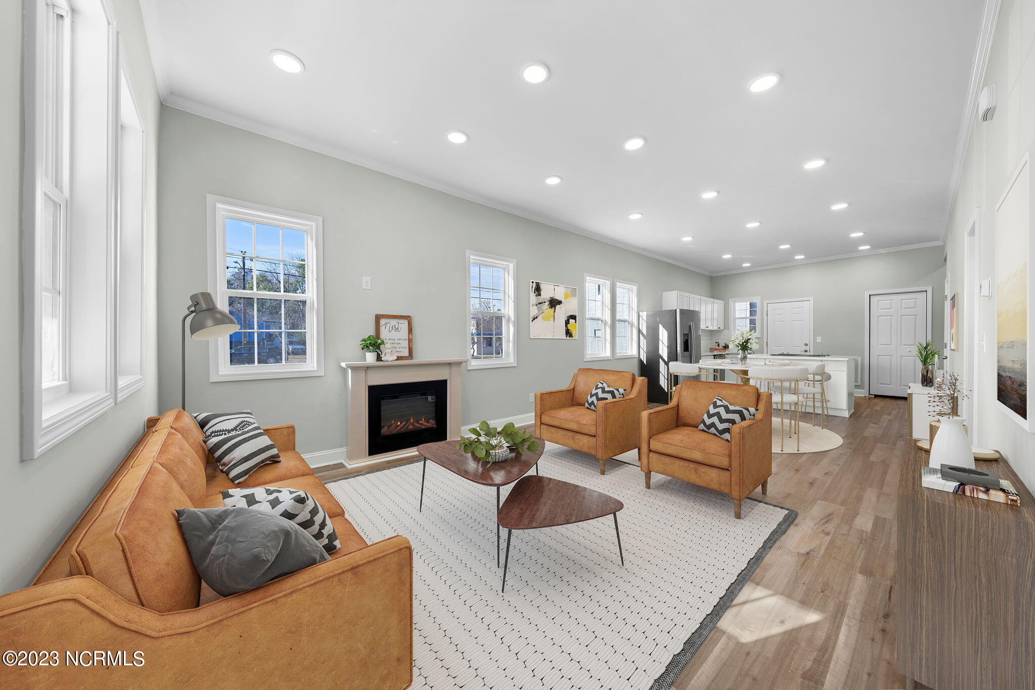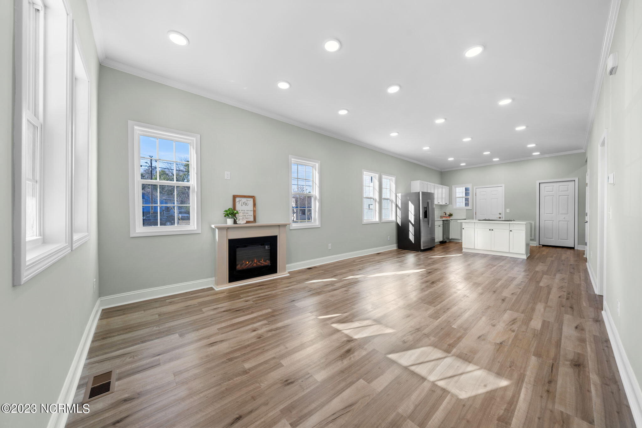 Inside, is a newly presented open floor plan. Now offering 3 bedrooms & 2 full bathrooms at 1178 HSF. Enjoy the peace of mind with upgraded electrical, a new HVAC unit & programmable thermostats & new water heater, new energy efficient vinyl DP50 windows, that make for an efficient home & lower energy bills. Cozy electric fireplace for added ambiance, low maintenance LVP flooring, and the bright spacious kitchen with all new stainless appliances, including microwave, quartz counters, and spacious pantry. And don't forget the cute back patio space, and the fresh landscaping front & back enhance the outdoor space. Practicalities include a laundry closet perfect for stackable washer/dryer & a pull-down stairs to attic storage with a full floored attic.