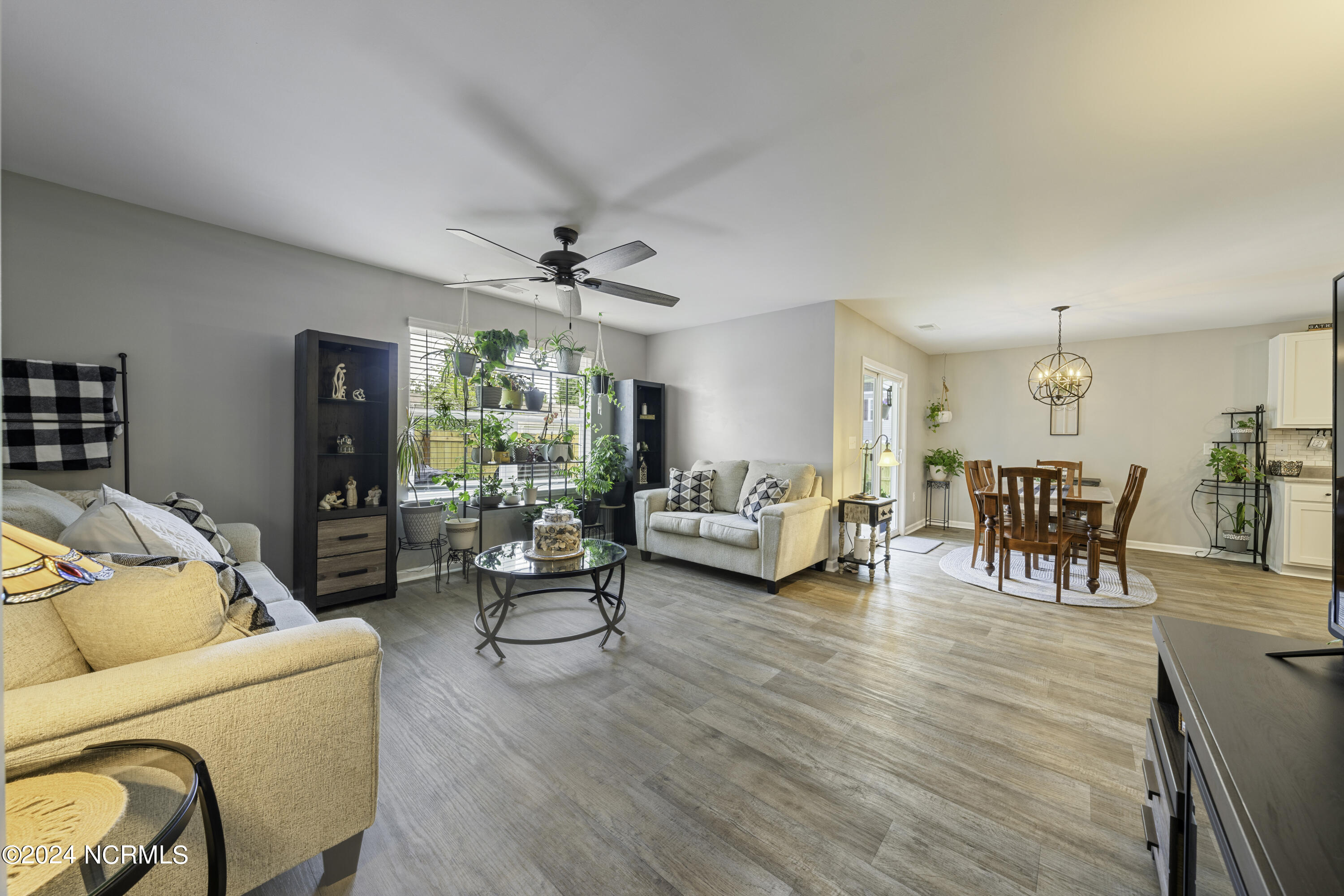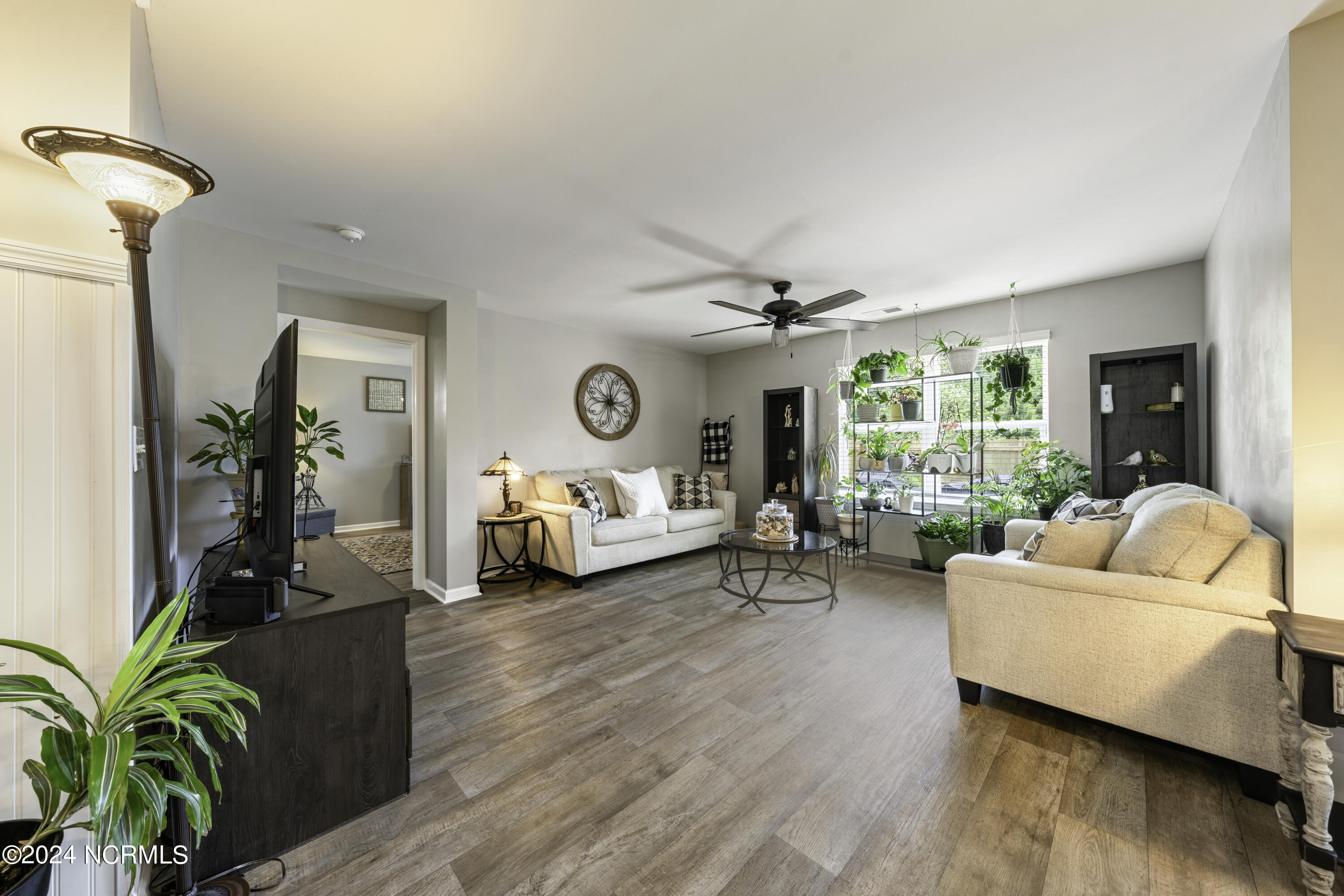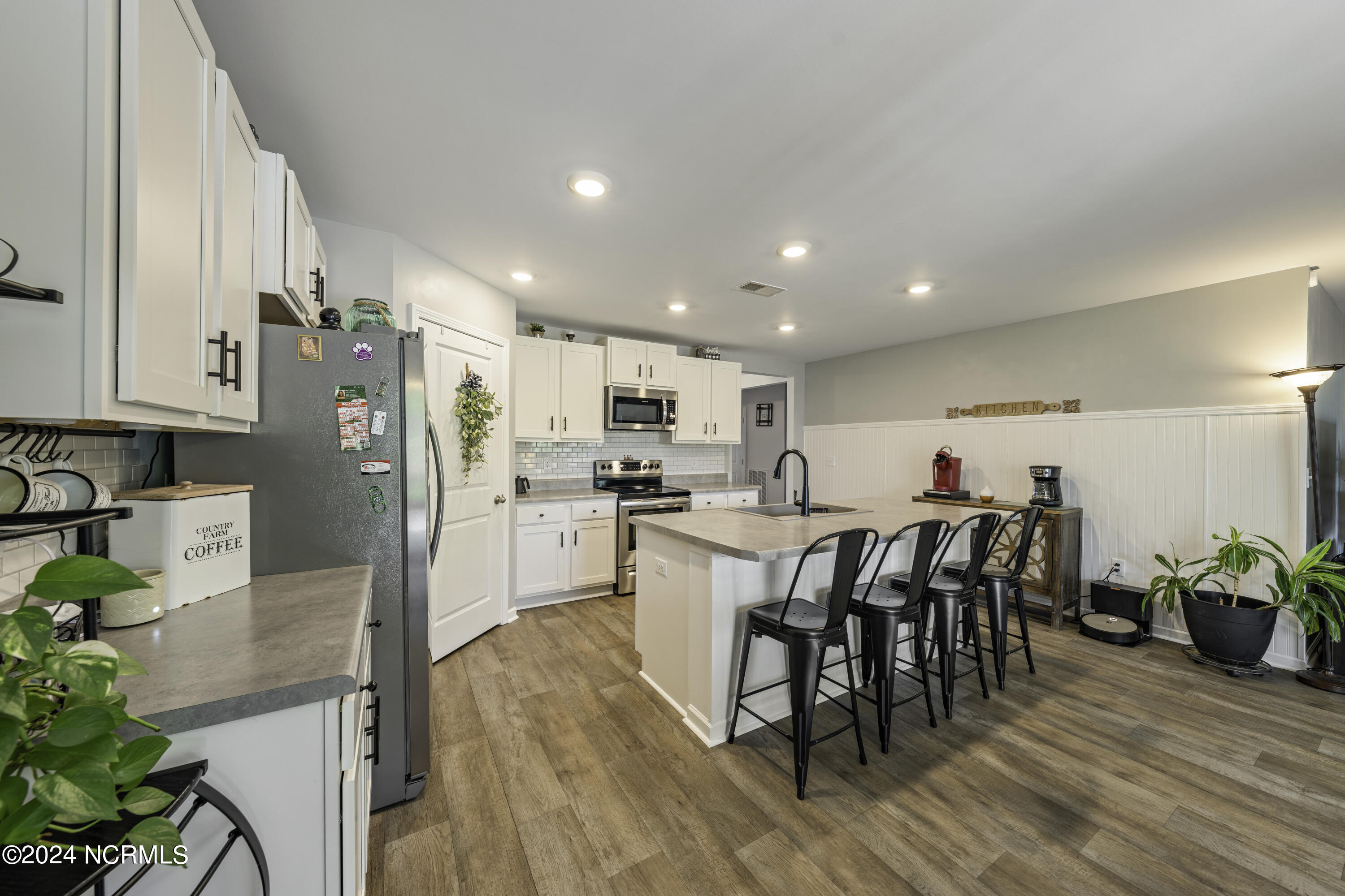 Here's your opportunity to own a recently upgraded home in Seabrooke! The popular CALI 'B' plan features 4 bedrooms and 1774 square feet of living space. Situated on a corner lot, this home boasts fresh paint and new LVP flooring throughout. The kitchen is enhanced with stainless steel appliances, chair rail and bead board accents, large pantry and island. New lights, mirrors, and additional cabinets in both the kitchen and laundry room. Recent improvements include new glass shower doors, an extended patio, fenced backyard, lush landscaping, a stick-built shed with cement pylons, brick pathways, and extra pop-up drains.