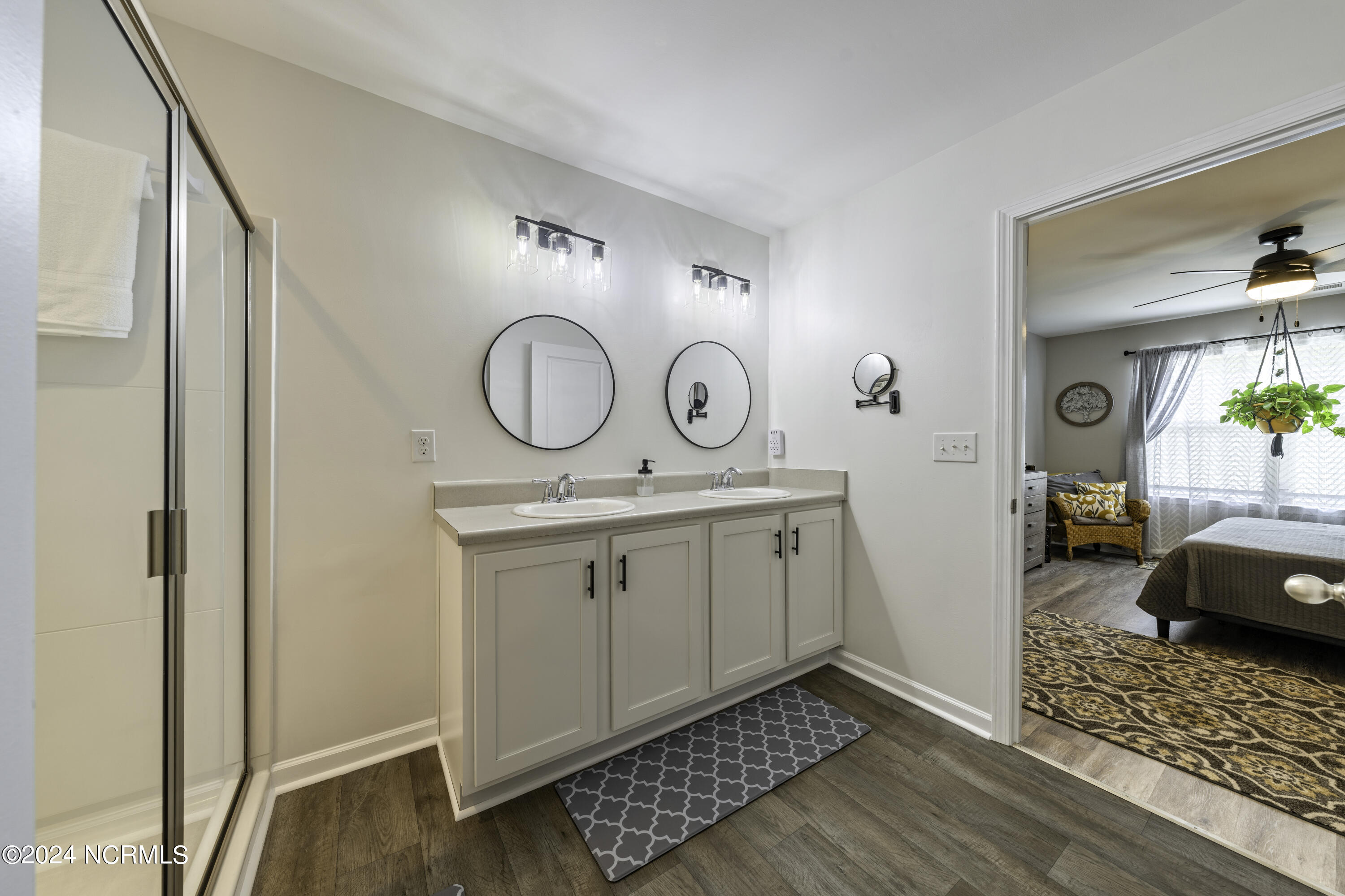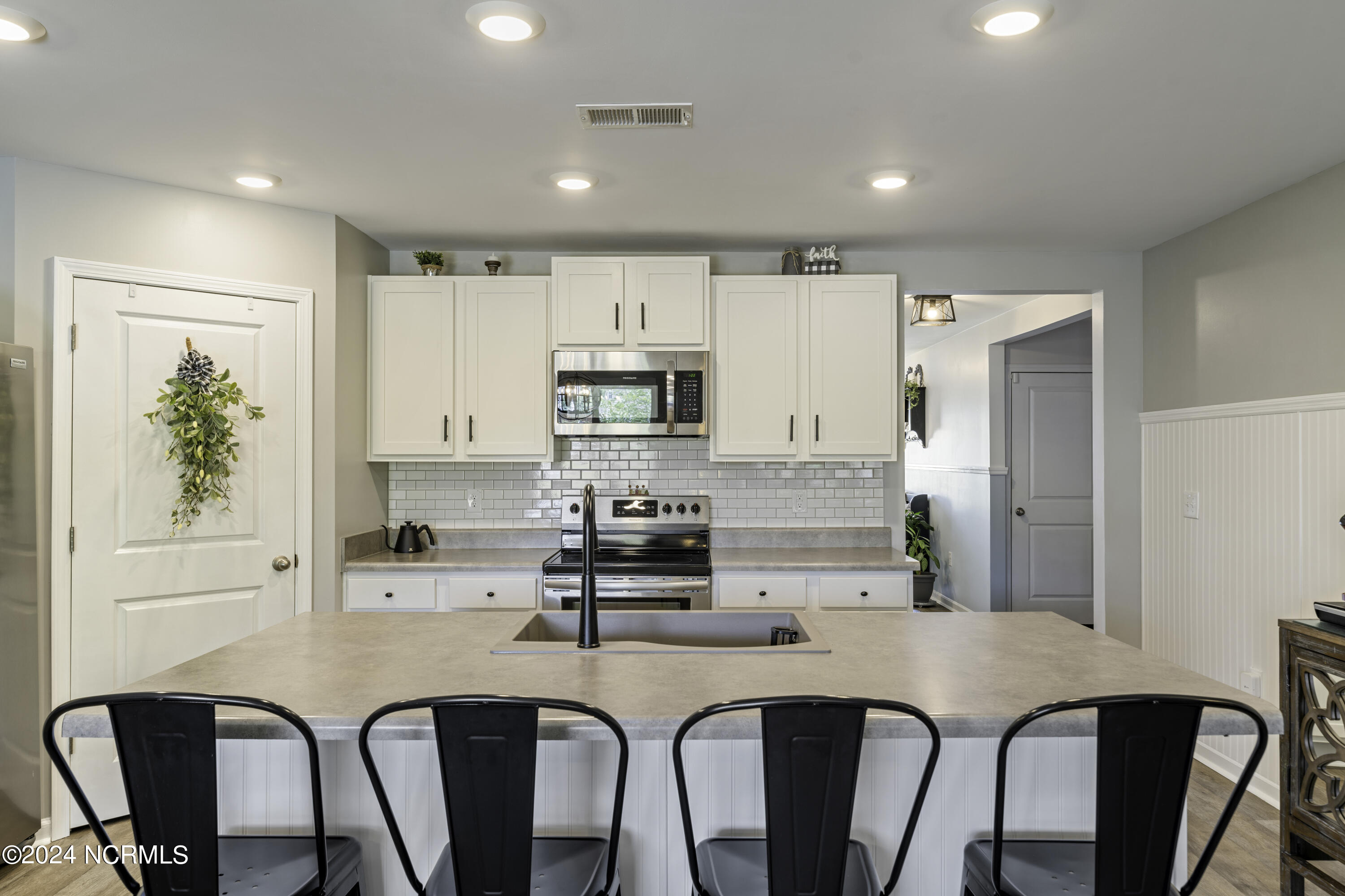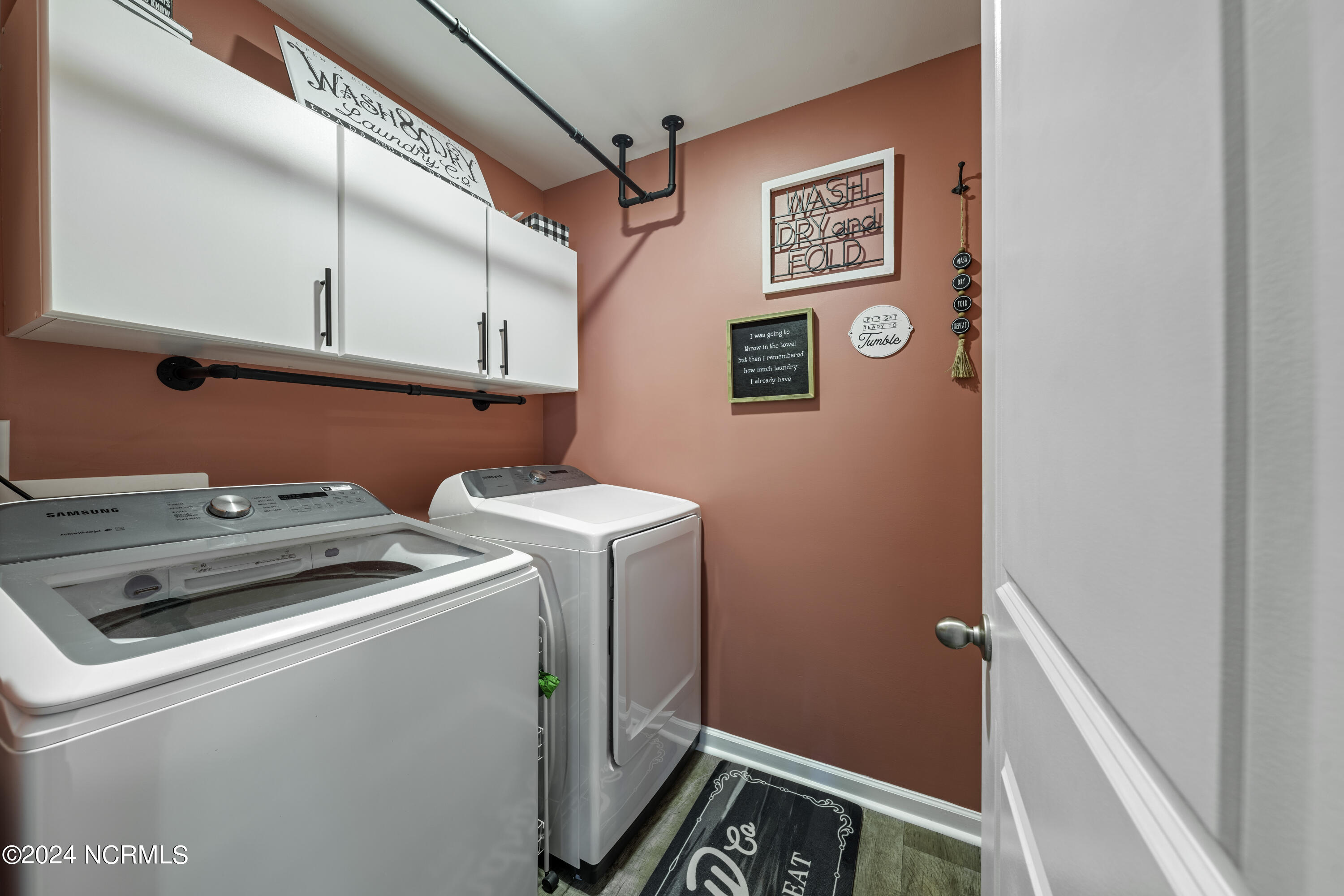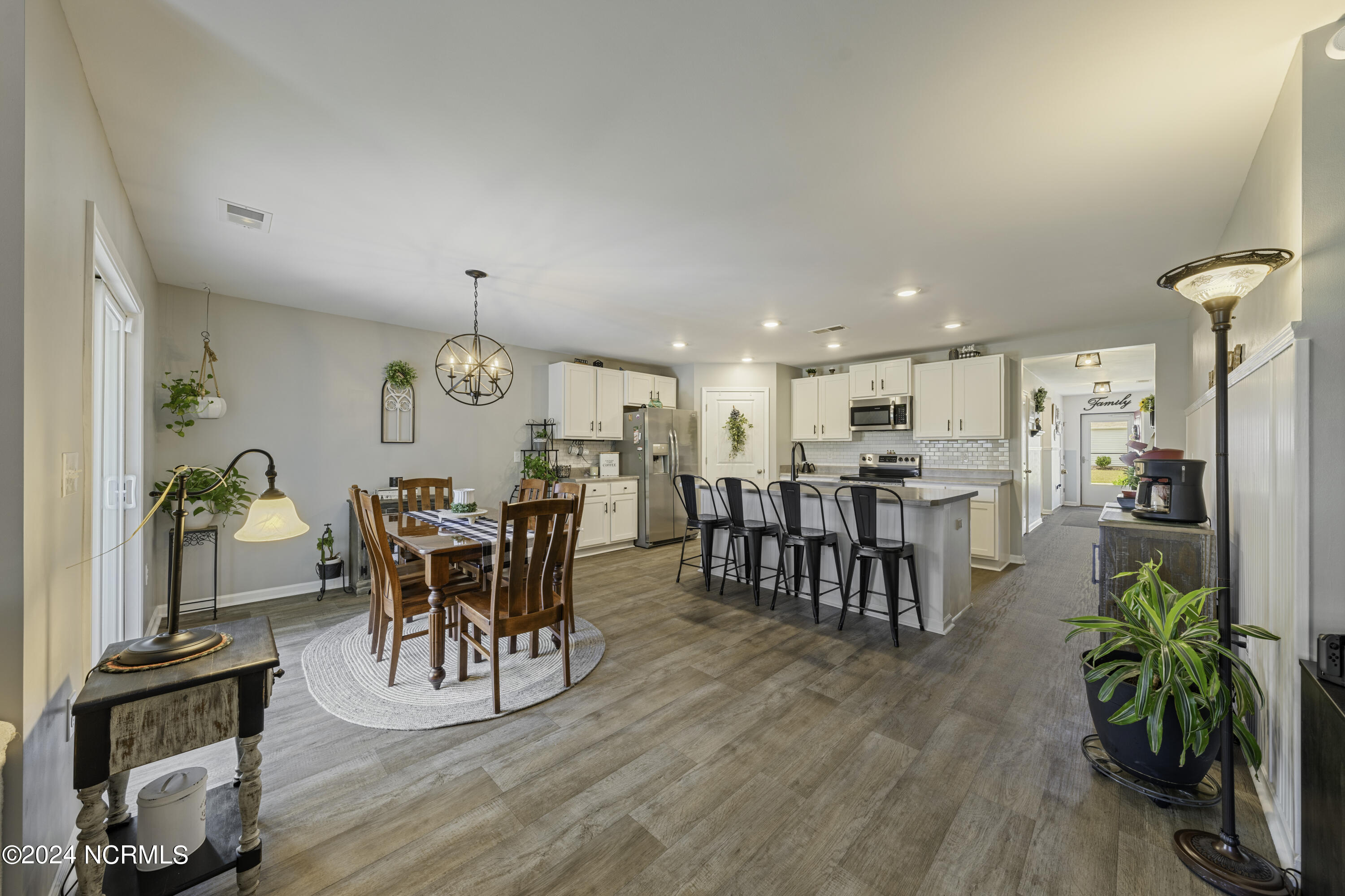 Here's your opportunity to own a recently upgraded home in Seabrooke! The popular CALI 'B' plan features 4 bedrooms and 1774 square feet of living space. Situated on a corner lot, this home boasts fresh paint and new LVP flooring throughout. The kitchen is enhanced with stainless steel appliances, chair rail and bead board accents, large pantry and island. New lights, mirrors, and additional cabinets in both the kitchen and laundry room. Recent improvements include new glass shower doors, an extended patio, fenced backyard, lush landscaping, a stick-built shed with cement pylons, brick pathways, and extra pop-up drains.