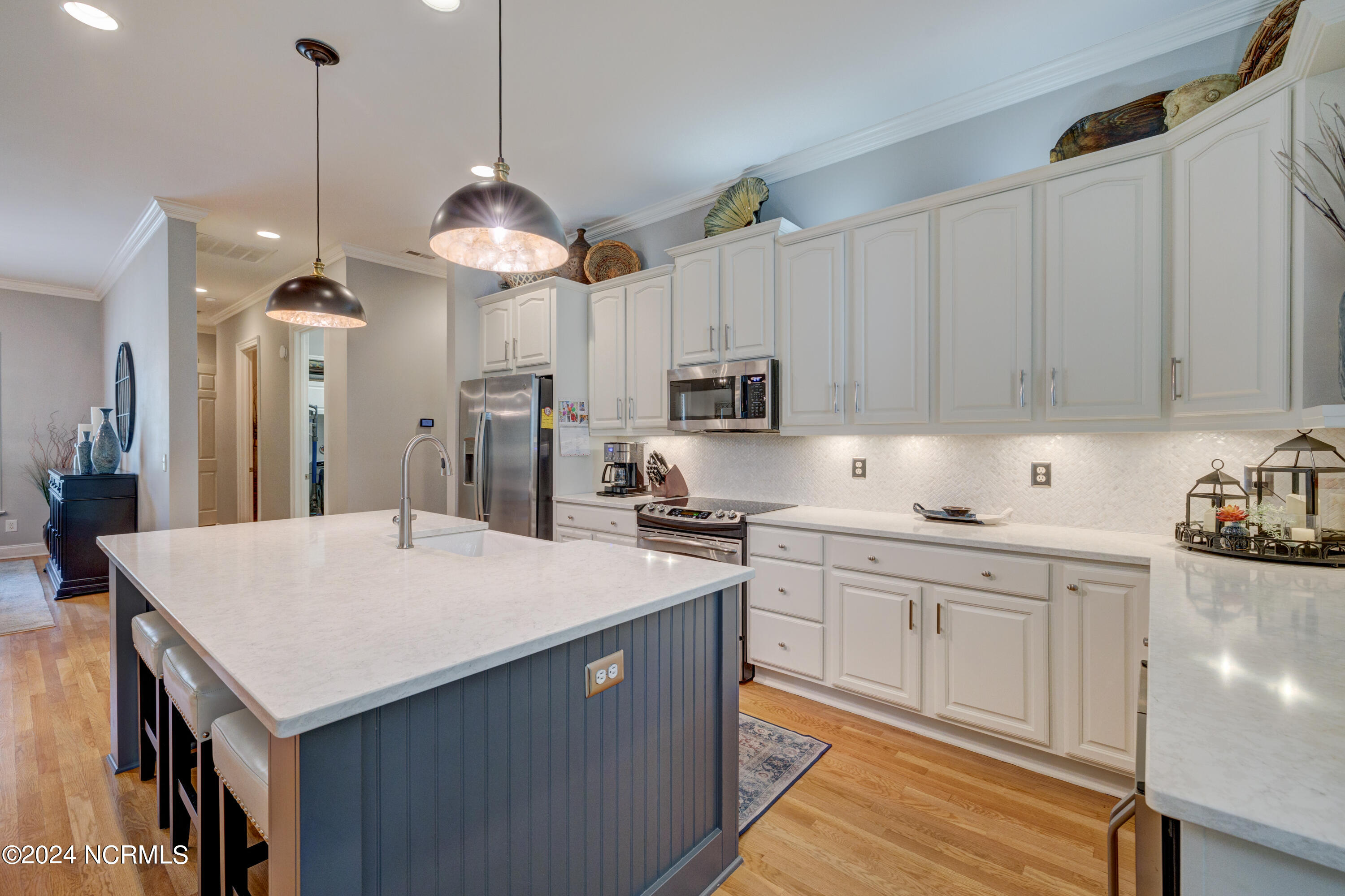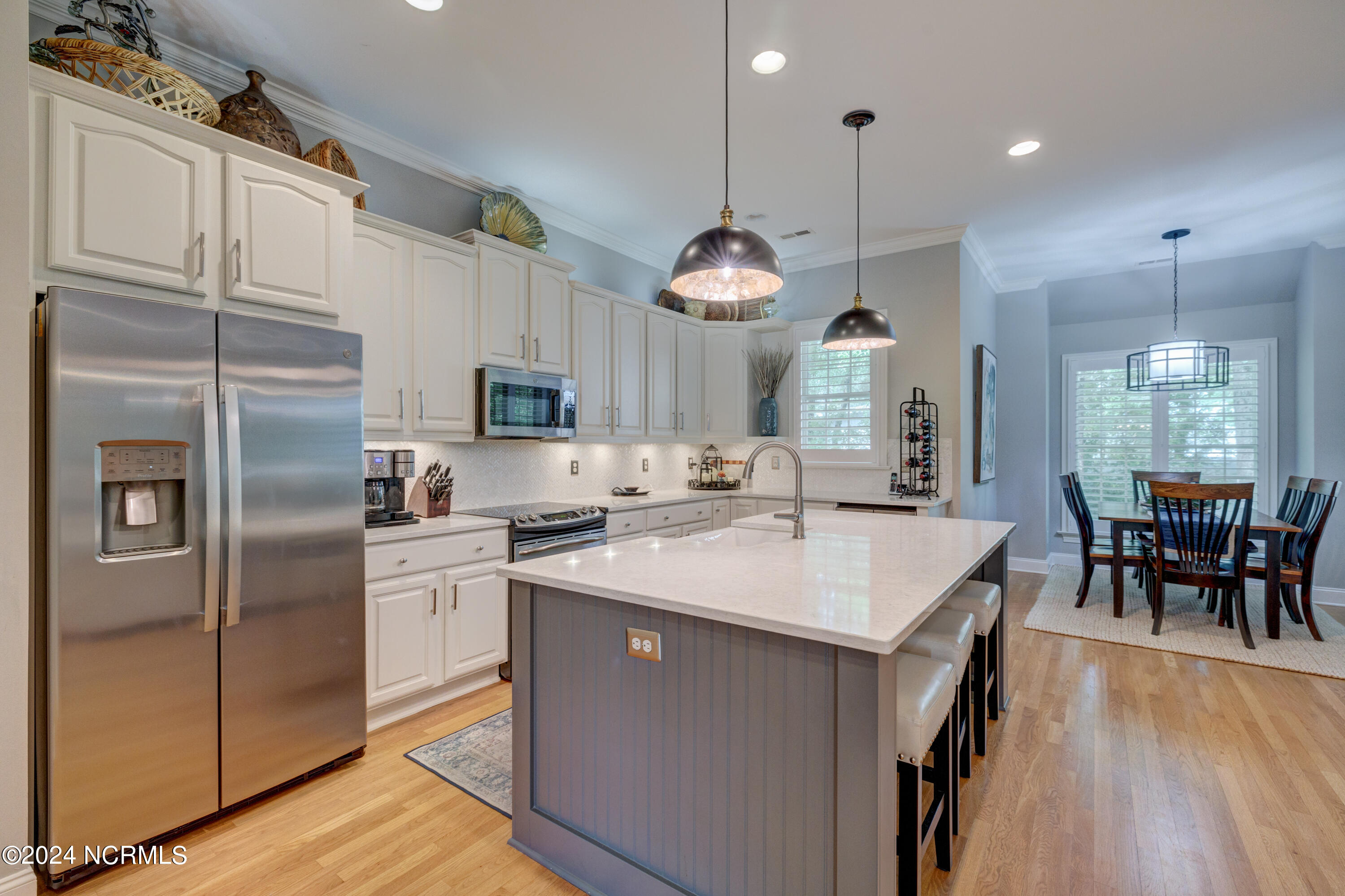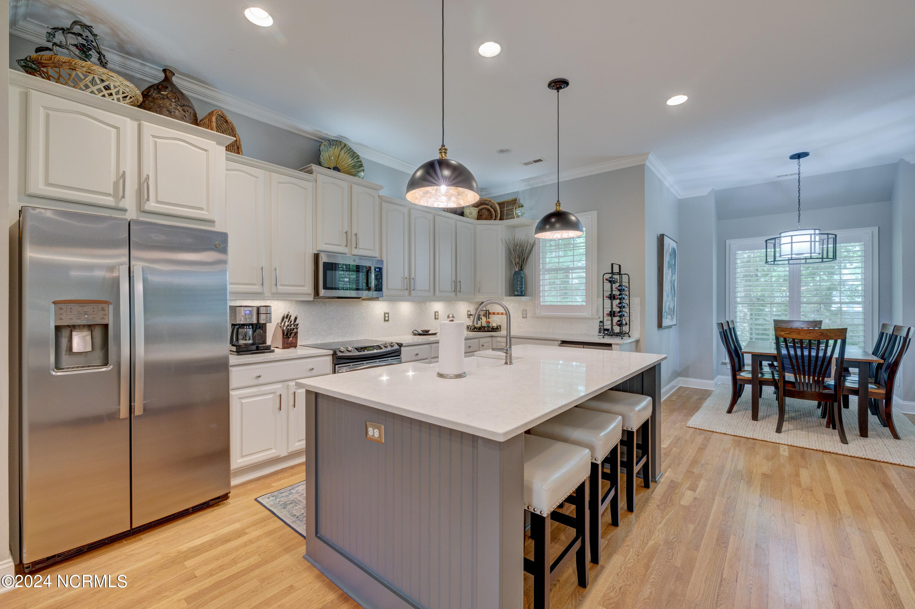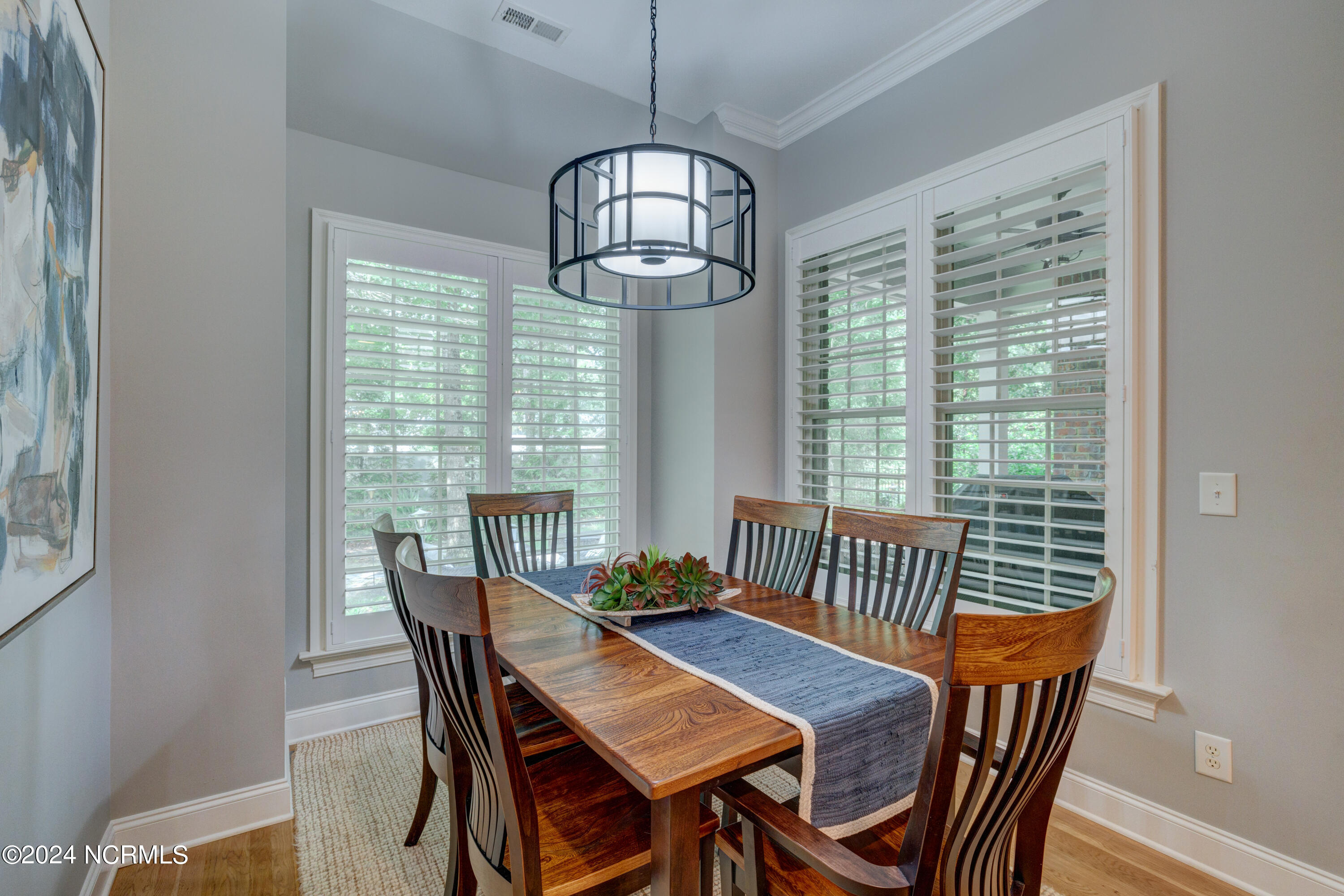 and 2.5 bathrooms within its generous 2,691square feet. The fourth bedroom is flex space that could be used as a bedroom, home office, play room, etc. Step into a bright, open floor plan featuring elegant wood flooring and stylish plantation shutters throughout. The updated kitchen is a chef's dream with new countertops, cabinets, a chic backsplash, a large island, and a built-in wine fridge, making it perfect for both cooking and entertaining. The expansive primary suite is a tranquil retreat, boasting two closets, a walk-in shower, dual vanities, and a relaxing jetted tub. Situated in Forest Creek at Porters Neck Plantation, this prestigious gated community is less than 10 miles from Wrightsville Beach and just minutes from shopping and dining. Interested in maximizing your coastal lifestyle? Inquire about a club membership with the Porters Neck Plantation Country Club to enjoy golf, tennis, pickleball and much more! Experience the best of Wilmington with this exceptional property!