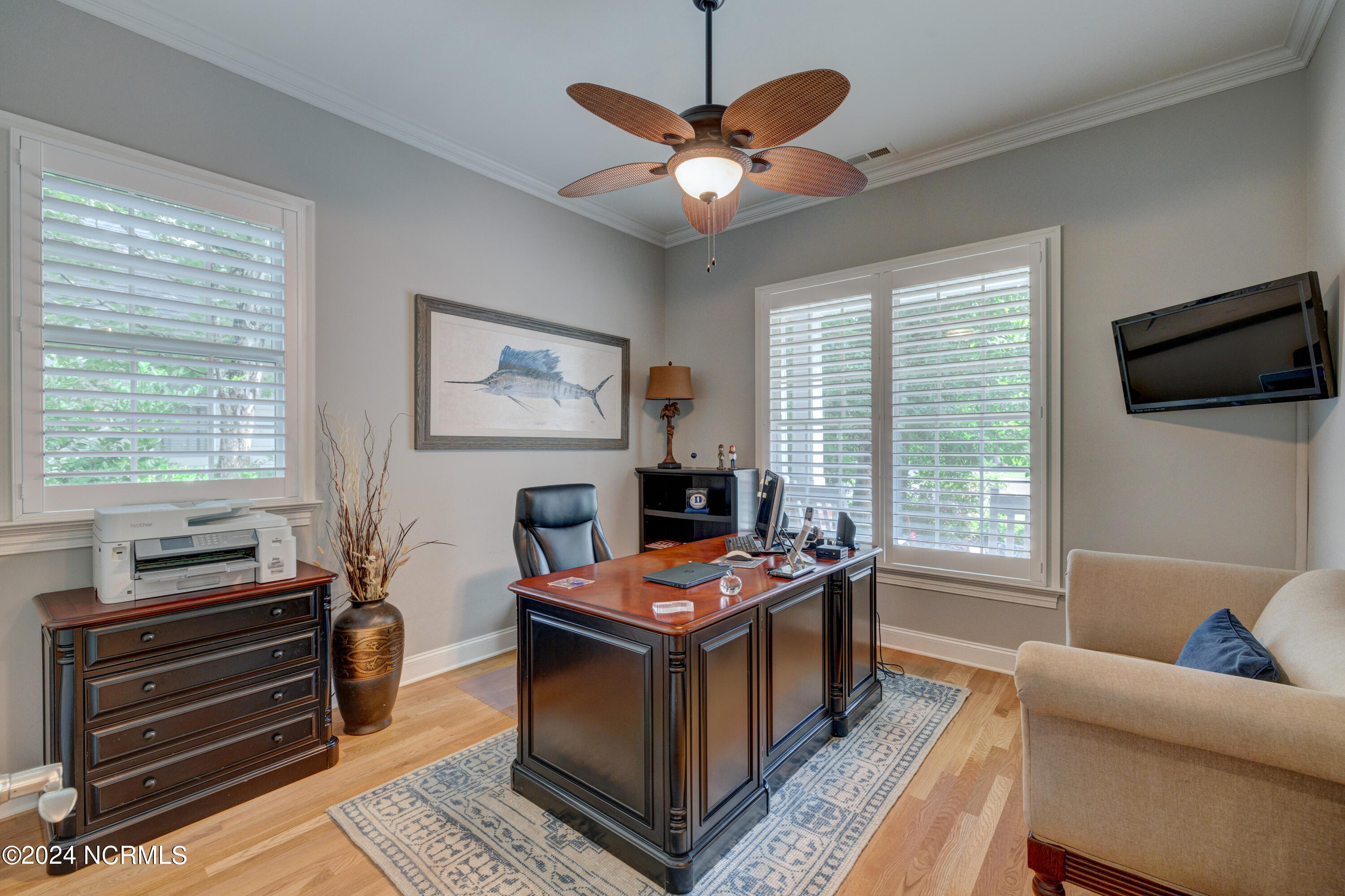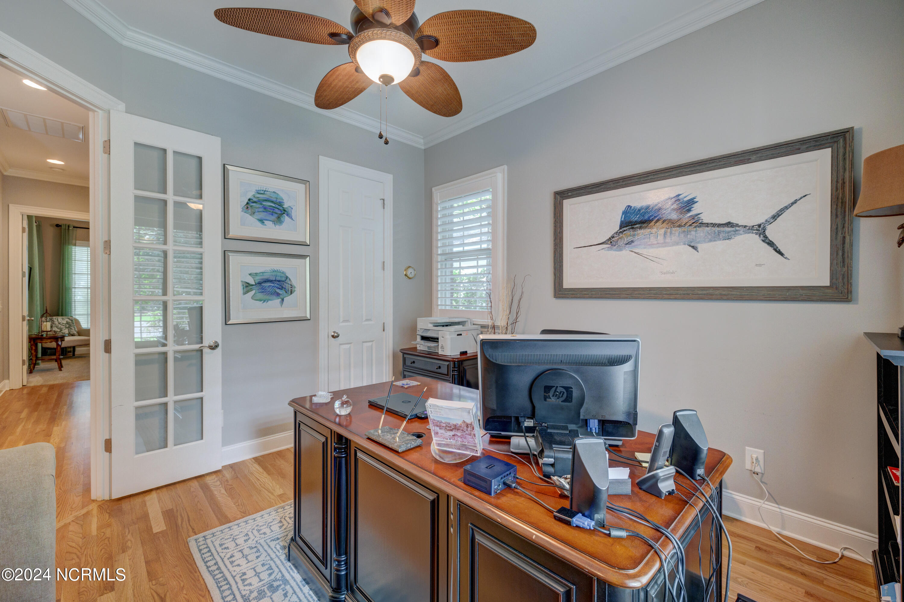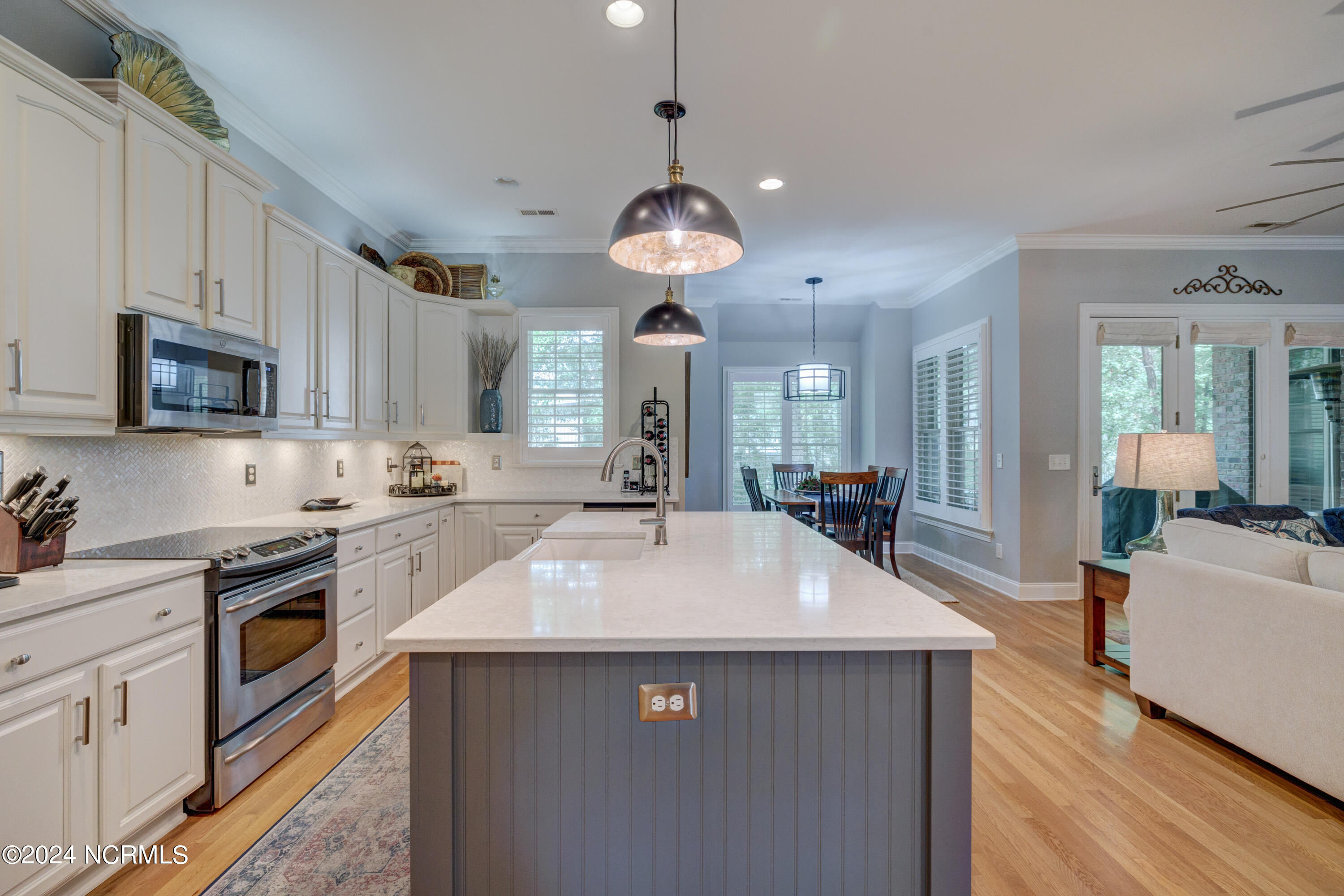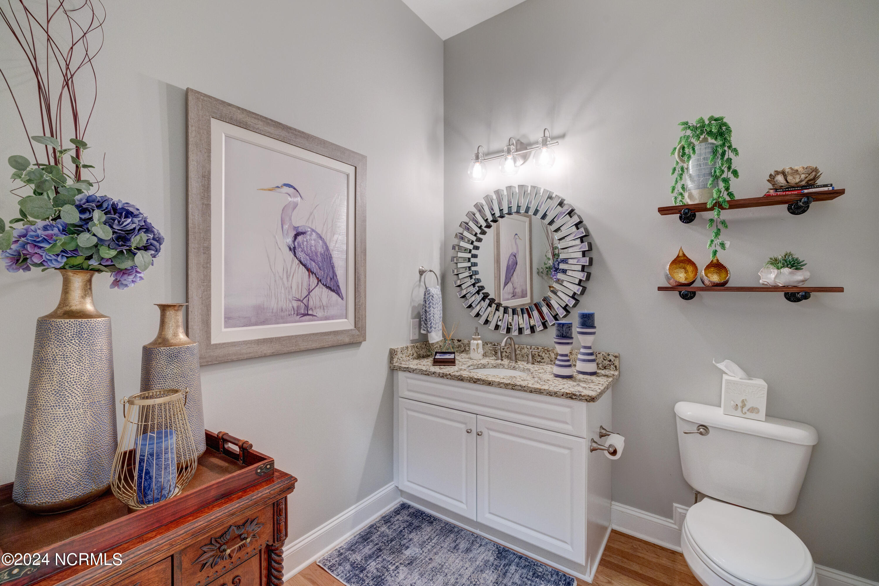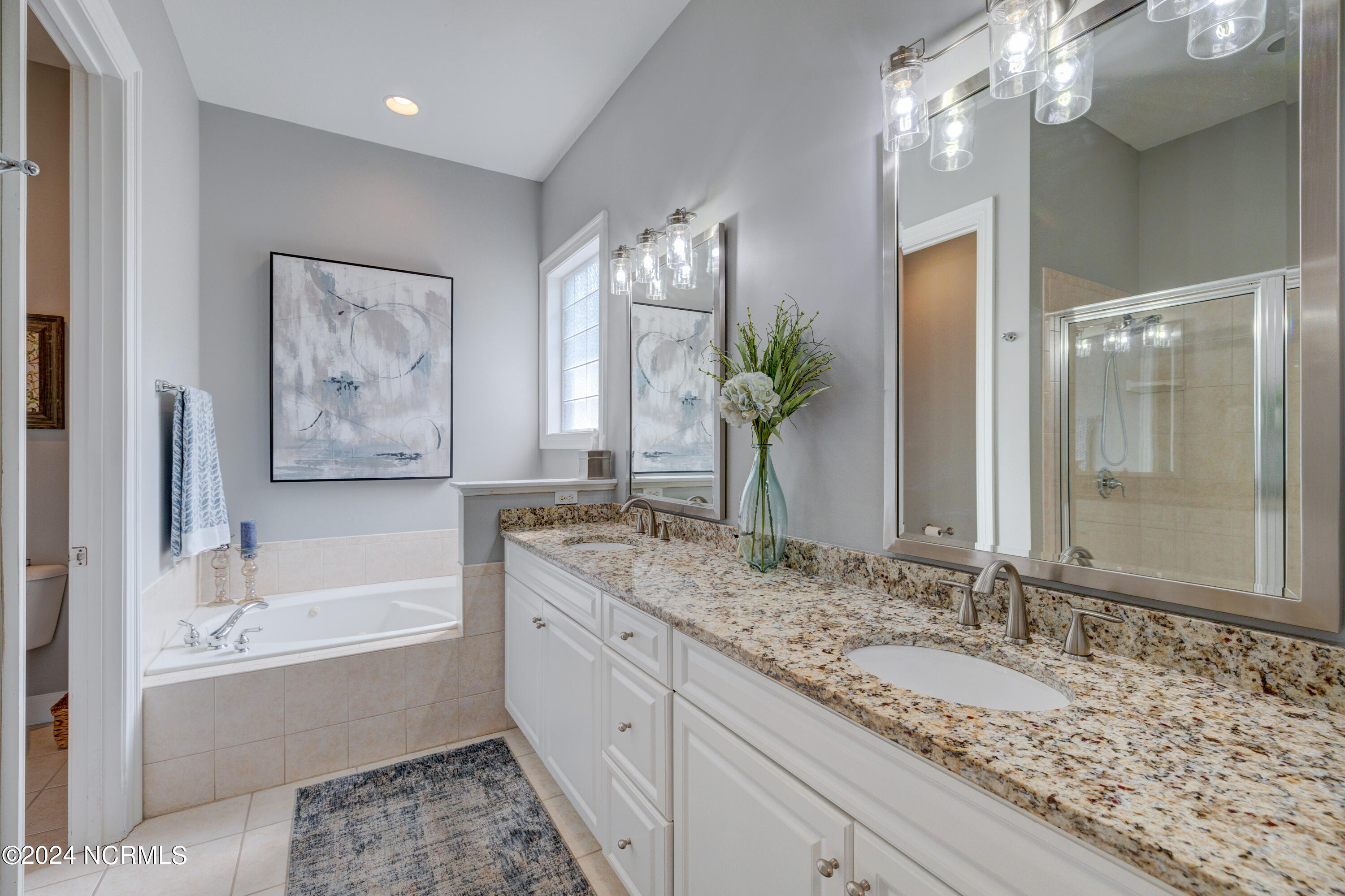 and 2.5 bathrooms within its generous 2,691square feet. The fourth bedroom is flex space that could be used as a bedroom, home office, play room, etc. Step into a bright, open floor plan featuring elegant wood flooring and stylish plantation shutters throughout. The updated kitchen is a chef's dream with new countertops, cabinets, a chic backsplash, a large island, and a built-in wine fridge, making it perfect for both cooking and entertaining. The expansive primary suite is a tranquil retreat, boasting two closets, a walk-in shower, dual vanities, and a relaxing jetted tub. Situated in Forest Creek at Porters Neck Plantation, this prestigious gated community is less than 10 miles from Wrightsville Beach and just minutes from shopping and dining. Interested in maximizing your coastal lifestyle? Inquire about a club membership with the Porters Neck Plantation Country Club to enjoy golf, tennis, pickleball and much more! Experience the best of Wilmington with this exceptional property!