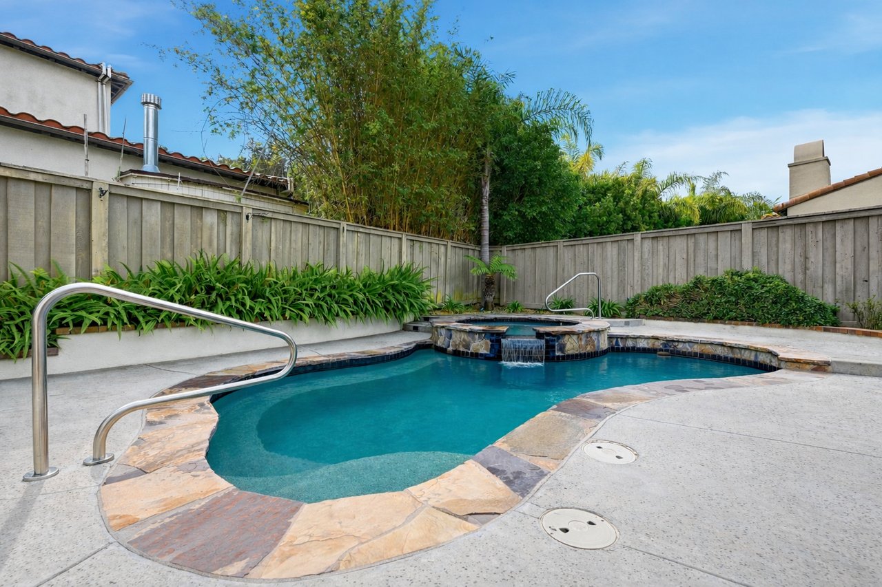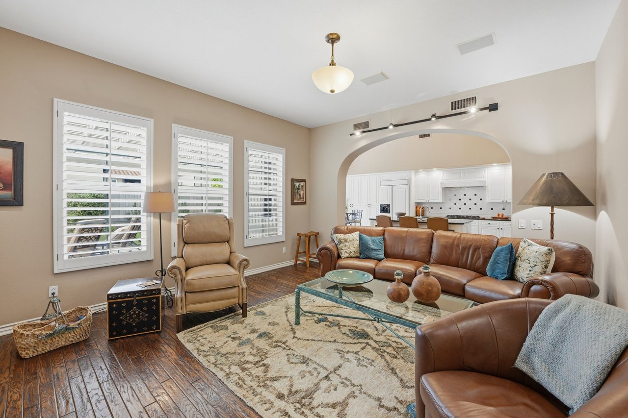 Rancho Carrillo corner lot/cul-de-sac gem with refined Southwest elegance. This home lives like a single level—primary suite and 2 bedrooms downstairs—PLUS a spacious loft with full bath upstairs for flex space or 4th bedroom. Ample storage with walk-in attic space. Soaring ceilings, custom built-ins, and architectural arches frame rich distressed hardwood floors and plantation shutters throughout. The gourmet kitchen features granite counters, a large island, and high ceilings that open to the family room. Step outside to your private resort: drought-friendly stamped concrete hardscape, lagoon-style pool with hot tub, and an outdoor kitchen with BBQ island, sink, and beverage fridge—perfect for entertaining under the stars. The aesthetic? Think Ralph Lauren Ranch meets Rancho Santa Fe—warm terracotta tones, leather, and timeless Southwestern sophistication. Steps to the historic Leo Carrillo Ranch. Home has Solar. Roof was re-papered approx 5 years ago. Enjoy community pool, clubhouse, trails, and top-rated schools. Low HOA at just $119/month. Rancho Carrillo offers the perfect blend of convenience and natural beauty—miles of walking trails, the Rancho Carrillo Swim Center with heated pool and spa, and Bressi Ranch Square nearby with Tommy V's, Casero, Panini Grill, Mendocino Farms, Board & Brew, plus Trader Joe's, Sprouts, Target, and Starbucks just around the corner.